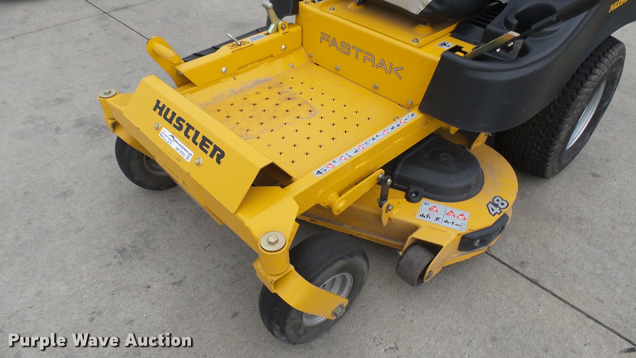 Purple Wave is selling a used Lawn Mower in Kansas. This item is a 2014 Hustler FasTrak 933424 ZTR lawn mower with the following: 173 hours on meter, 48" cut, Kawasaki 23 HP gas engine, Commercial Duty Hydro-Gear drive transmission, 13x5x6 front tires, 22x9.5x10 rear tires, Dealer/customer unit returned to manufacturer for quality issue, Serial 14124888