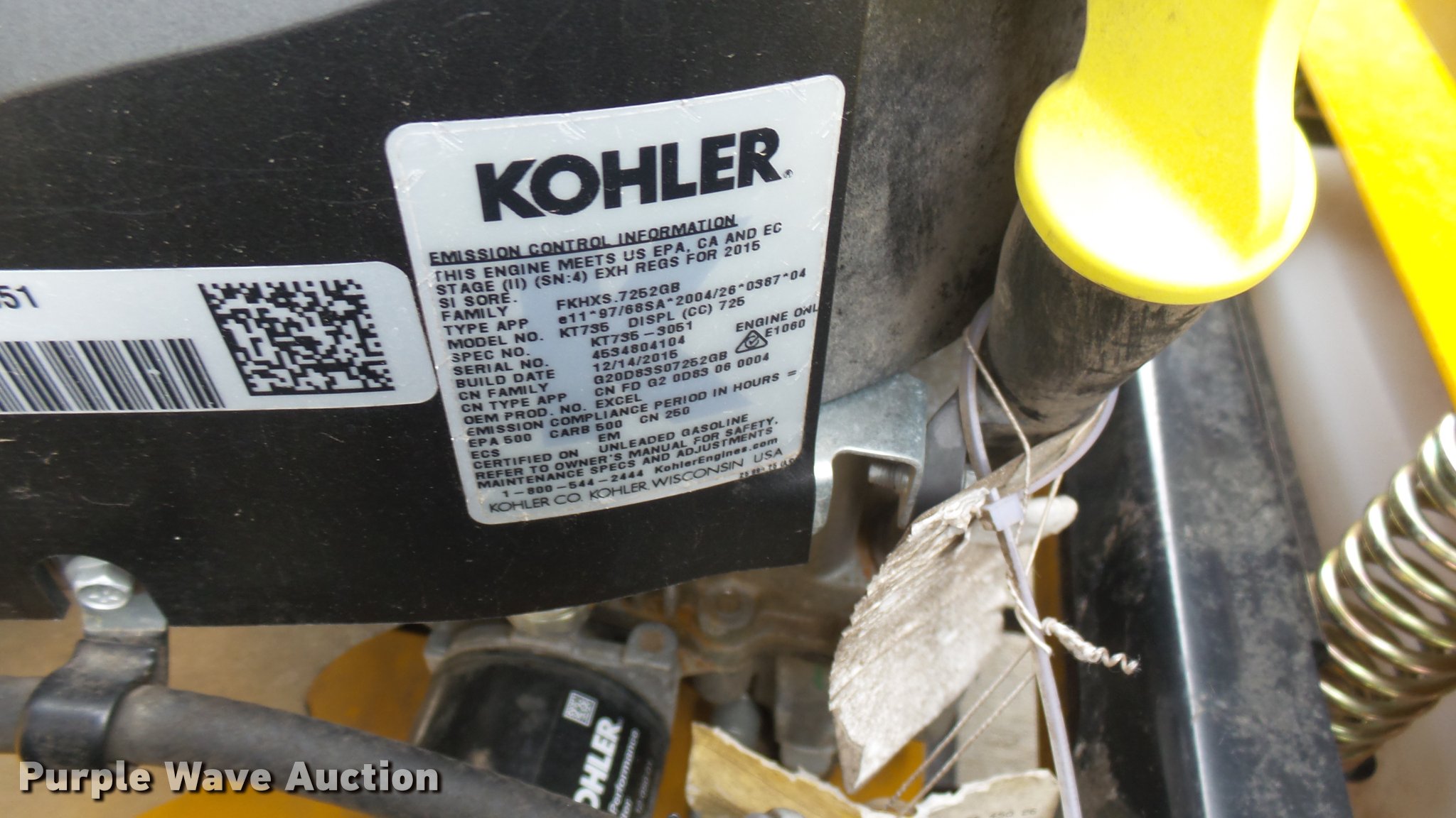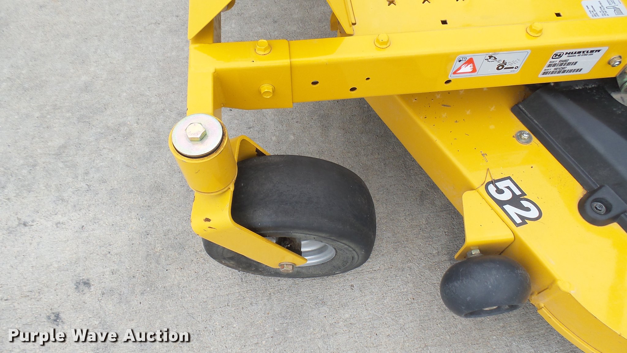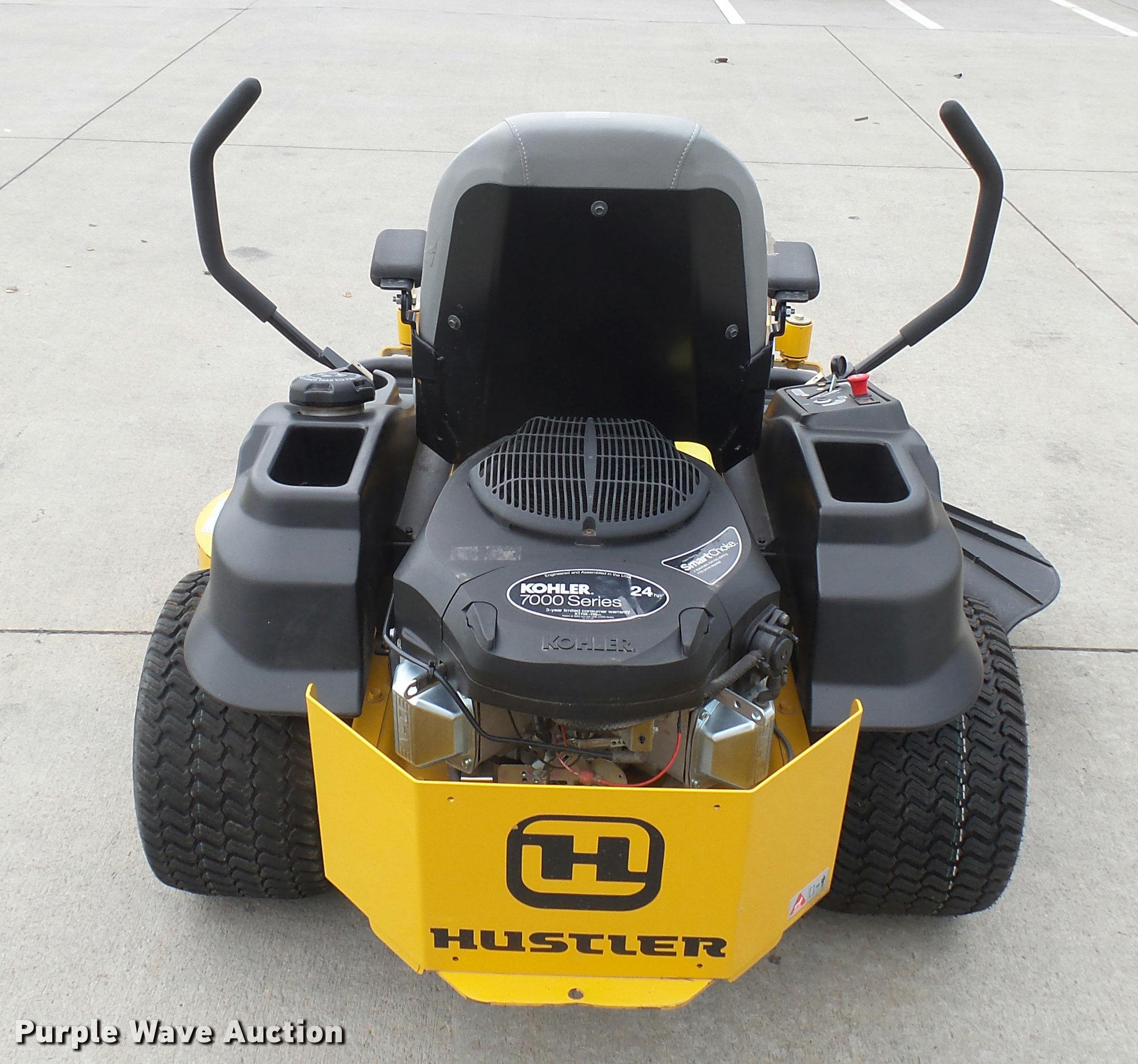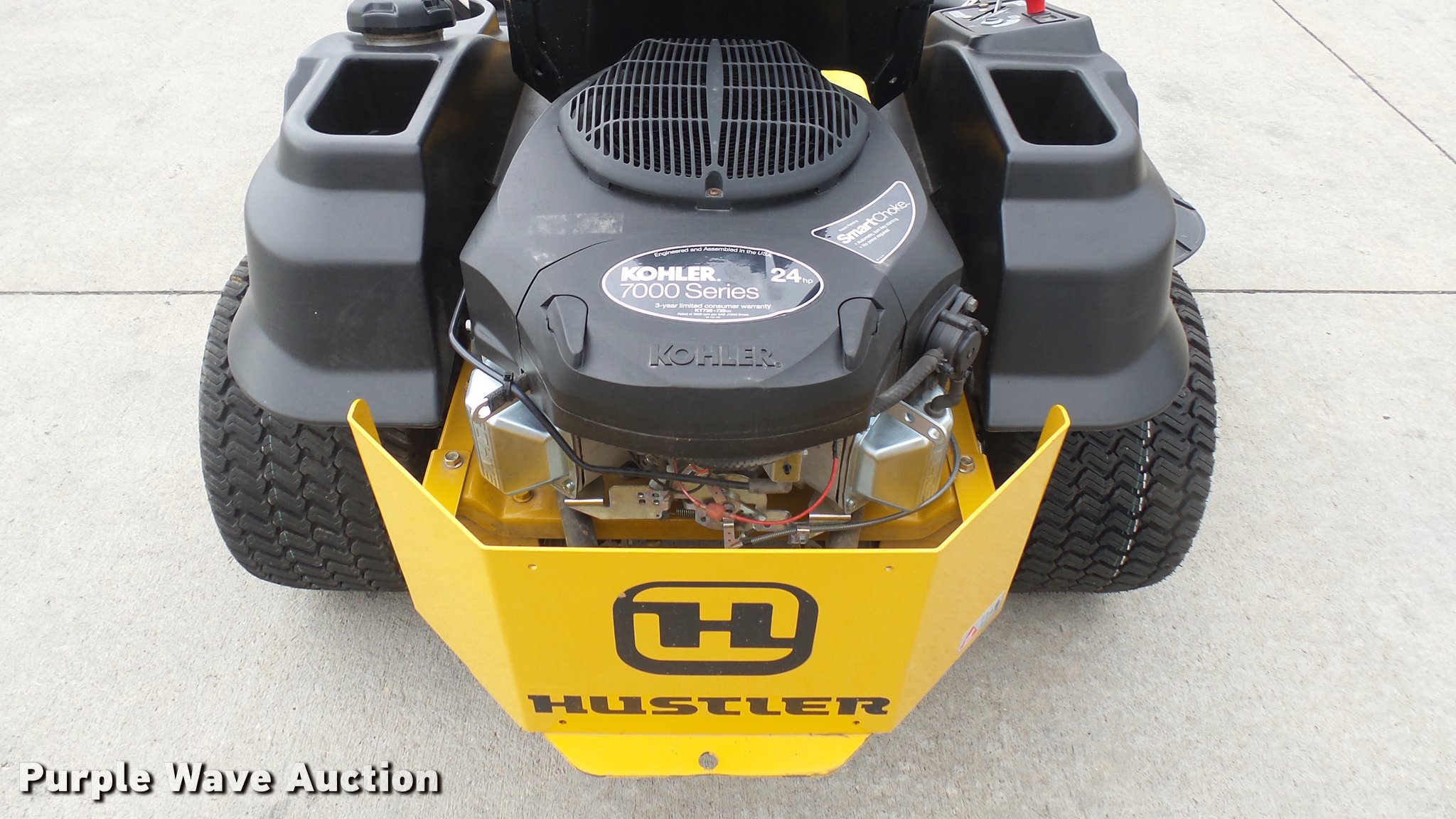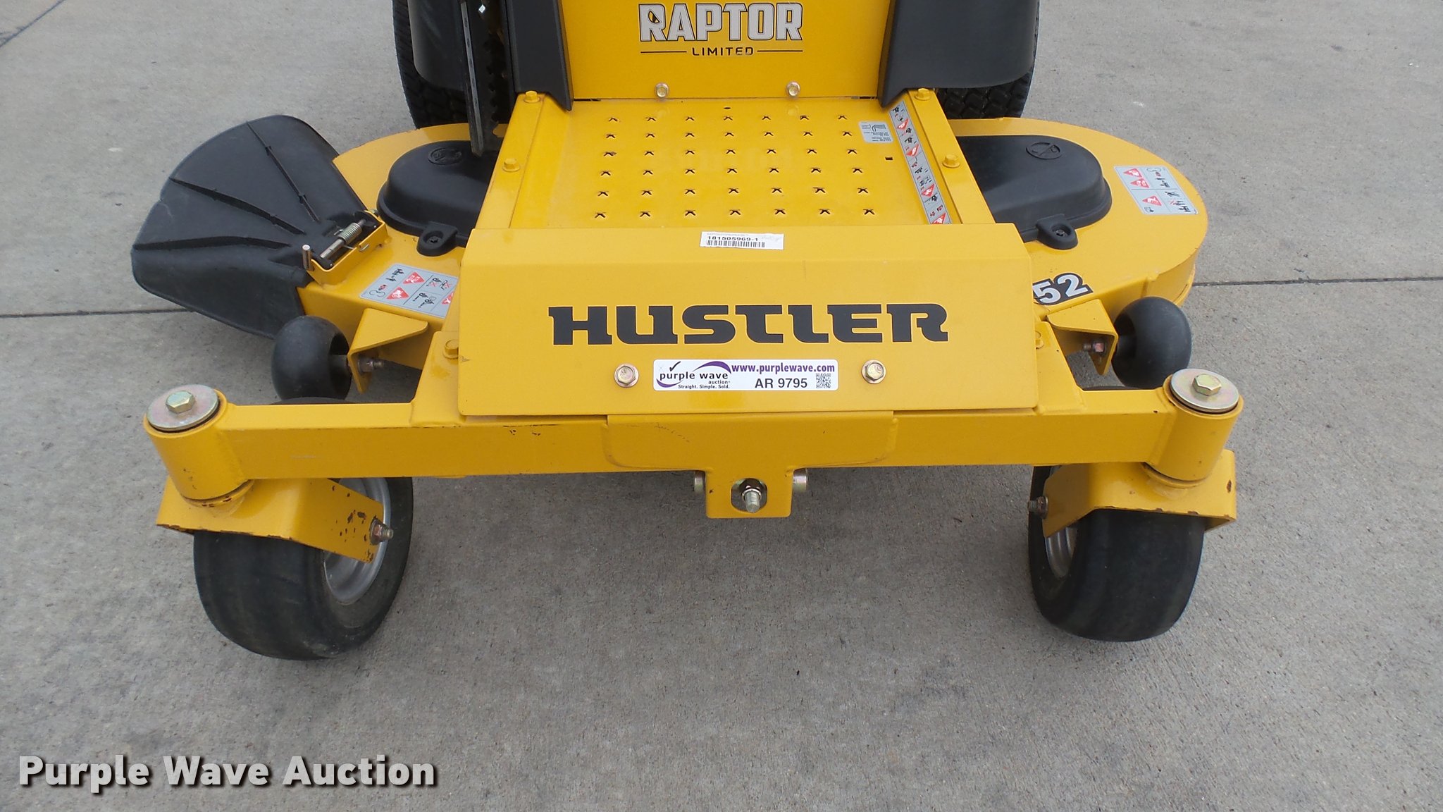 Purple Wave is selling a used Lawn Mower in Kansas. This item is a 2016 Hustler Raptor Limited 934802 ZTR lawn mower with the following: 55 hours on meter, 52" cut, Kohler 24 HP gas engine, Hydro-Gear drive transmission, 11x5x5 front tires, 18x10.5x10 rear tires, Warranty return: paint issue, Serial 1601C587