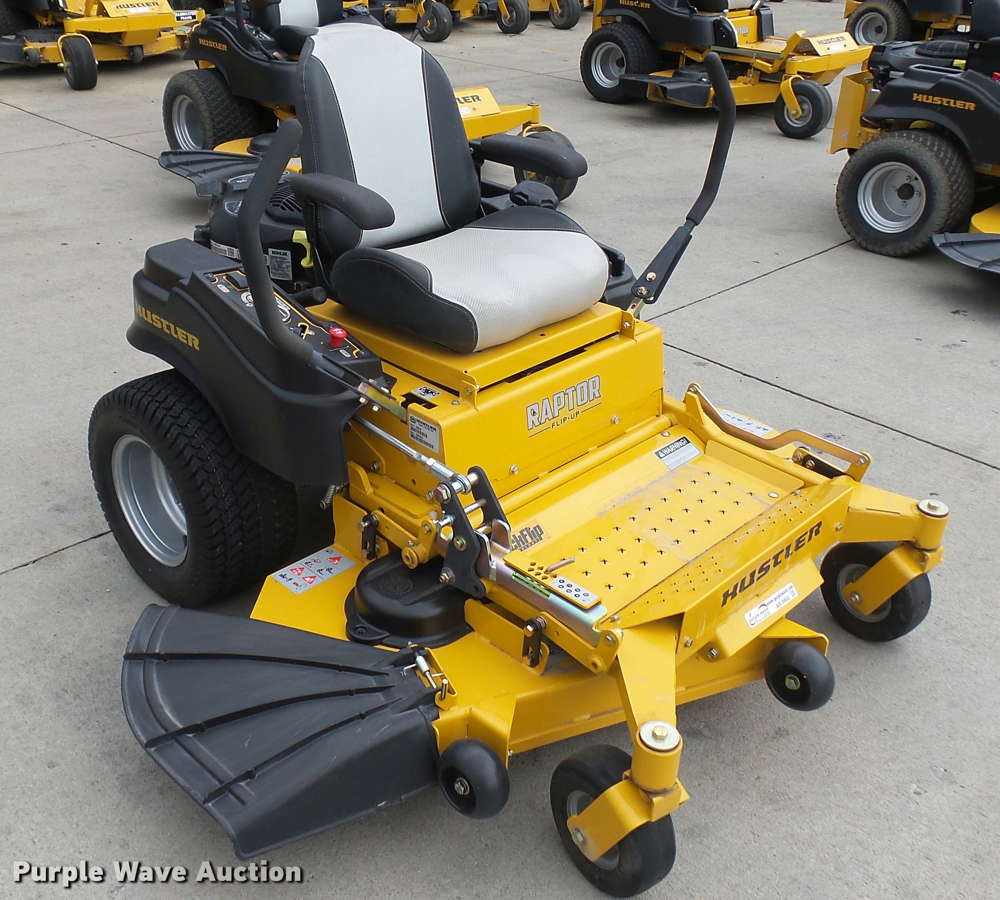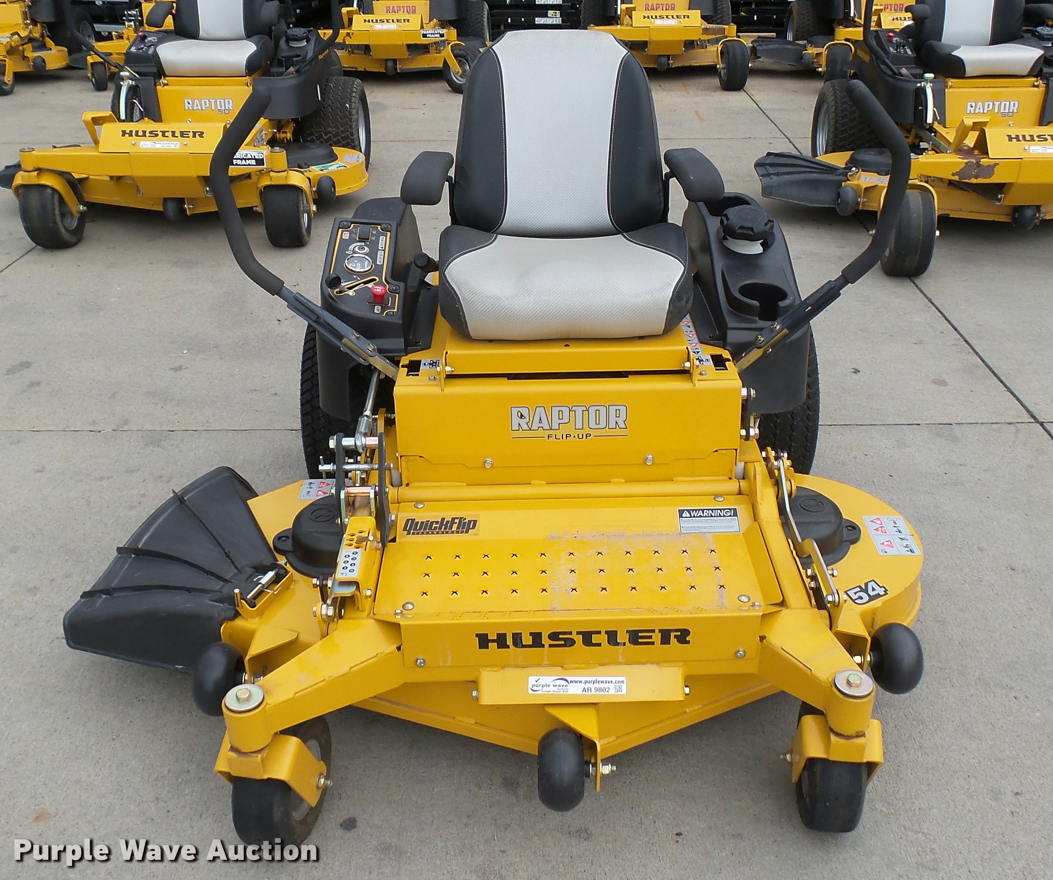 This 2016 Hustler Raptor Flip-Up 934745 ZTR lawn mower will sell to the highest bidder regardless of price.