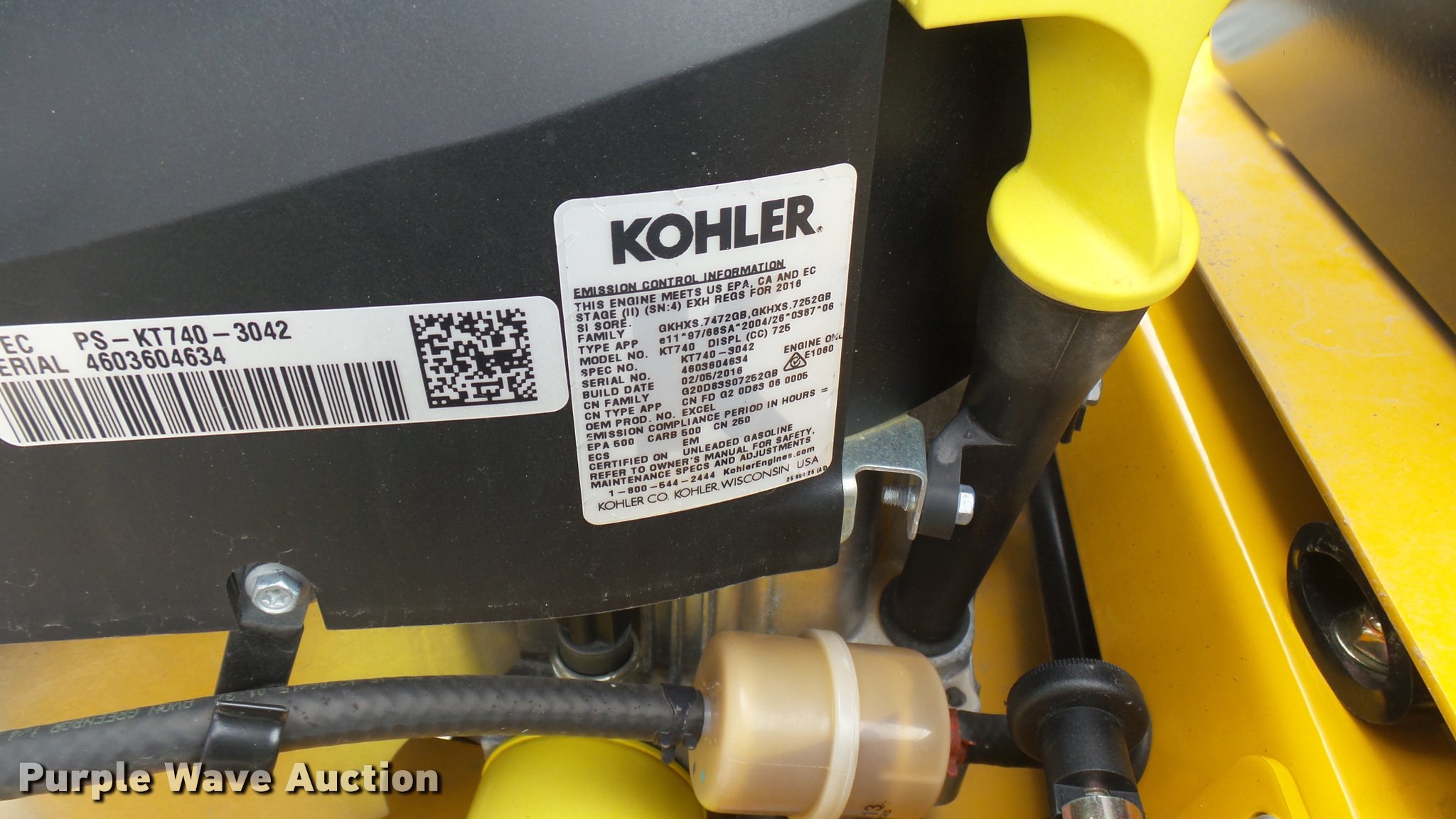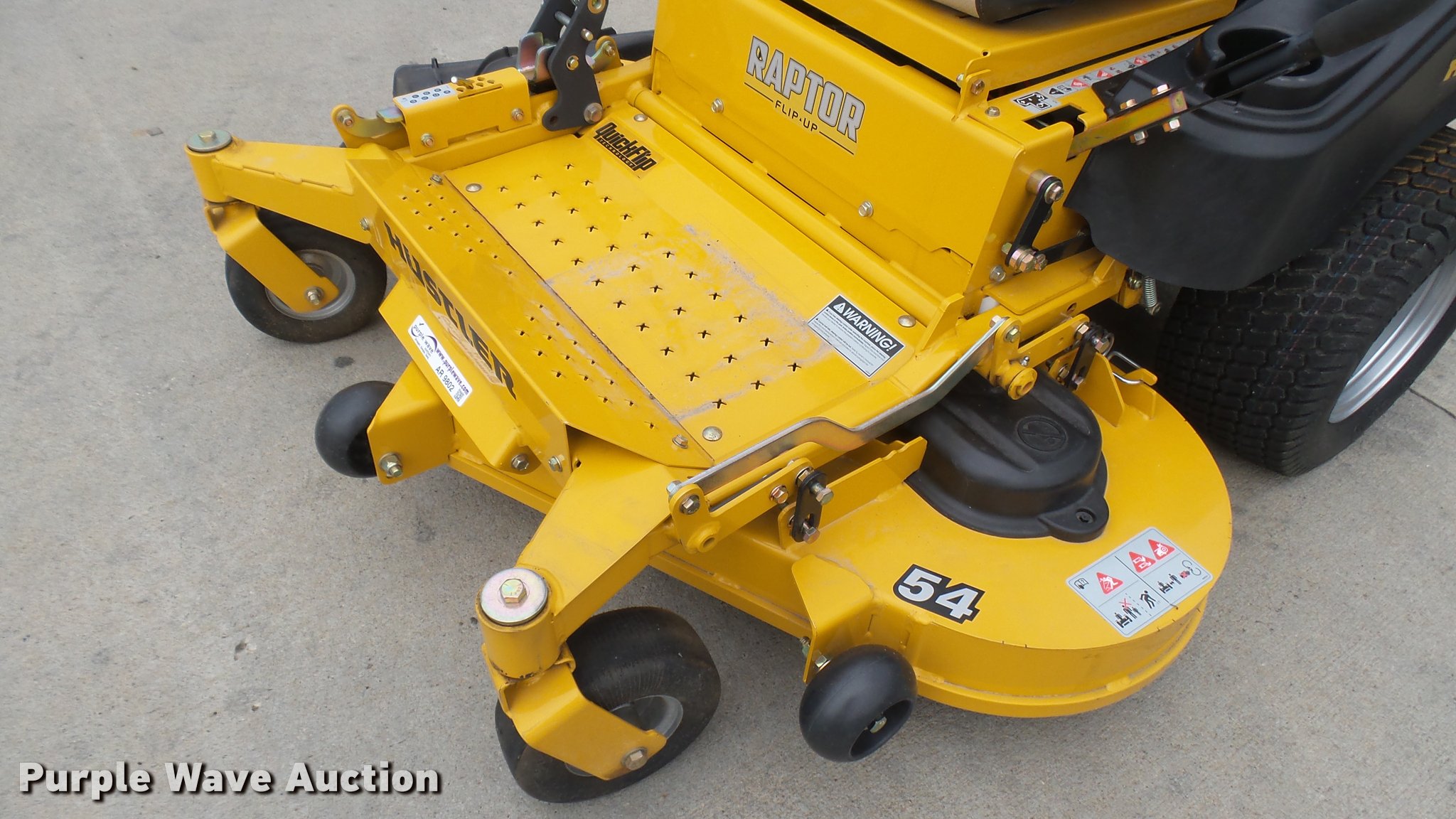 Purple Wave is selling a used Lawn Mower in Kansas. This item is a 2016 Hustler Raptor Flip-Up 934745 ZTR lawn mower with the following: 46 hours on meter, 54" cut, Kohler 25 HP gas engine, Hydro-Gear drive transmission, 9x3.5x4/2.25 front tires, 20x10x10 rear tires, Warranty return: paint issue, Serial 16031614