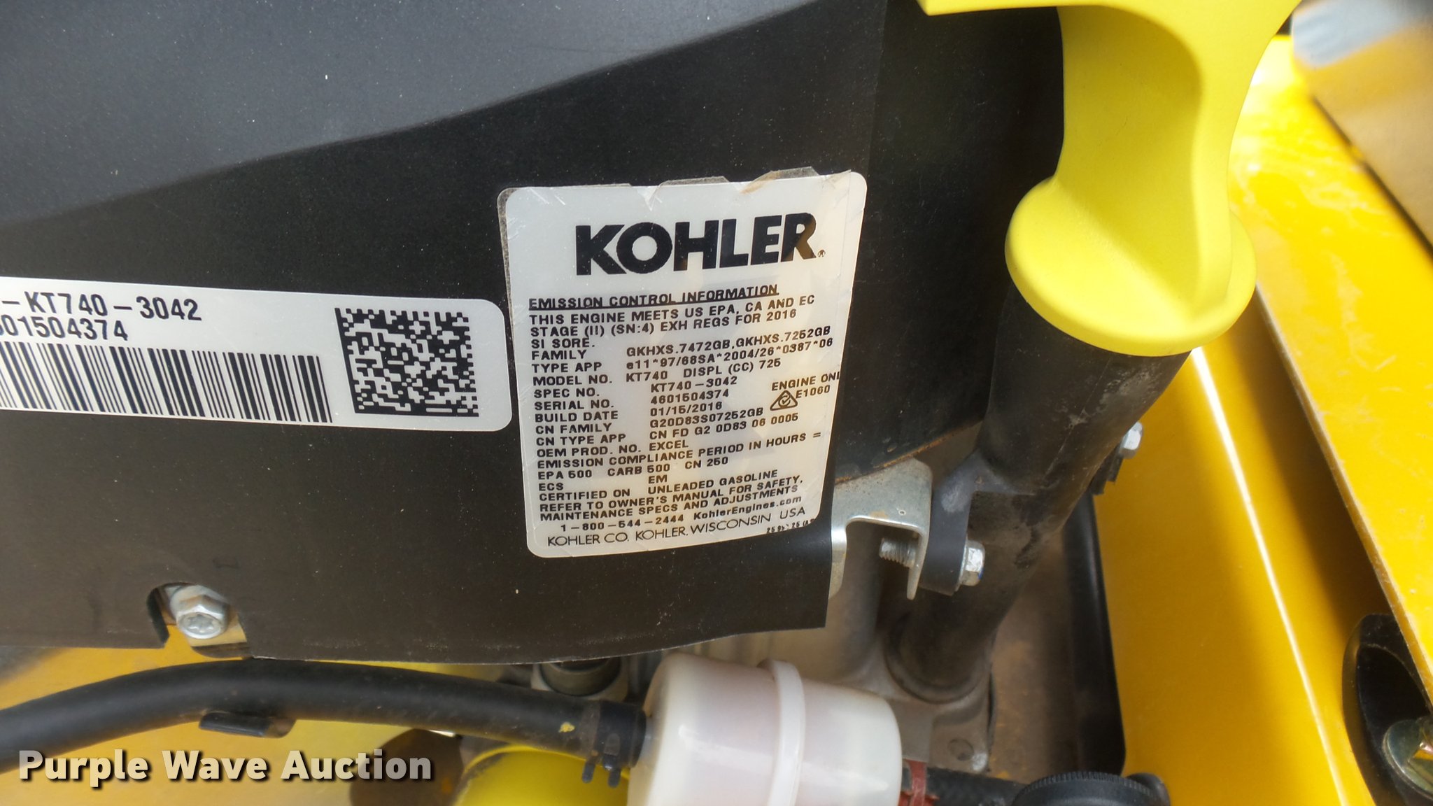Purple Wave is selling a used Lawn Mower in Kansas. This item is a 2016 Hustler Raptor Flip-Up 933622 ZTR lawn mower with the following: 92 hours on meter, 54" cut, Kohler 25 HP gas engine, Hydro-Gear drive transmission, 9x3.5x4/2.25 front tires, 20x10x10 rear tires, Warranty return: paint issue, Serial 16035267