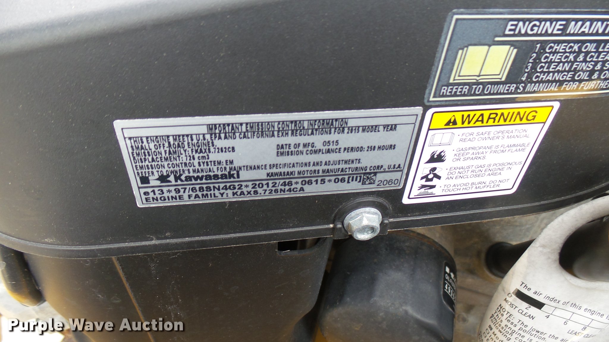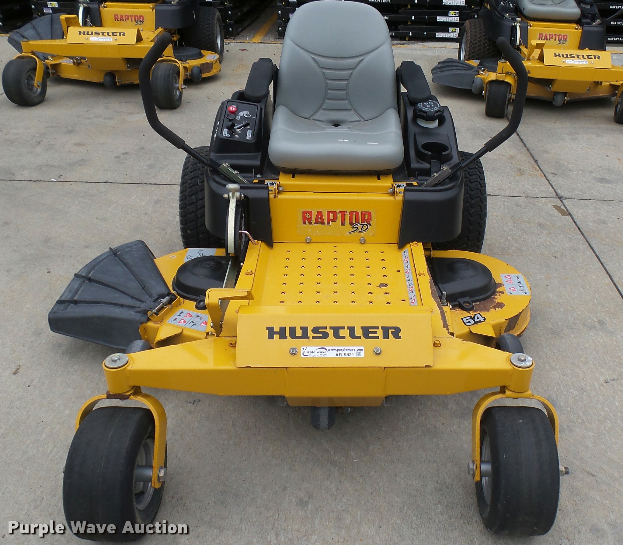 Purple Wave is selling a used Lawn Mower in Kansas. This item is a 2015 Hustler Raptor SD 932558 ZTR lawn mower with the following: 47 hours on meter, 54" cut, Kawasaki 23 HP gas engine, Hydro-Gear drive transmission, 13x6.5x6 front tires, 20x12x10 rear tires, Warranty return: paint issue, Serial 15062390