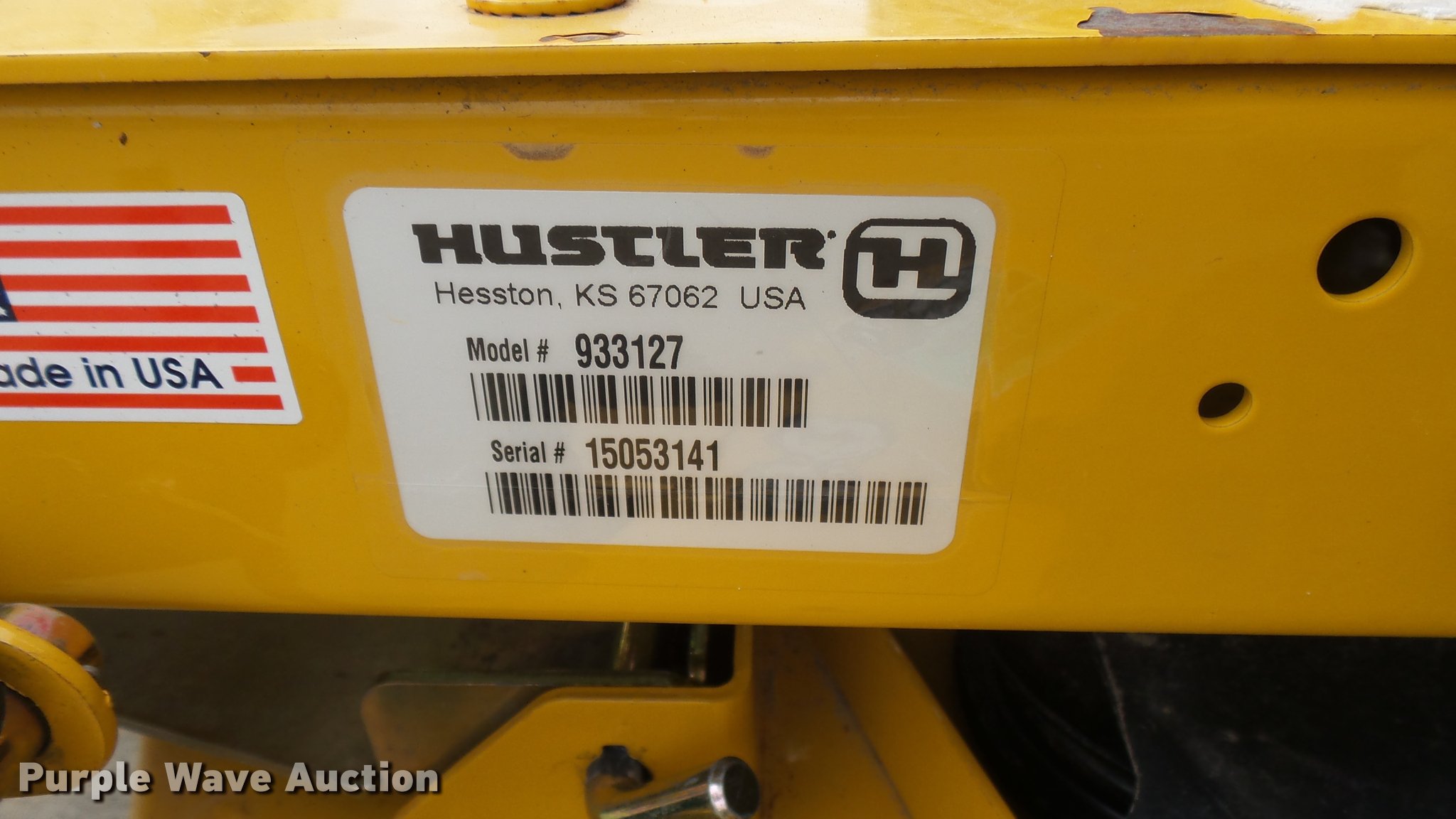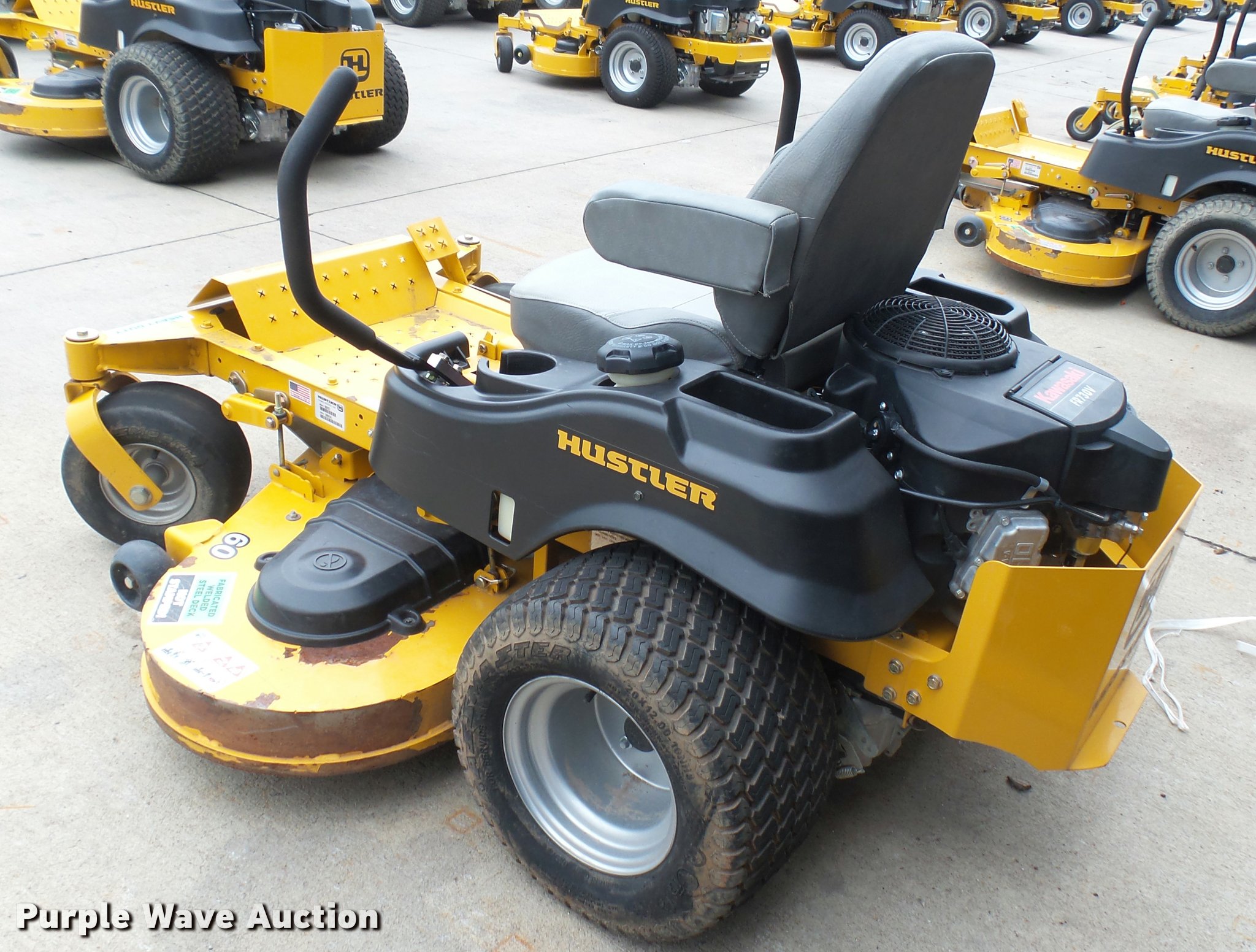 Purple Wave is selling a used Lawn Mower in Kansas. This item is a 2015 Hustler Raptor SD 933127 ZTR lawn mower with the following: 175 hours on meter, 60" cut, Kawasaki 24 HP gas engine, Hydro-Gear drive transmission, 13x6.5x6 front tires, 20x12x10 rear tires, Warranty return: paint issue, Serial 15053141