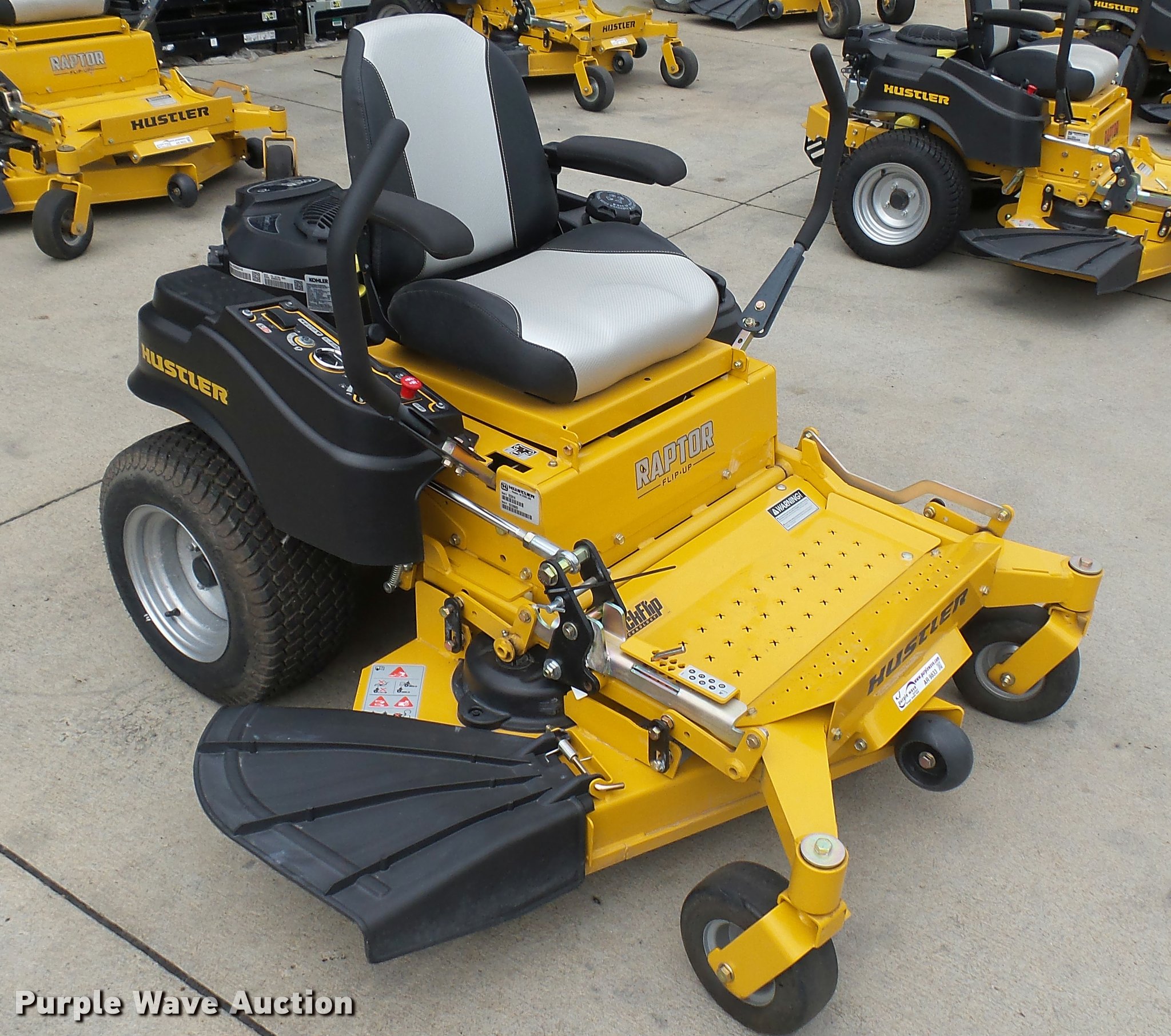 This 2015 Hustler Raptor Flip-Up 933614 ZTR lawn mower will sell to the highest bidder regardless of price.