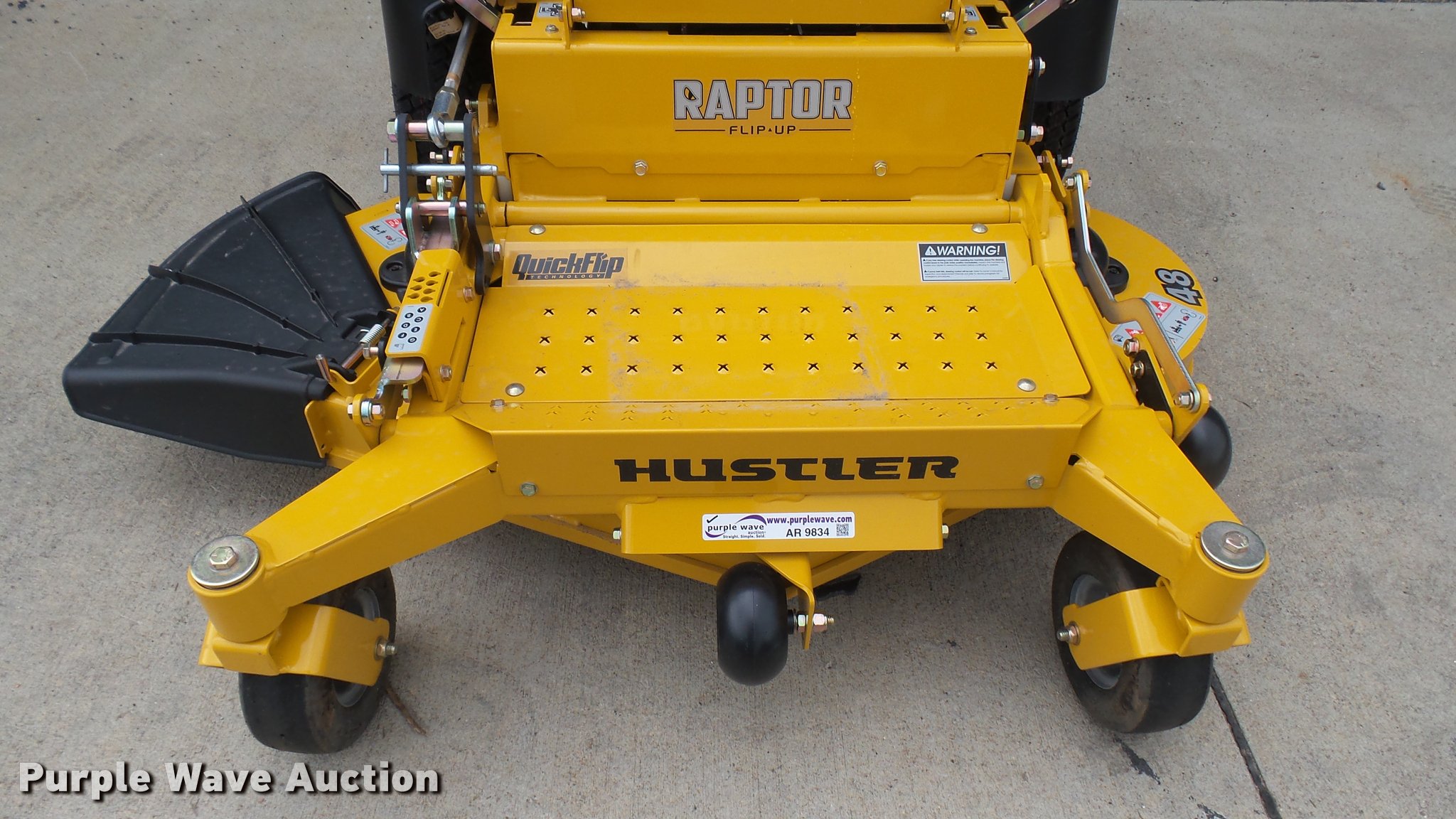 This 2016 Hustler Raptor Flip-Up 933614 ZTR lawn mower will sell to the highest bidder regardless of price.
