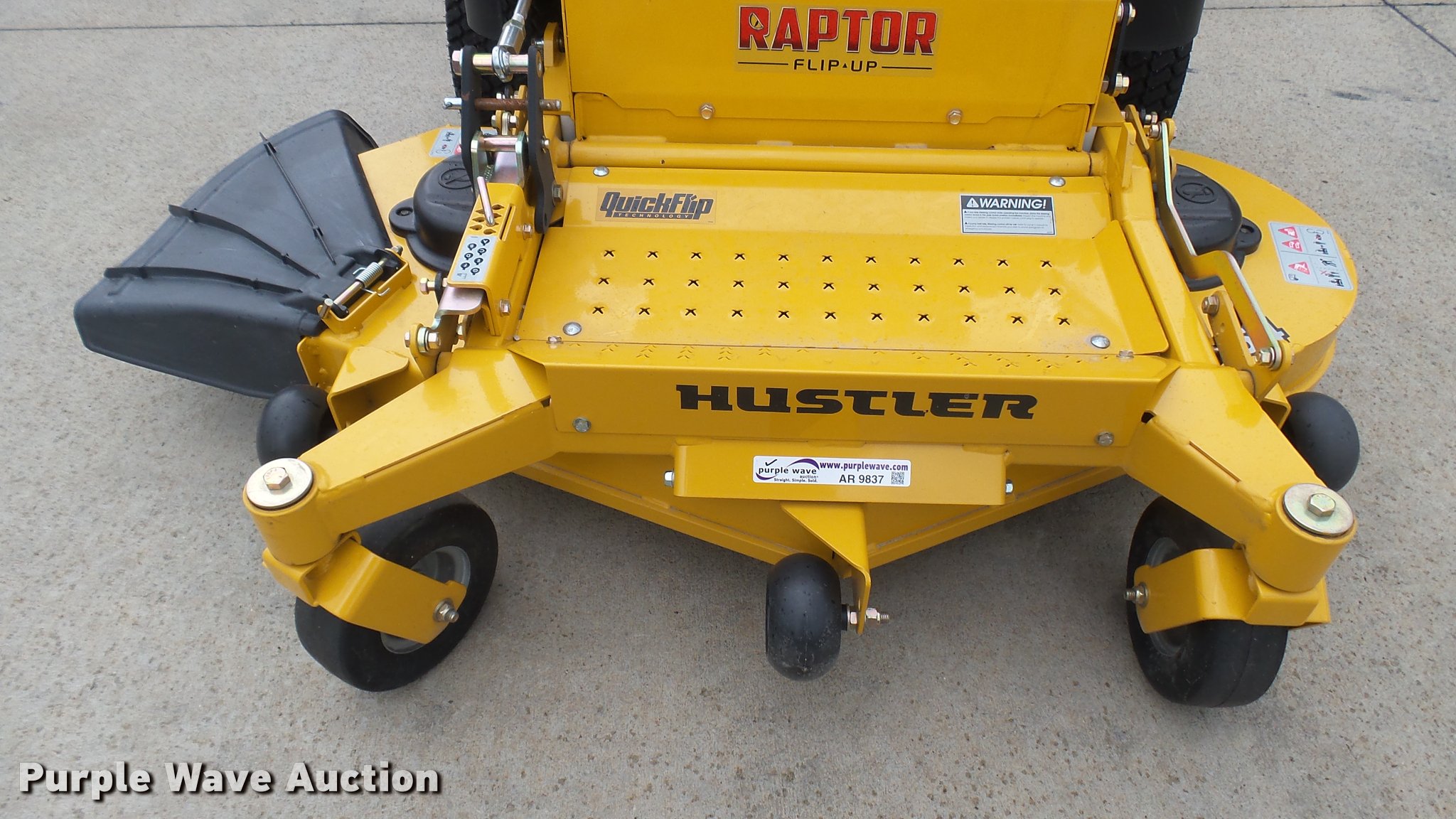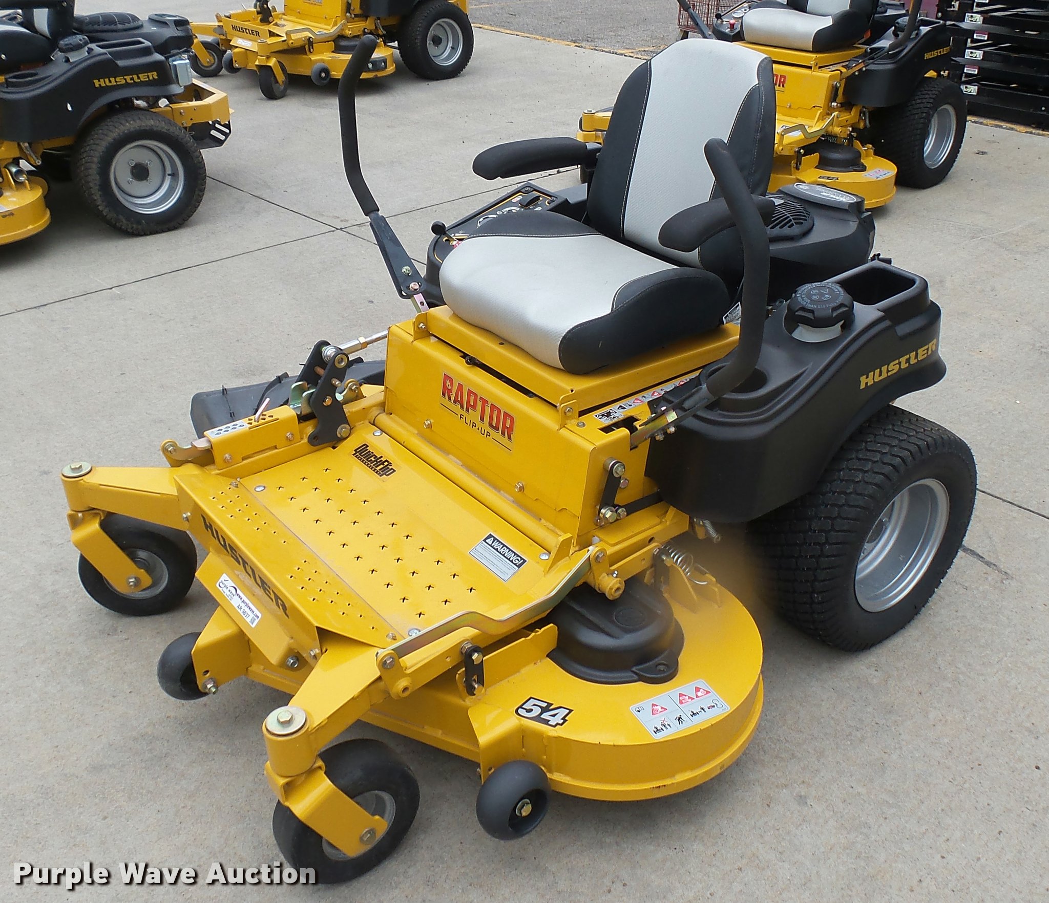 This 2015 Hustler Raptor Flip-Up 933622 ZTR lawn mower will sell to the highest bidder regardless of price.