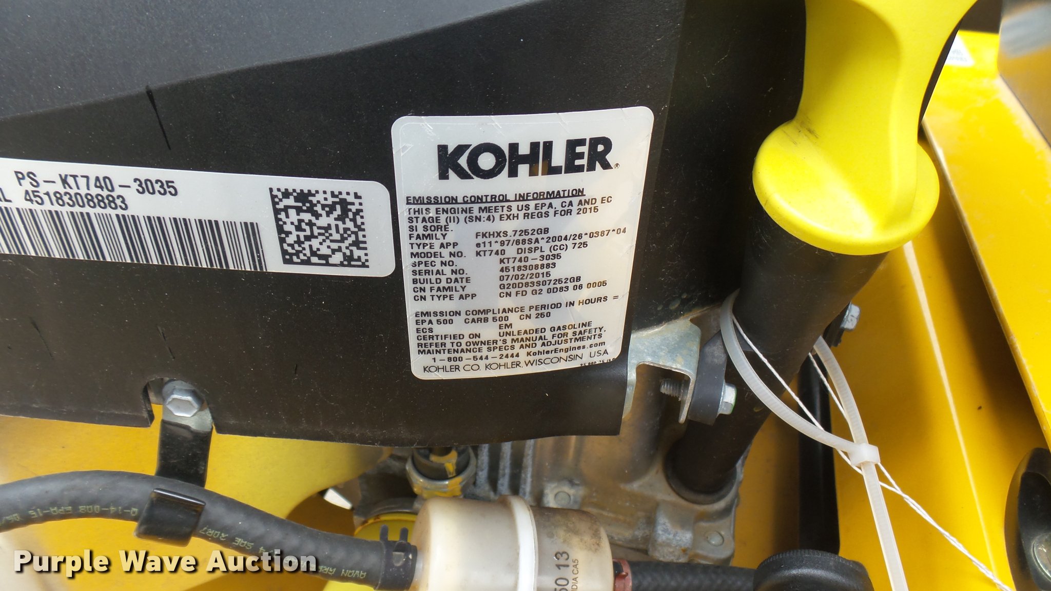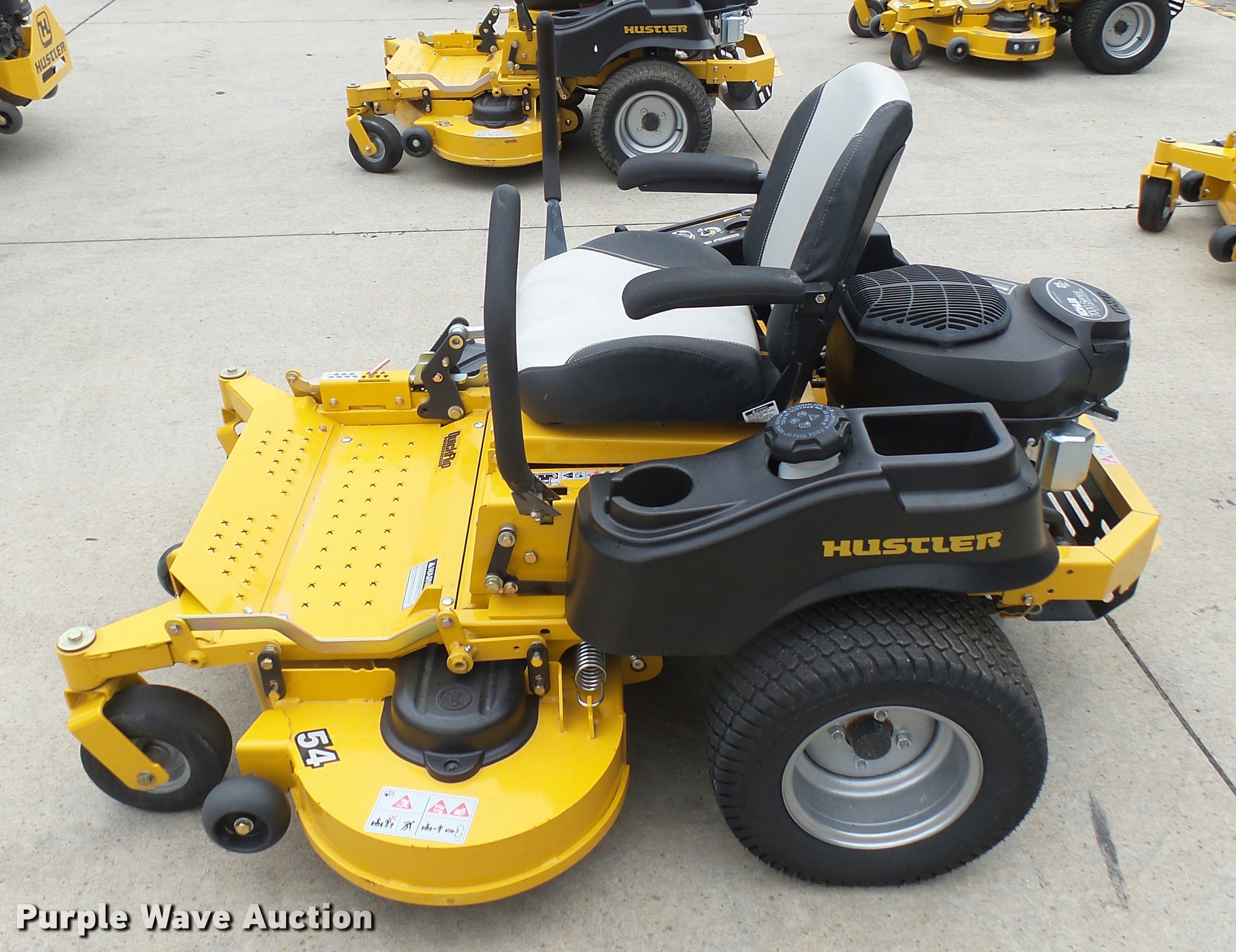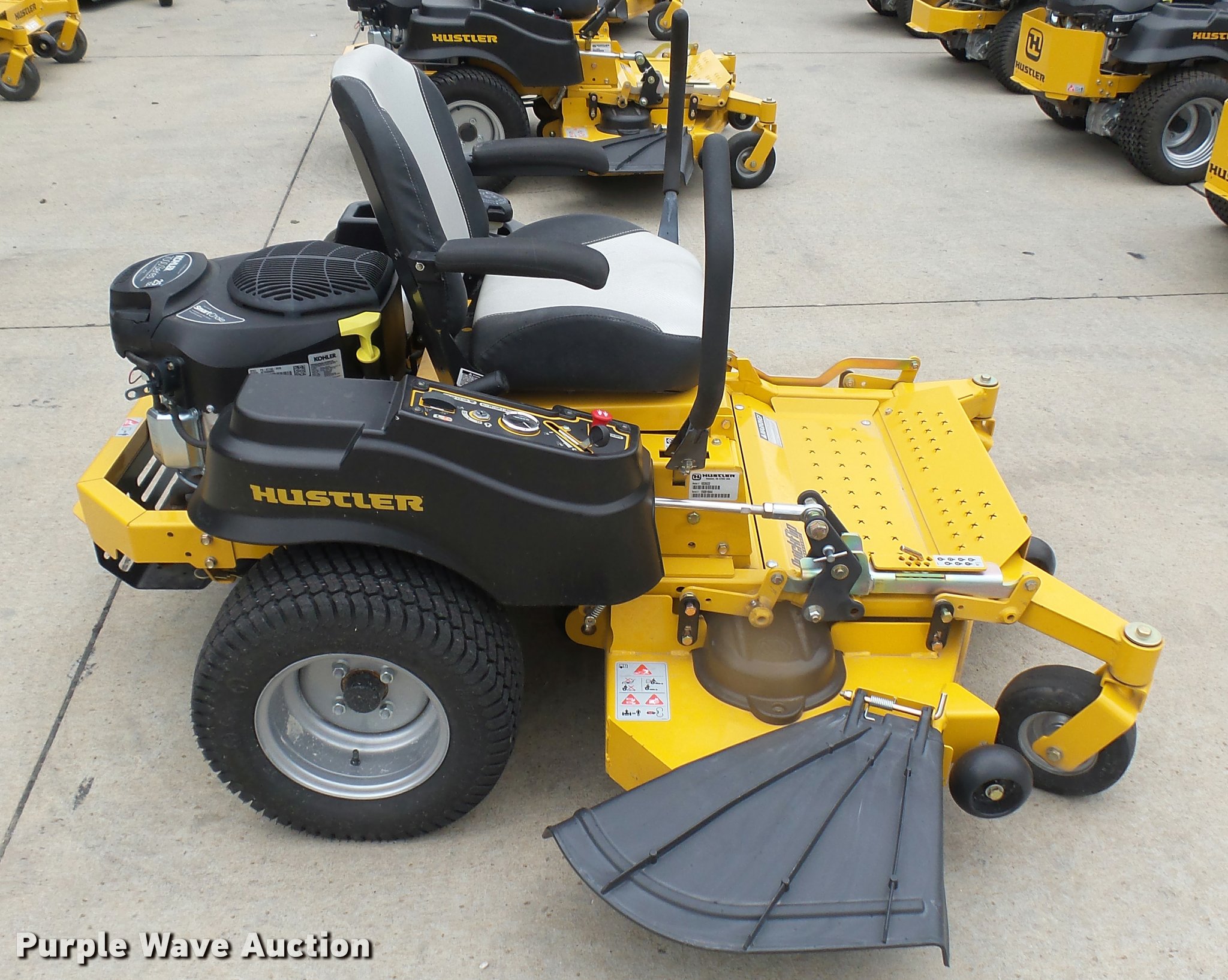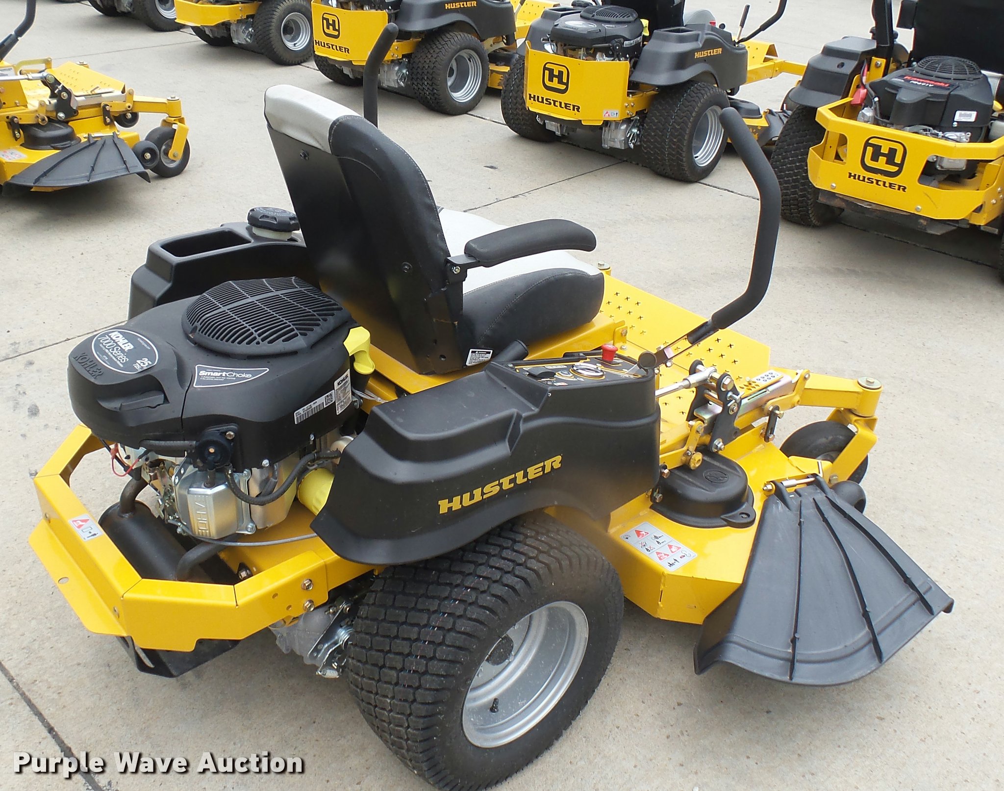 Purple Wave is selling a used Lawn Mower in Kansas. This item is a 2015 Hustler Raptor Flip-Up 933622 ZTR lawn mower with the following: 267 hours on meter, 54" cut, Kohler 25 HP gas engine, Hydro-Gear drive transmission, 9x3.5x4/2.25 front tires, 20x10x10 rear tires, Warranty return: paint issue, Serial 15091844