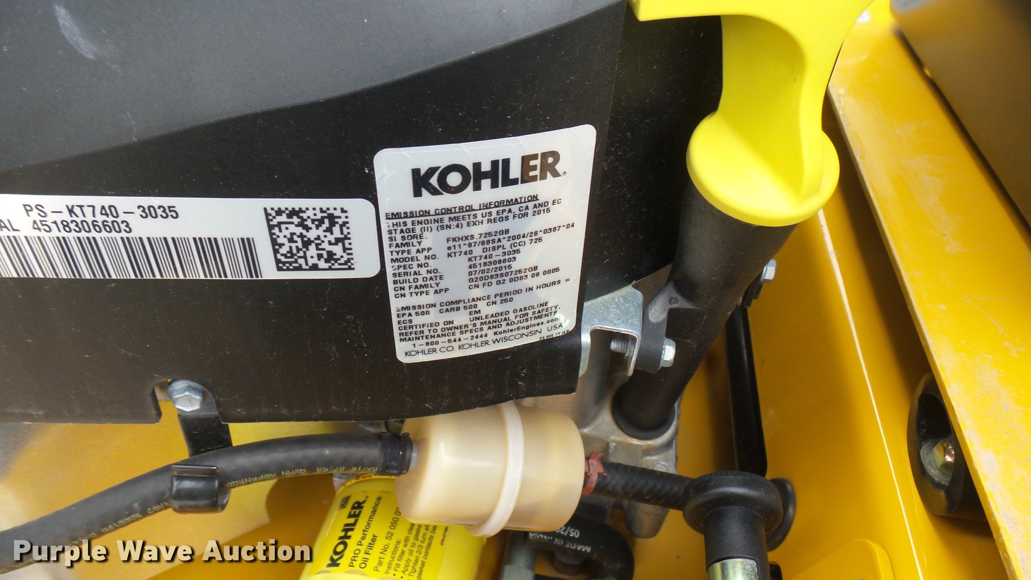 Purple Wave is selling a used Lawn Mower in Kansas. This item is a 2015 Hustler Raptor Flip-Up 933622 ZTR lawn mower with the following: 4 hours on meter, 54" cut, Kohler 25 HP gas engine, Hydro-Gear drive transmission, 9x3.5x4/2.25 front tires, 20x10x10 rear tires, Warranty return: paint issue, Serial 15091910