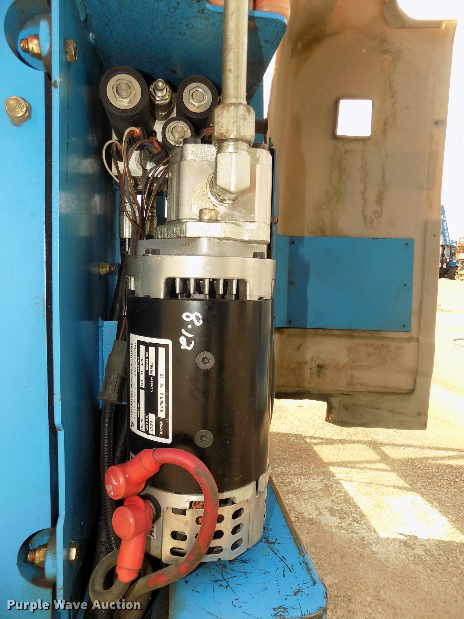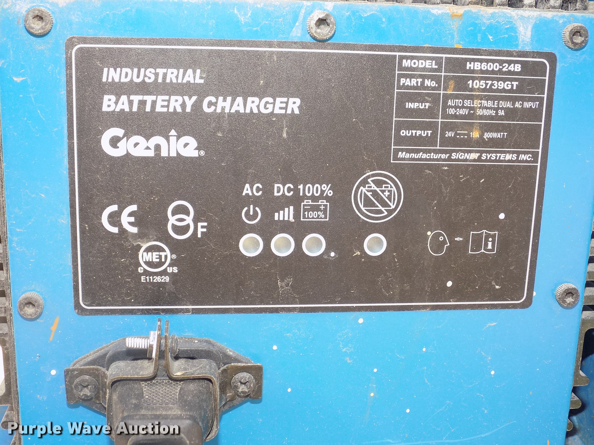 Purple Wave is selling a used Scissor or Vertical Lift in Nebraska. This item is a 2008 Genie GR20 vertical lift with the following: 1,566 hours on meter, 350 lbs maximum lift capacity, 19'11" maximum lift height, 35"L x 29"W platform, Platform and ground controls, AC power outlet, Safety alarm, 30 percent rated gradeability, Lifting eye, Tare weight 2,440 lbs, 10 x 3 non-marking tires, Model HB600.24B battery charger, Operator manual, ANSI manuals, Serial GR08-10605, Unit# 10635