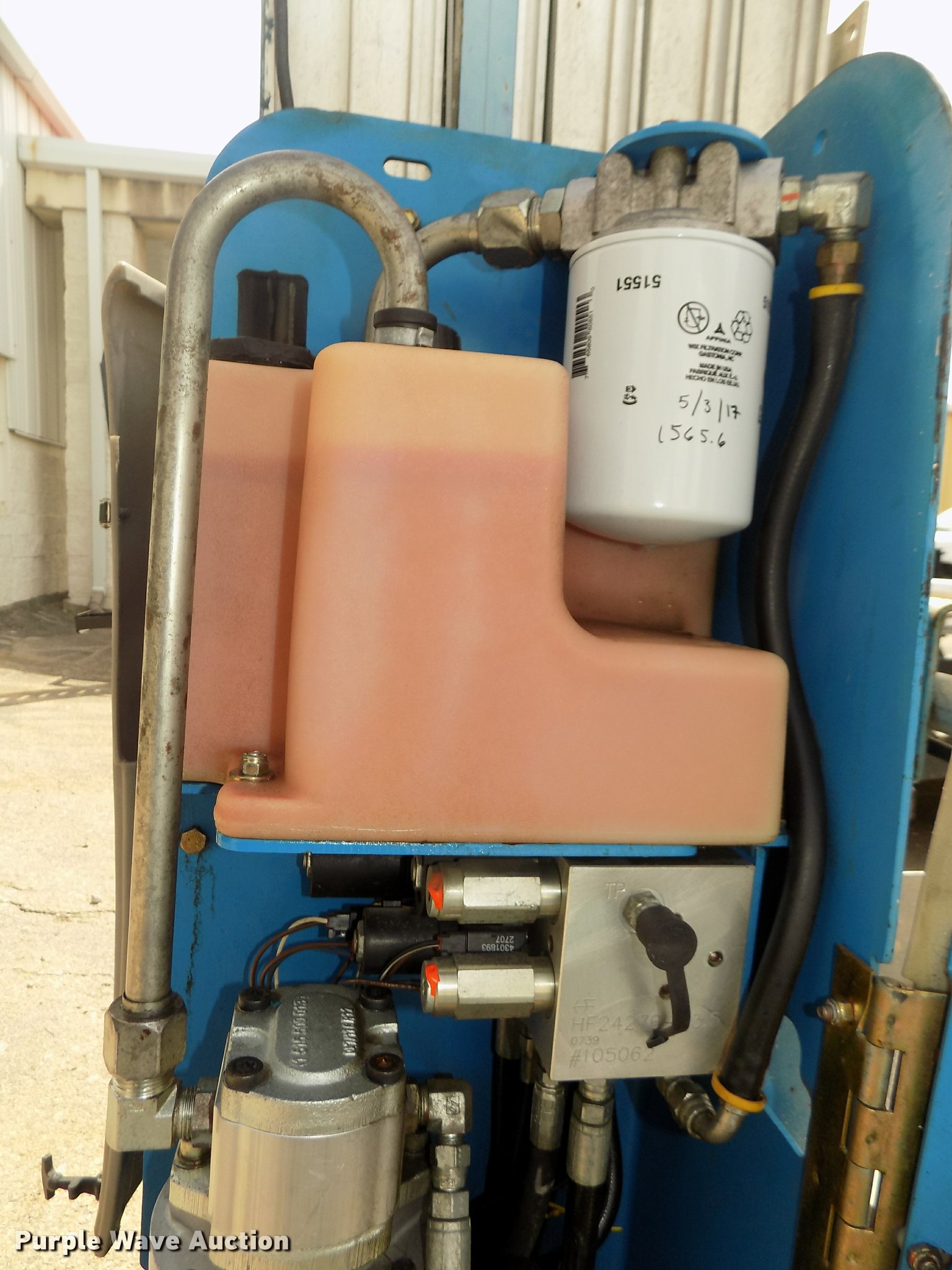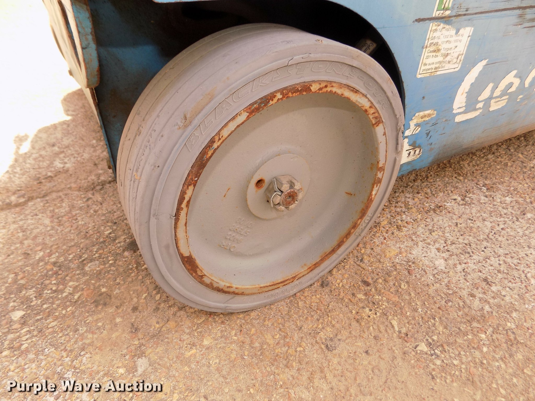 2008 Genie GR20 vertical lift. 1,566 hours on meter, 350 lbs maximum lift capacity, 19'11" maximum lift height, 35"L x 29"W platform Platform and ground controls, AC power outlet, Safety alarm, 30 percent rated gradeability, Lifting eye, Tare weight 2,440 lbs, 10 x 3 non-marking tires, Model HB600.24B battery charger, Operator manual, ANSI manuals, Serial GR08-10605, Unit# 10635. Duke Aerial Equipment. 540 W O St. Lincoln, NE 68528