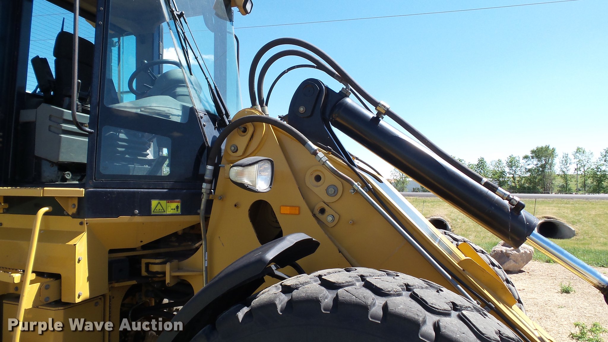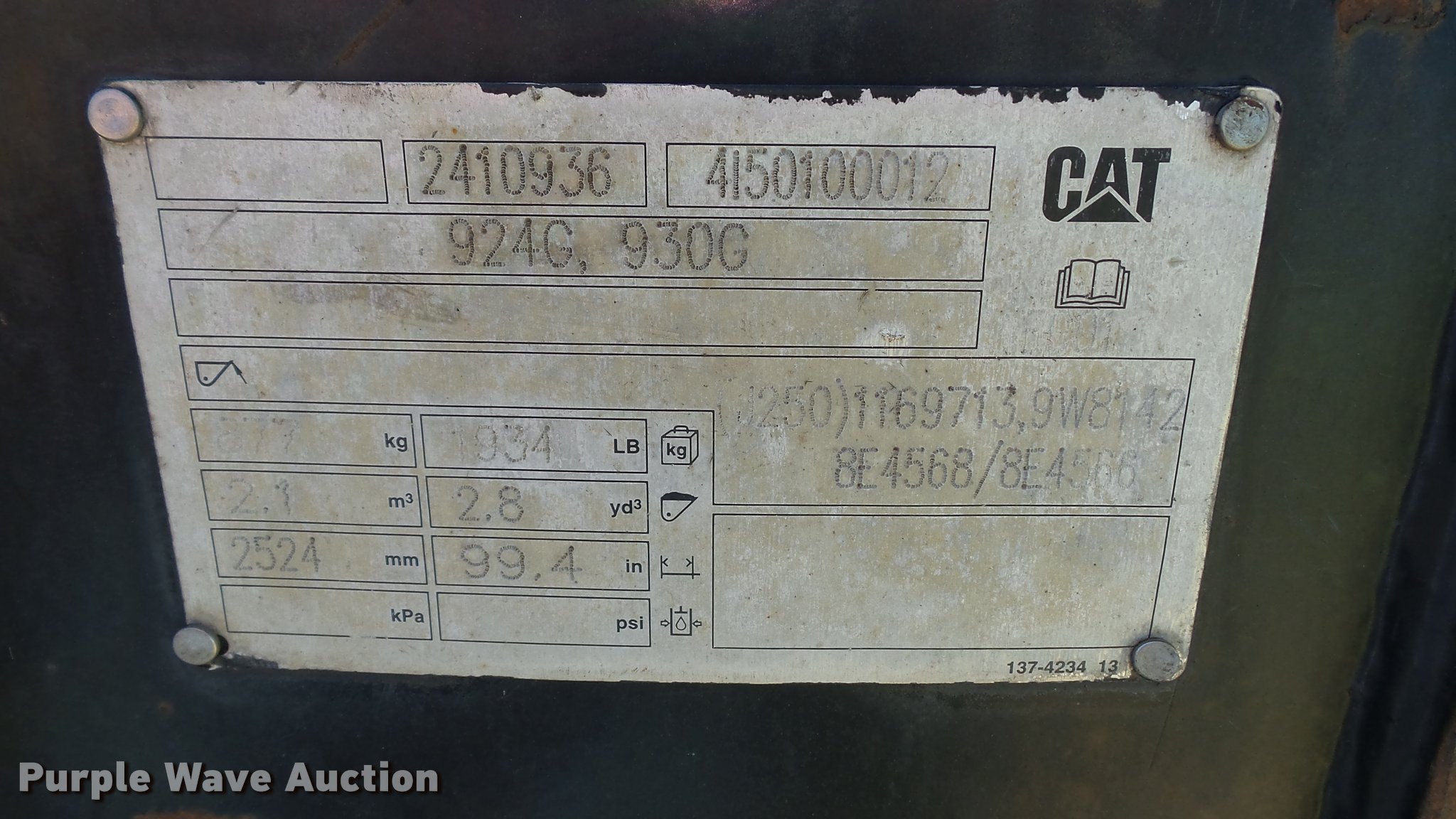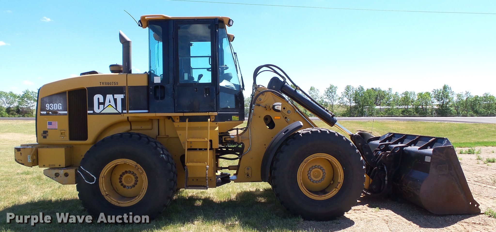 Purple Wave is selling a used Wheel Loader in North Dakota. This item is a 2005 Caterpillar 930G wheel loader with the following: 4,394 hours on meter, Caterpillar six cylinder turbo diesel engine, Powershift transmission, 4F-3R gears, EROPS, AC and heat, Tilt steering wheel, Suspension seat, Joystick bucket controls, Wipers, Front and rear work lights, Backup alarm, Block heater, Caterpillar 101"W general purpose bucket, Bolt-on cutting edge, Hydraulic quick coupler, Front auxiliary hydraulics, Counterweights, Double Coin REMZ 20.5R25 tires, Serial CAT0930GCTWR00759