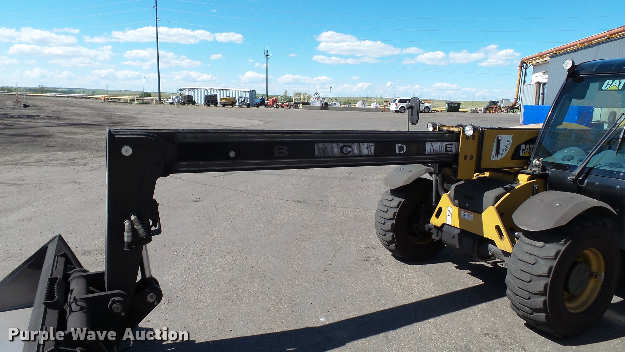 Purple Wave is selling a used Telehandler in North Dakota. This item is a 2014 Caterpillar TH255C telehandler with the following: 1,965 hours on meter, Deutz TD29L4 2.9L four cylinder diesel engine, Serial 11424738, Block heater, Hydrostatic transmission, Four wheel drive, Four wheel steer, EROPS, Heat, Work lights, Wiper, Backup alarm, 5,500 lbs maximum lift capacity, Two boom stages, Caterpillar 279-5376 80"W bucket, 0.62 cu.yd. capacity, Serial 65SSGP05214, Manual quick attach, Auxiliary hydraulics, Adjustable height pin hitch, Firestone DuraForce DT 305/70D16.5 tires, Serial JK200187