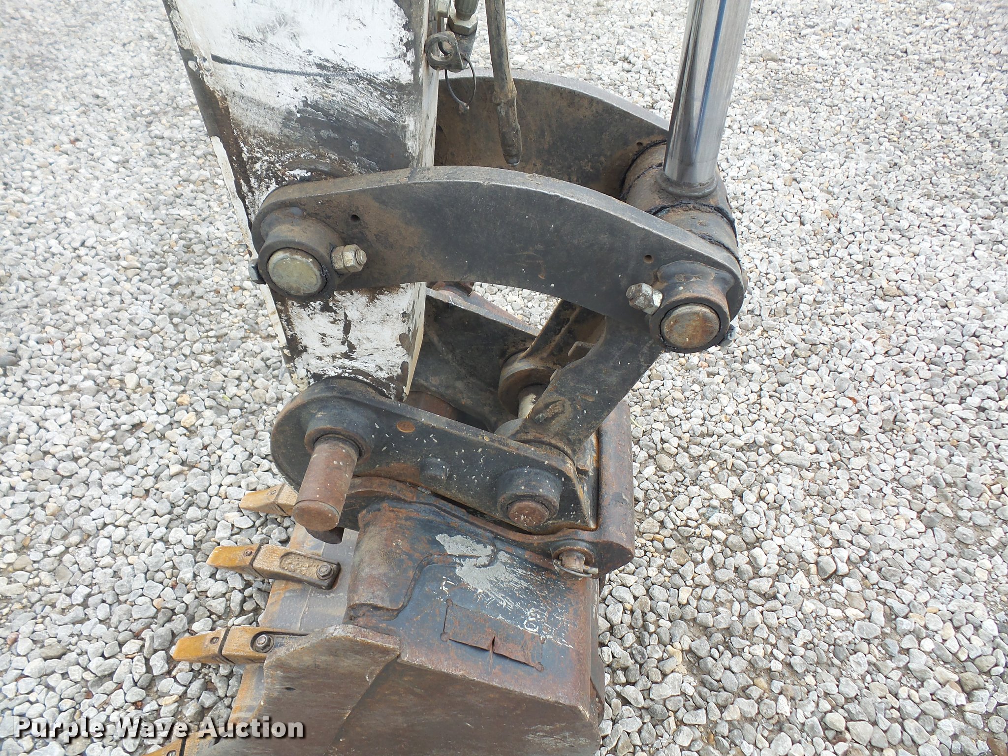 Purple Wave is selling a used Mini Excavator in Kansas. This item is a 2012 Bobcat E45M compact excavator with the following: 1,644 hours on meter, Kubota V-2403 2.4L four cylinder diesel engine, 31.2 kW, Two speed hydrostatic transmission, Enclosed cab, AC and heat, Suspension seat, Front work lights, Wipers, 77"W backfill blade, Standard boom, 55" stick length, Two-way auxiliary hydraulics, Plumbed for quick coupler, no coupler included, Unattached Bobcat hydraulic thumb, Bobcat bucket, 24"W, 5.14 cu. ft. capacity, (4) teeth, 15 3/4"W rubber tracks, Serial AG3G17251
