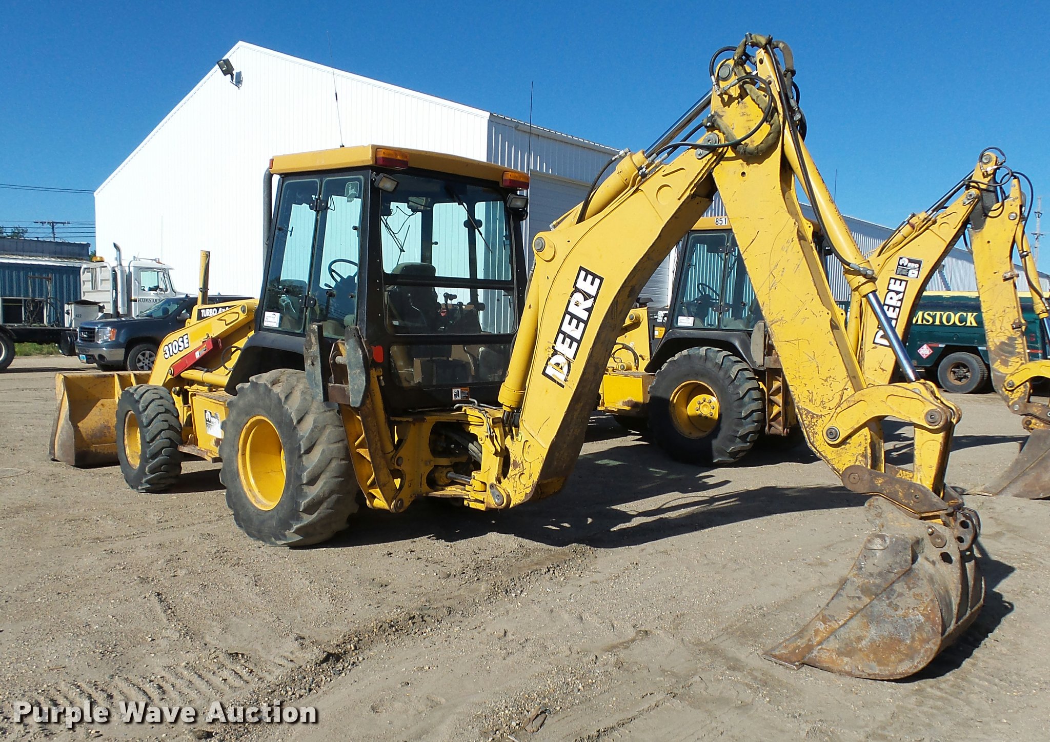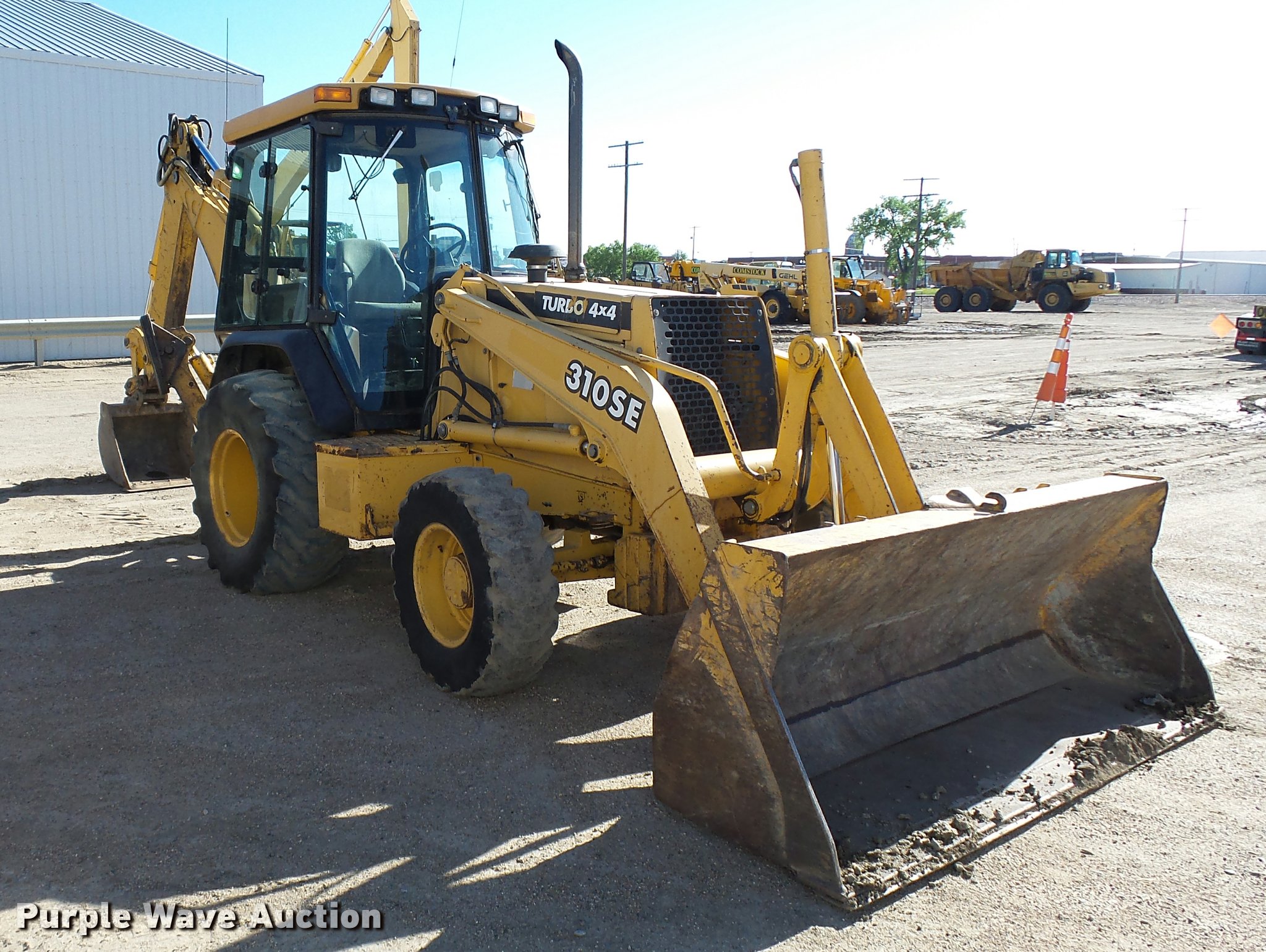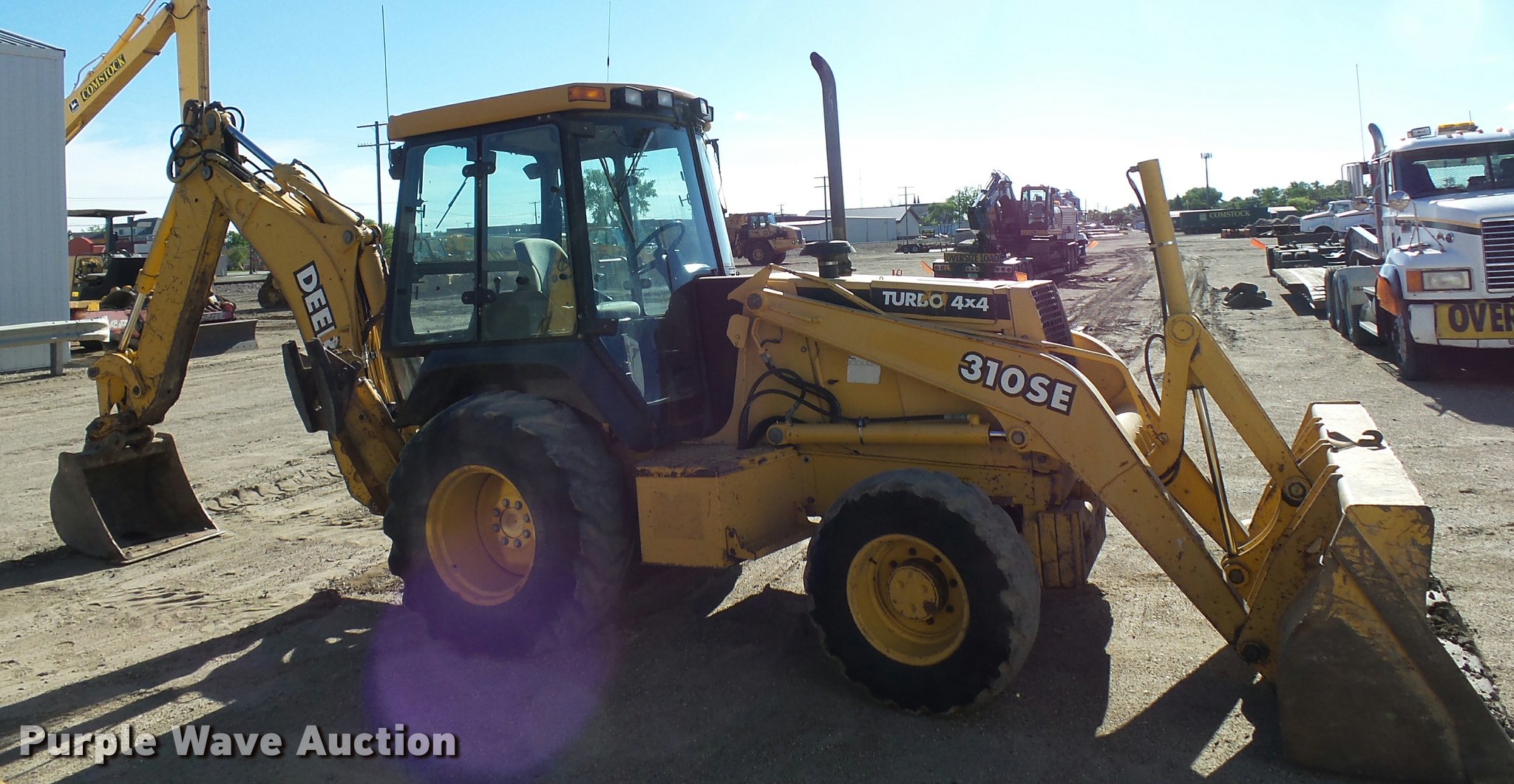 1998 John Deere 310SE backhoe. 6,693 hours on meter, John Deere four cylinder turbo diesel engine Serial JD4045TT050, Shuttle shift transmission 4F-4R gears, Four wheel drive, EROPS, Heat, AM/FM, Tilt steering wheel, Air suspension seat, Wobble stick backhoe controls, Wipers, Front and rear work lights, John Deere AT174225 91"W loader bucket 1.3 cu. yd. capacity, Bolt-on cutting edge, E-stick, 30"W backhoe bucket Model 180904, 10 cubic foot capacity, Bolt-on cutting edge, 12" pin spacing, Front counter weights, 12.5/80-18 front tires, 19.5-24 rear tires, Service records available upon request, Serial T0310SE841662. Comstock Construction. 280 11th St S. Wahpeton, ND 58075