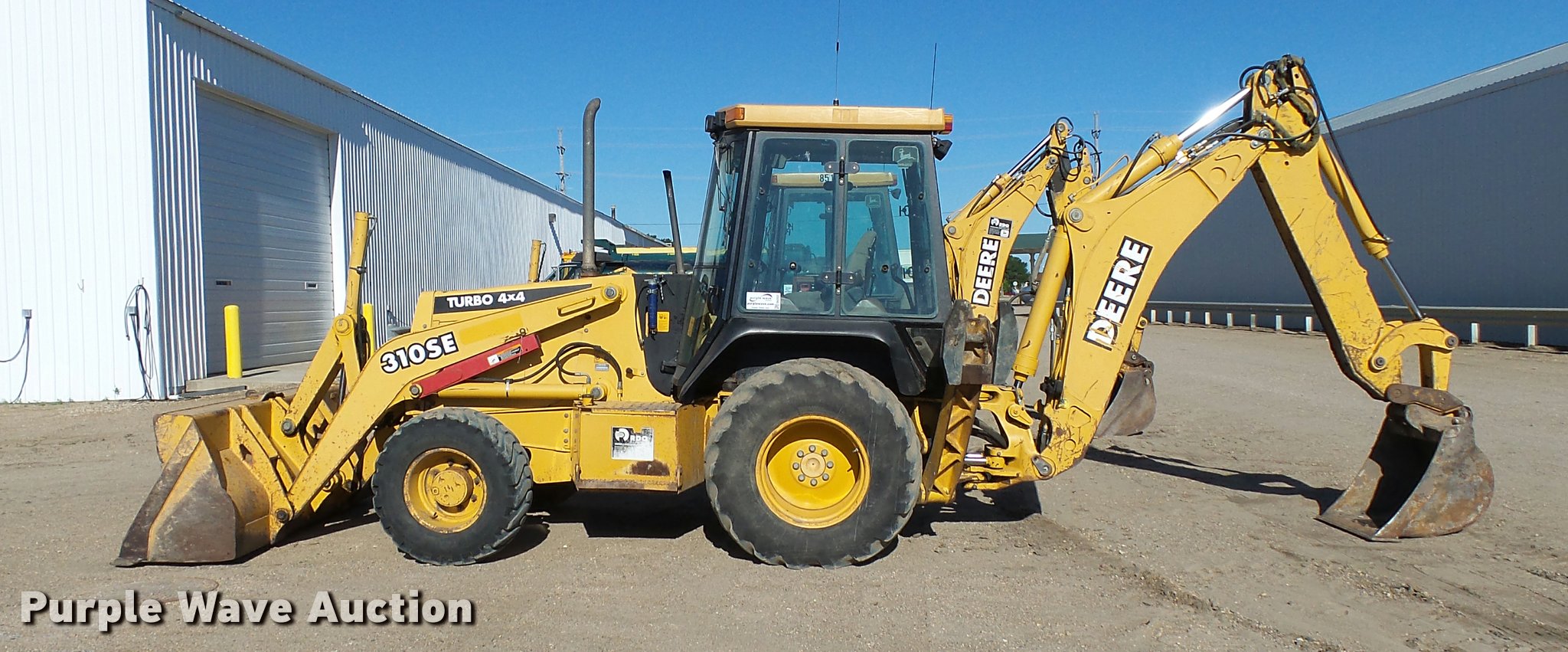 Purple Wave is selling a used Tractor Loader Backhoe in North Dakota. This item is a 1998 John Deere 310SE backhoe with the following: 6,693 hours on meter, John Deere four cylinder turbo diesel engine, Serial JD4045TT050, Shuttle shift transmission, 4F-4R gears, Four wheel drive, EROPS, Heat, AM/FM, Tilt steering wheel, Air suspension seat, Wobble stick backhoe controls, Wipers, Front and rear work lights, John Deere AT174225 91"W loader bucket, 1.3 cu. yd. capacity, Bolt-on cutting edge, E-stick, 30"W backhoe bucket, Model 180904, 10 cubic foot capacity, Bolt-on cutting edge, 12" pin spacing, Front counter weights, 12.5/80-18 front tires, 19.5-24 rear tires, Service records available upon request, Serial T0310SE841662