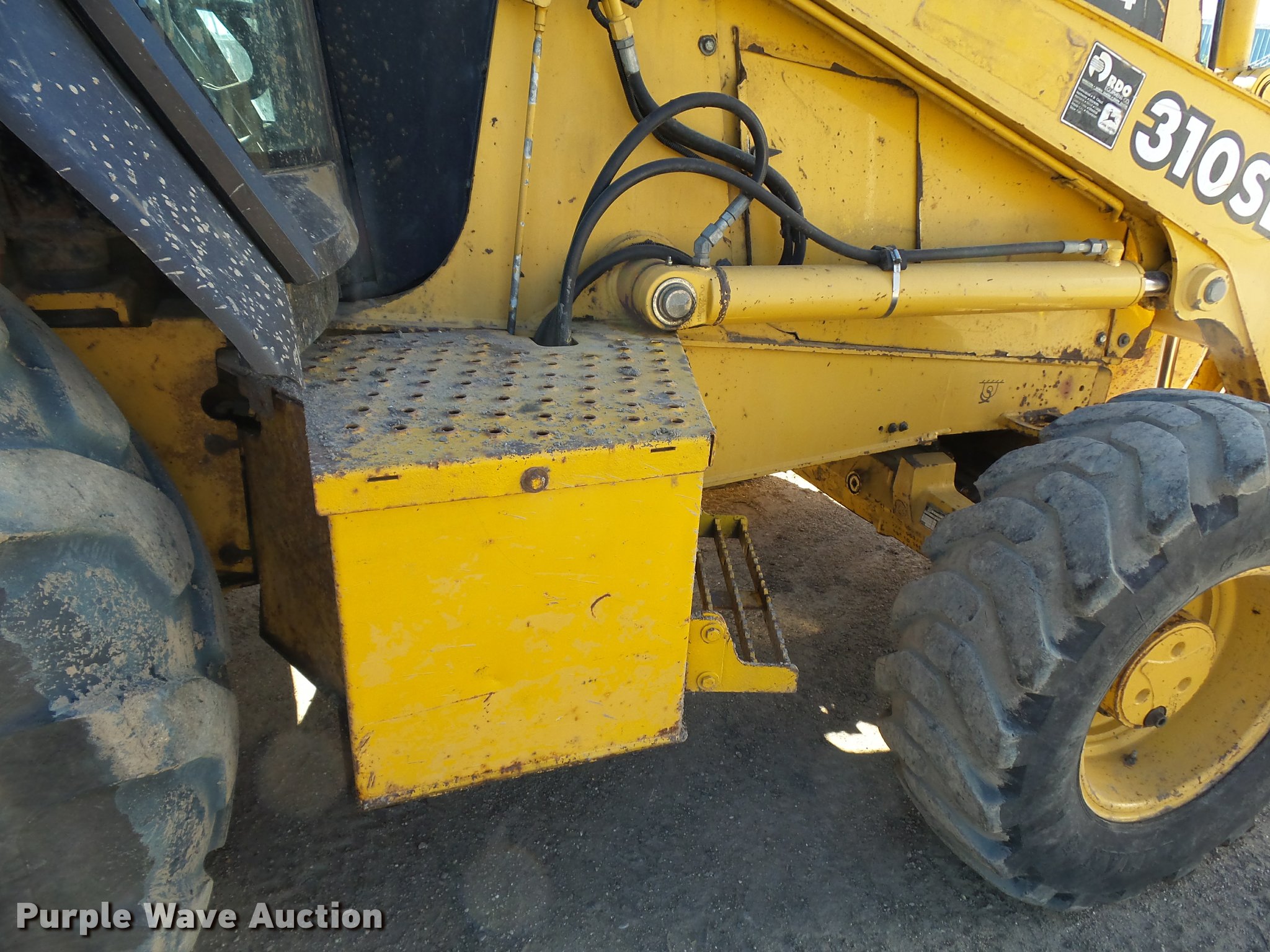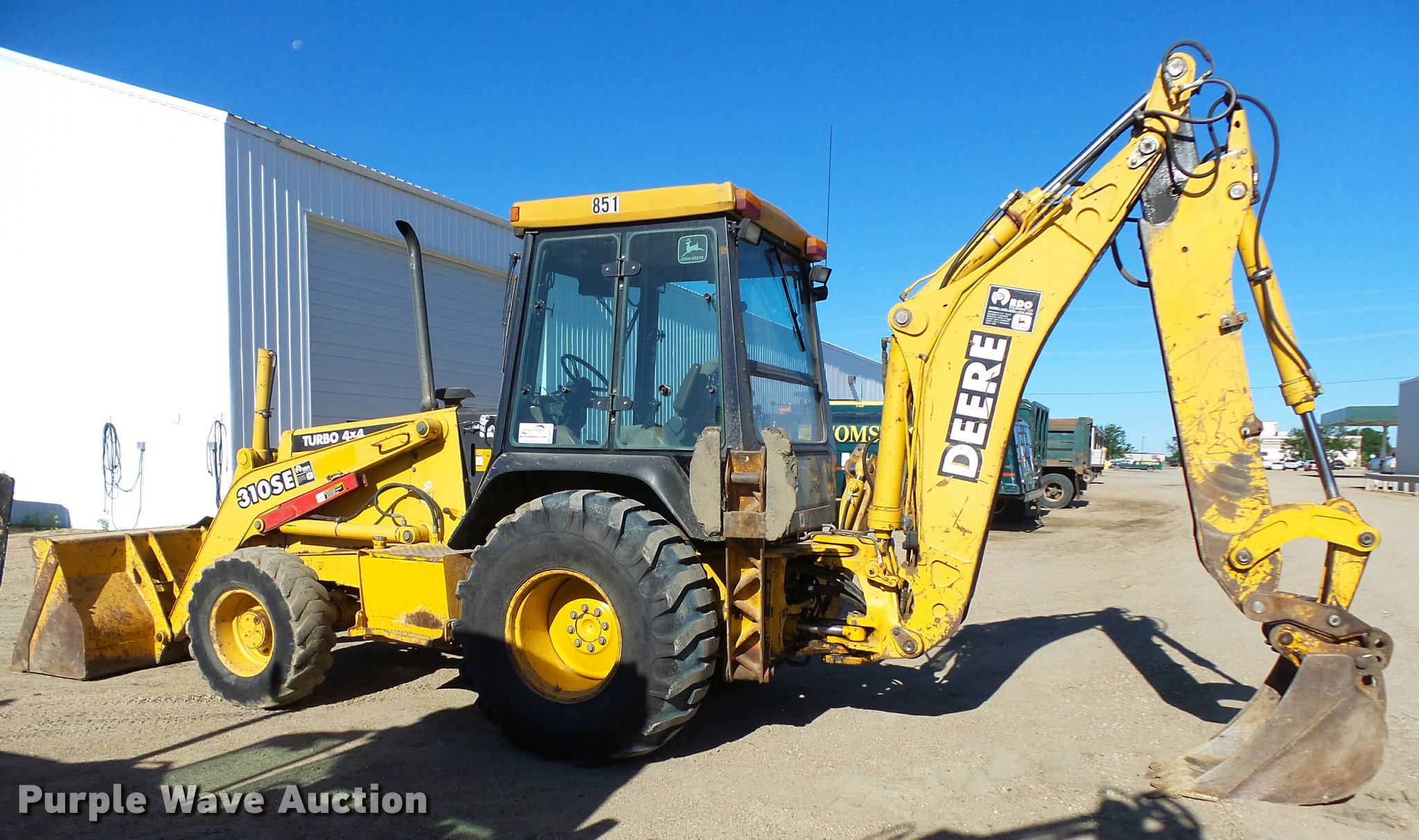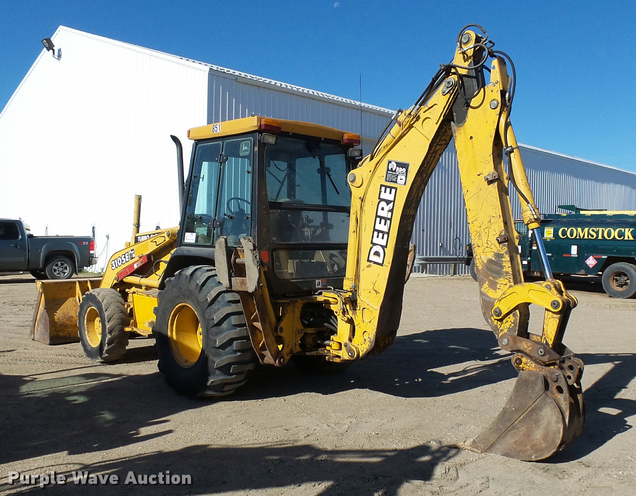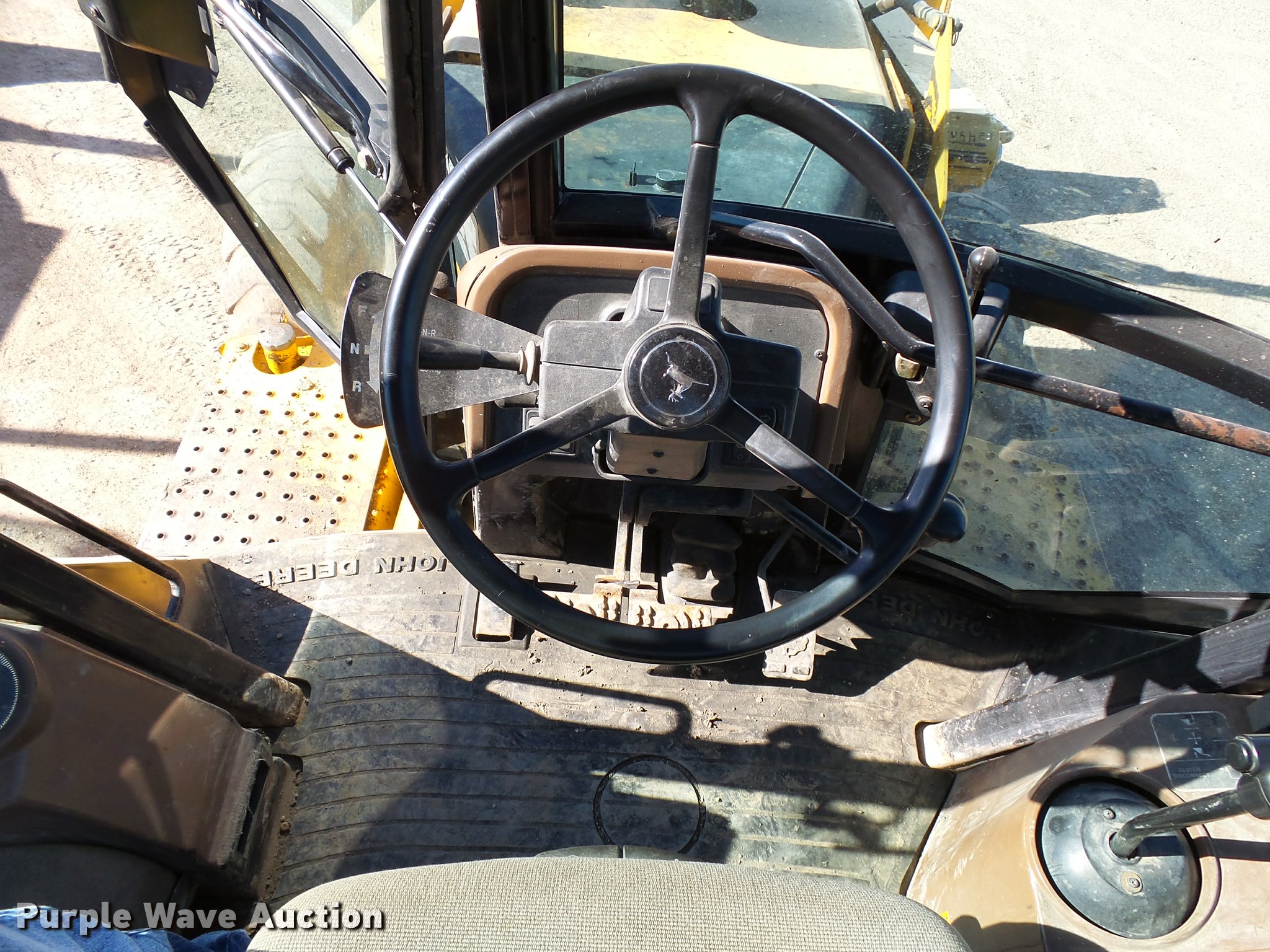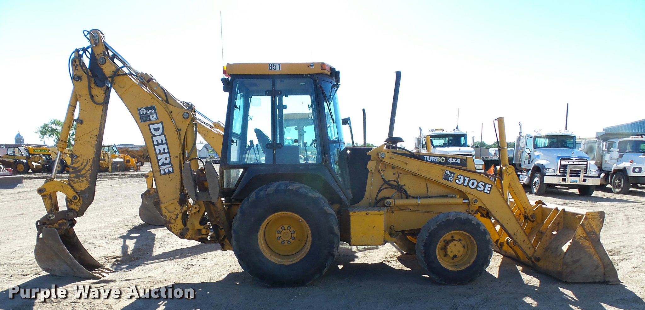 Purple Wave is selling a used Tractor Loader Backhoe in North Dakota. This item is a 1997 John Deere 310SE backhoe with the following: 1,553 hours on meter, John Deere four cylinder turbo diesel engine, Serial T04045TT050, Shuttle shift transmission, 4F-4R gears, Four wheel drive, Differential lock, EROPS, Heat, AM/FM, Tilt steering wheel, Air suspension seat, Wobble stick backhoe controls, Wipers, Front and rear work lights, John Deere AT174225 91"W loader bucket, 1.3 cu. yd. capacity, Bolt-on cutting edge, E-stick, 18"W backhoe bucket, Model 4T18D800, 5.1 cubic foot capacity, (4) teeth, Manual quick coupler, Front counter weights, 12.5/80-18 front tires, 19.5-24 rear tires, Service records available upon request, Serial 834152