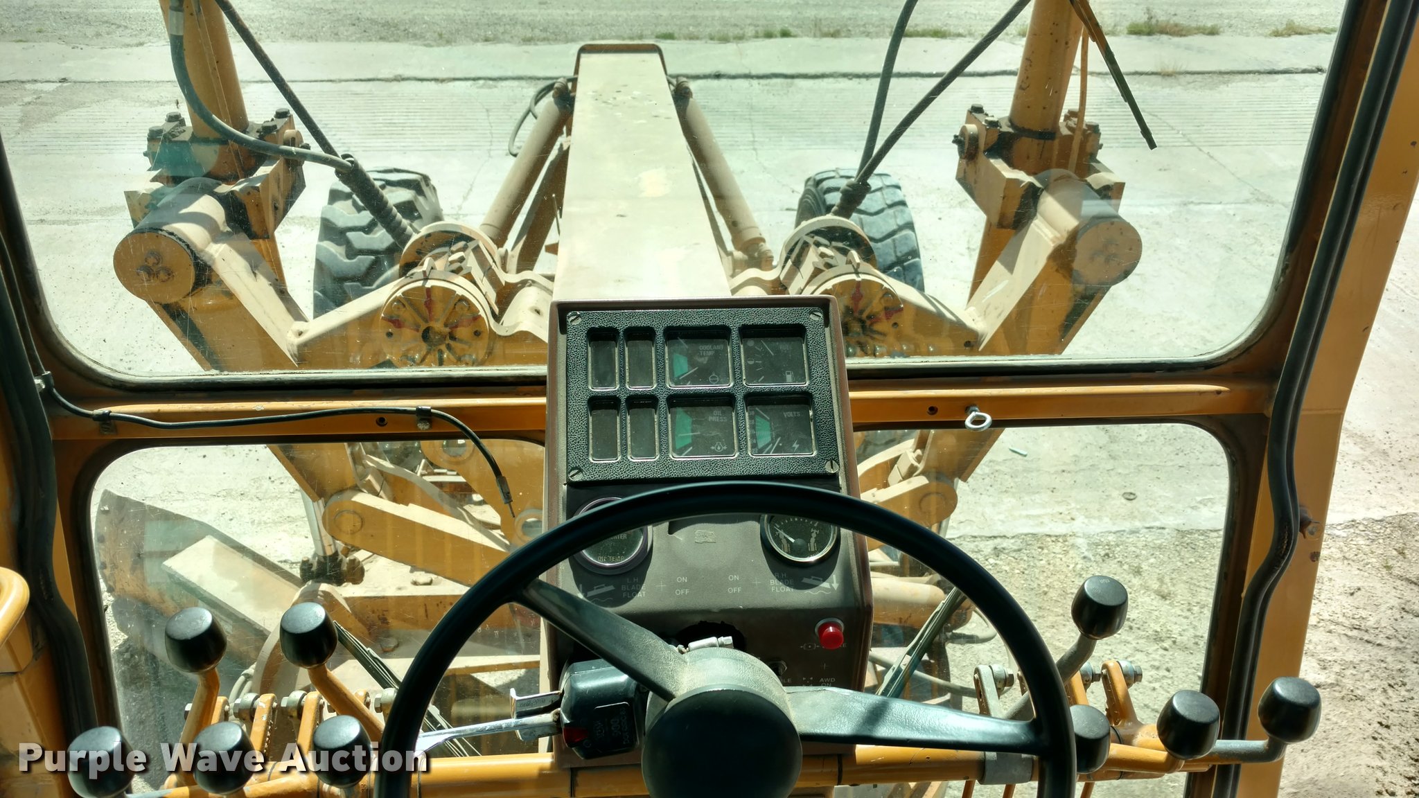 Purple Wave is selling a used Motor Grader in Kansas. This item is a Dresser 830 motor grader with the following: 15,565 hours on meter, Six cylinder diesel engine, Powershift transmission, 6F-3R gears, EROPS, AC and heat, Suspension seat, Front work lights, 14'W moldboard, Mid mounted scarifier, (3) teeth, Serial G380008U200602