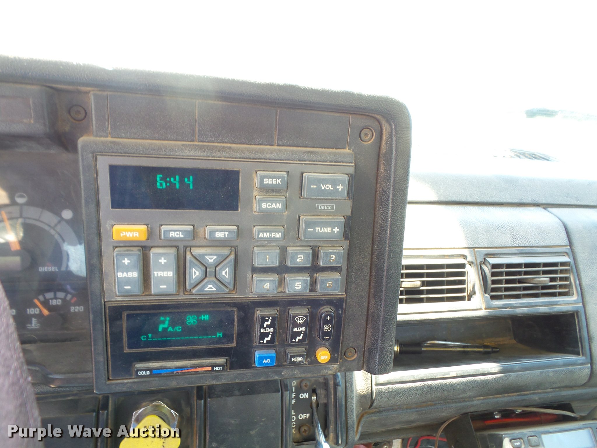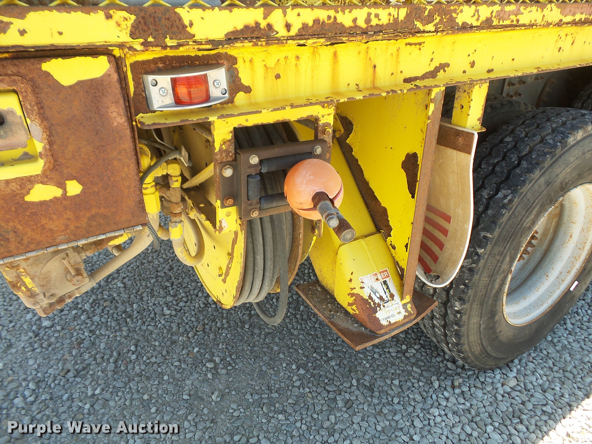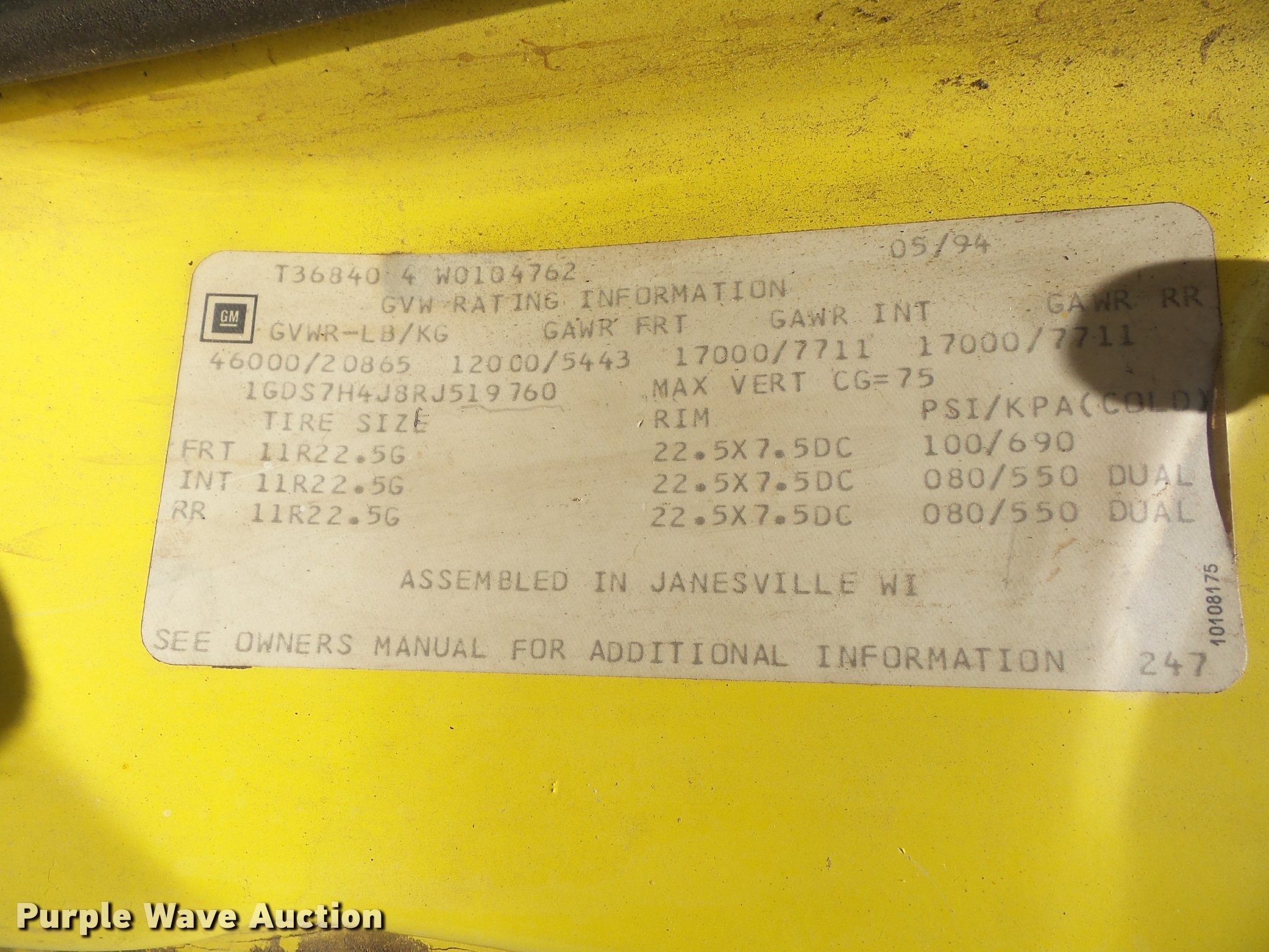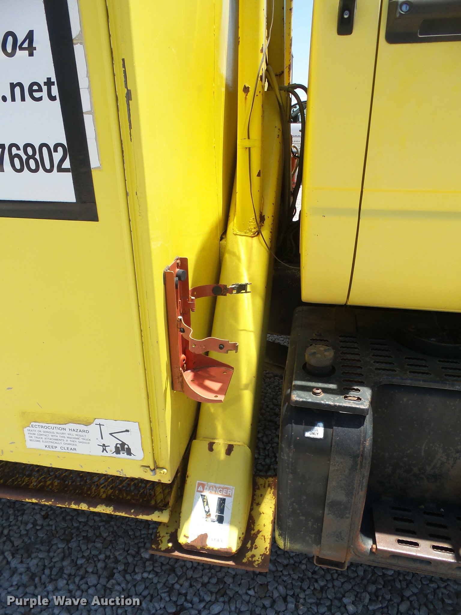 Purple Wave is selling a used Bucket Truck in Kansas. This item is a 1994 GMC TopKick digger derrick truck with the following: 120,243 miles on odometer, 13,025 hours on meter, Caterpillar 3116 6.6L six cylinder turbo diesel engine, 250 HP, Automatic transmission, Tandem axle, AC and heat, AM/FM, Suspension seat, PTO, 16'L service bed, Hydraulic hose reel, Simon Telelect 92-45 digger derrick, Ground boom controls, Boom rotation, Pole guide, Articulating boom, 18" diameter auger, Rope material handler, (4) outriggers, Serial 1834CBB, Dual fuel tanks, Pintle hitch, Air brakes, 11R22.5 tires, GVWR 46,000 lbs
