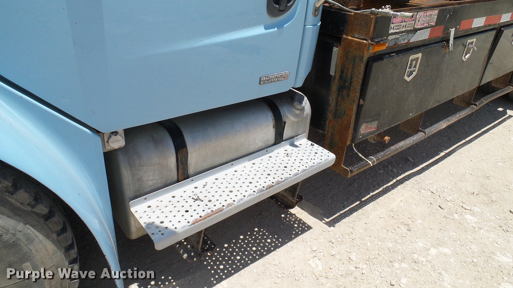 Purple Wave is selling a used Rollback or Tow Truck in Texas. This item is a 2005 Freightliner Business Class M2 winch truck with the following: 160,171 miles on odometer, Caterpillar C7 7.2L L6 turbo diesel engine, Six speed manual transmission, Single axle, AC and heat, Cruise, PTO, Steel flatbed, 16.75'L x 8'W, Storage boxes, Winch, Grill guard, Dual fuel tanks, Receiver hitch, Trailer wiring, 216" wheelbase, Spring suspension, Air brakes, 11R22.5 tires, GVWR 26,000 lbs, Unit# 925