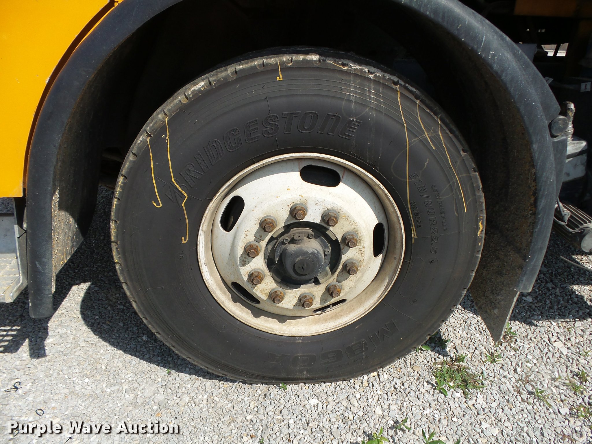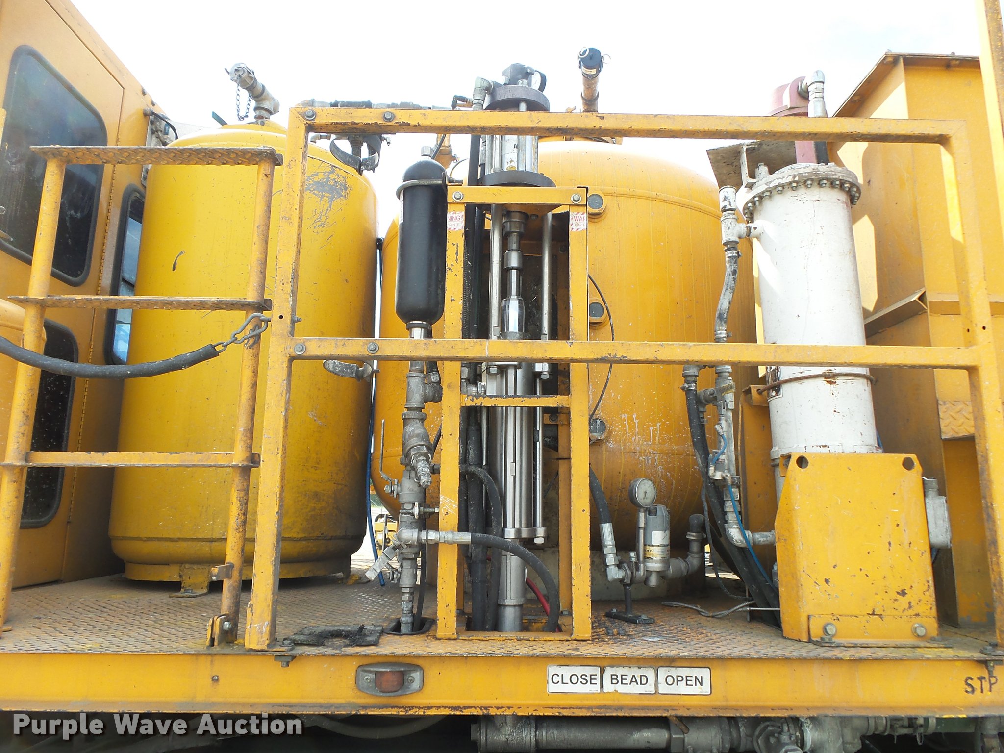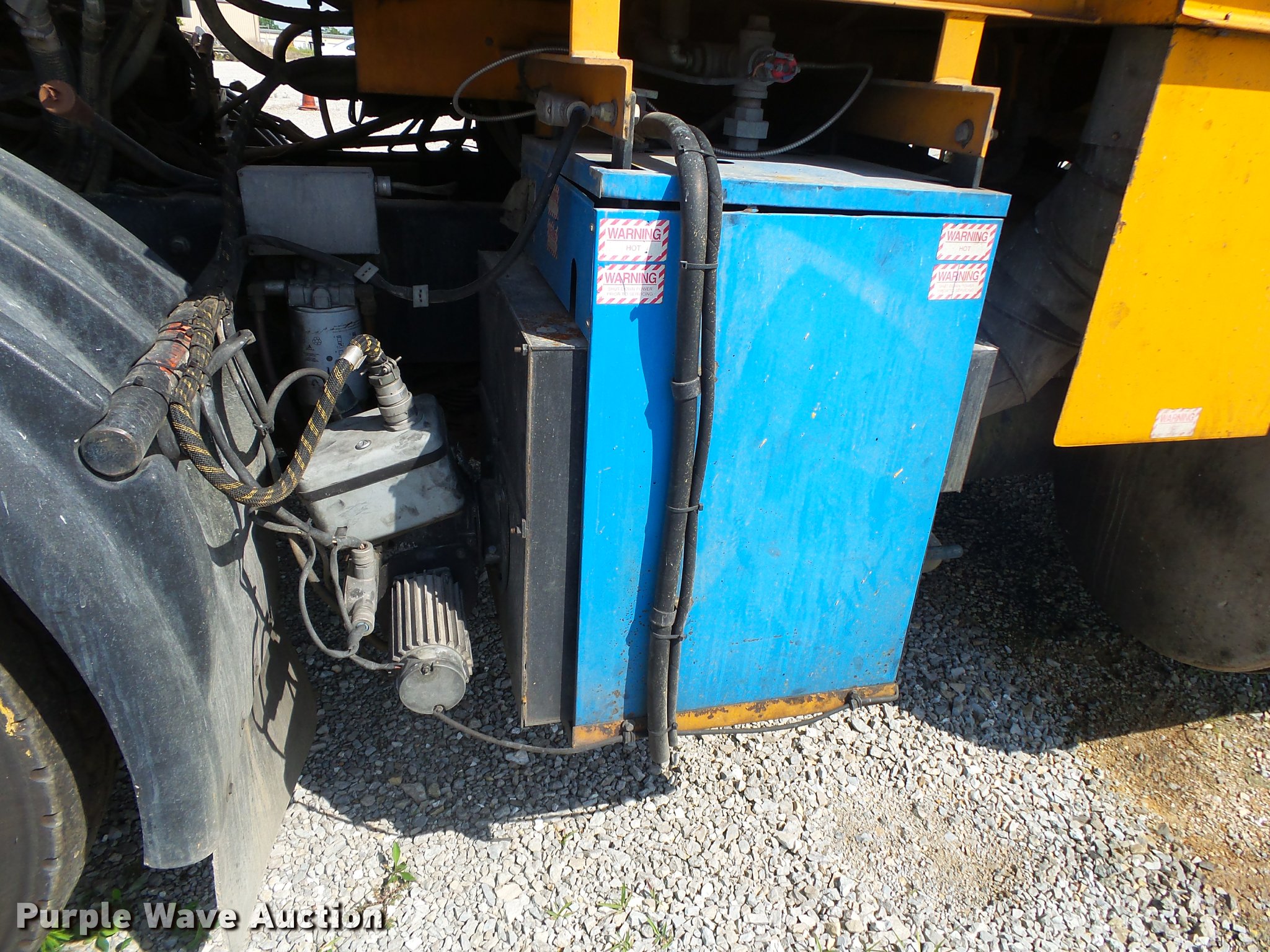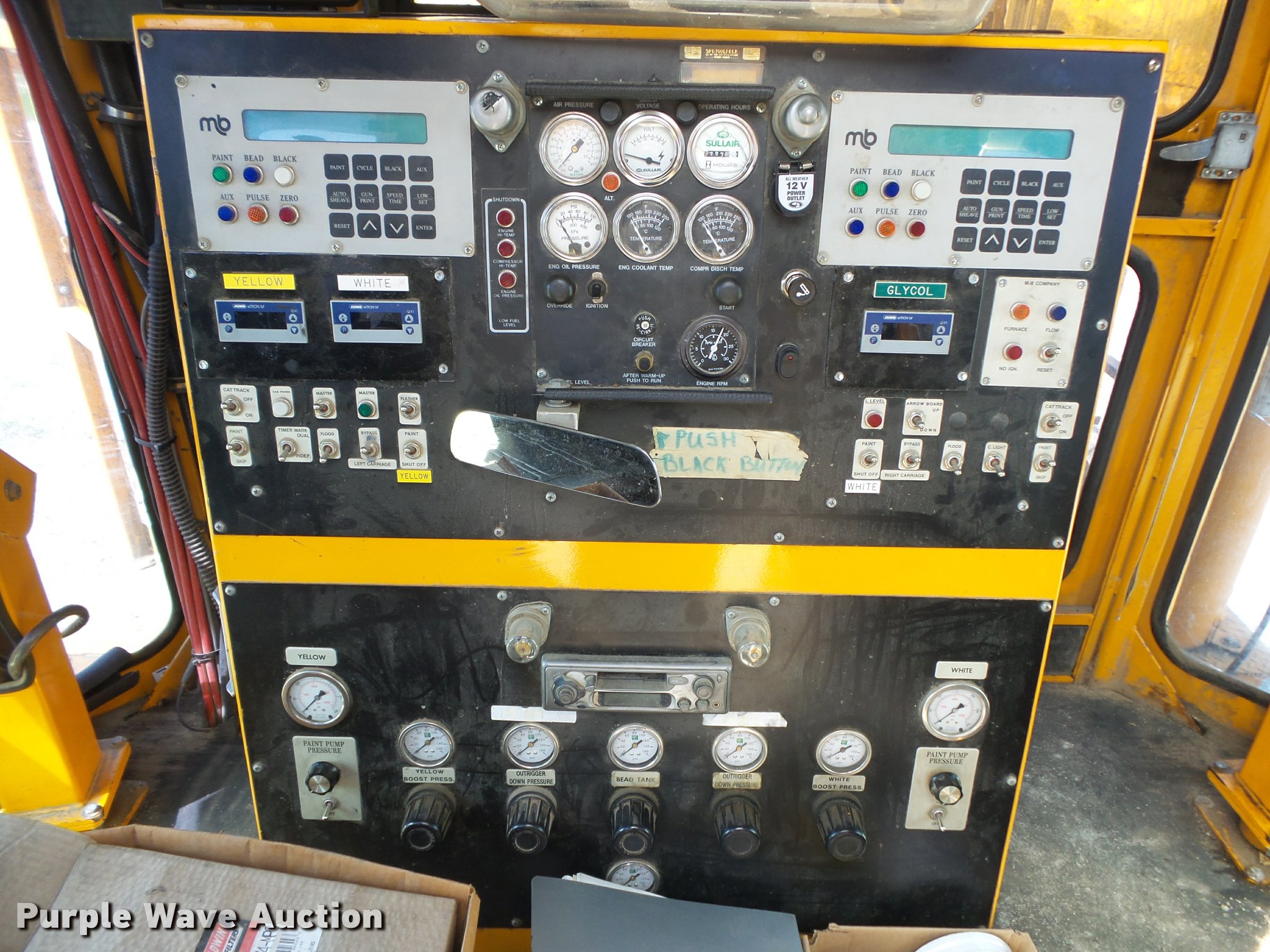 Purple Wave is selling a used Flat Bed Truck in Missouri. This item is a 2003 Sterling Condor paint striper truck with the following: 201,088 miles on odometer, Cummins ISL 8.9L L6 turbo diesel engine, Automatic transmission, Inter-axle differential lock, Tandem axle, AC and heat, AM/FM, Air suspension seat, Dual operator stations, 425 gallon white paint tank, 200 gallon yellow paint tank, 6,000 lbs bead pot, 2,000 lbs bead pot, Solvent tank, Rear traffic control board, Sullair 250 air compressor, John Deere four cylinder diesel engine, Dual fuel tanks, Single rear exhaust stack, Air suspension, Air brakes, 315/80R22.5 tires, GVWR 58,000 lbs, MODOT ID G8869