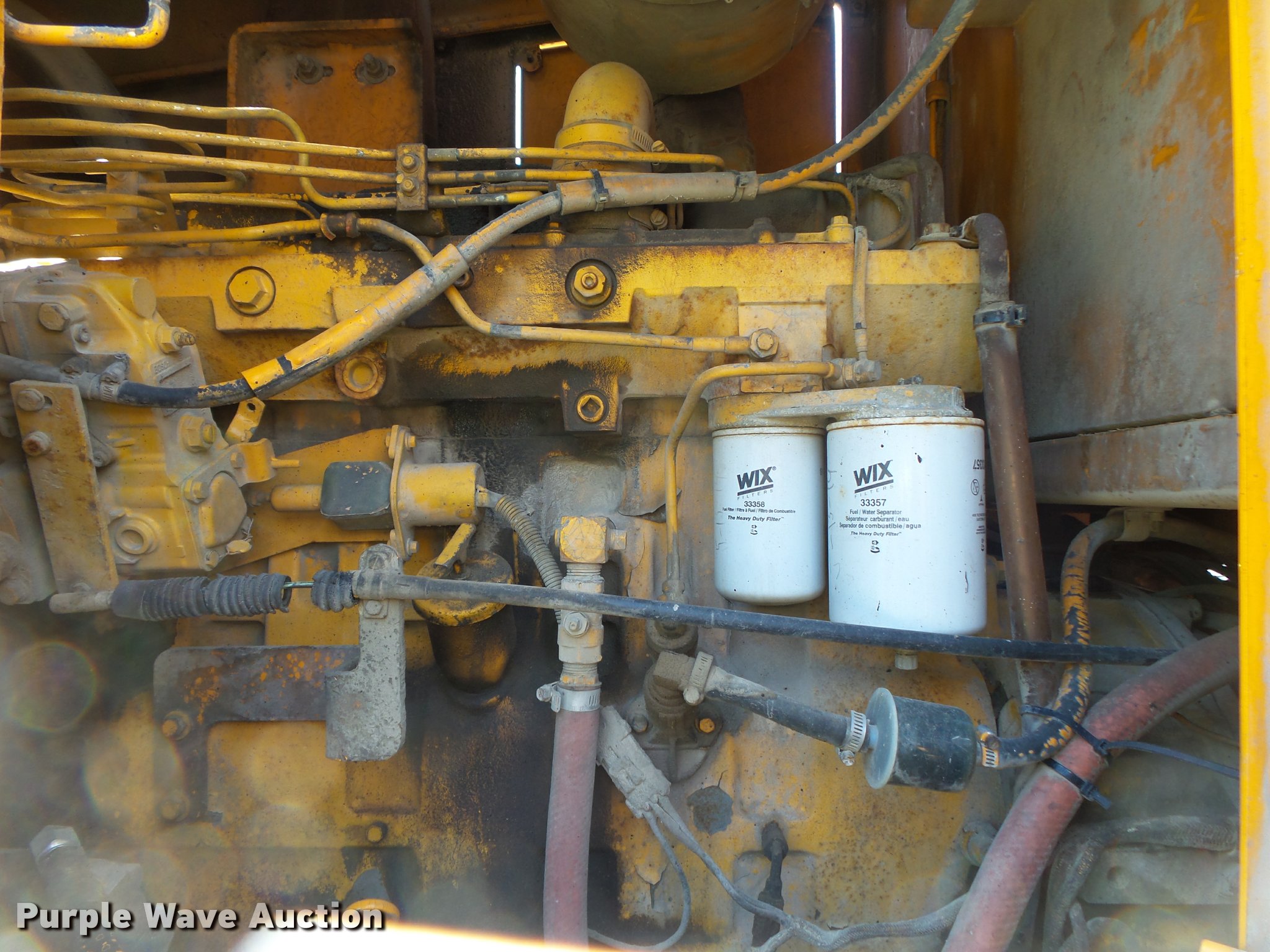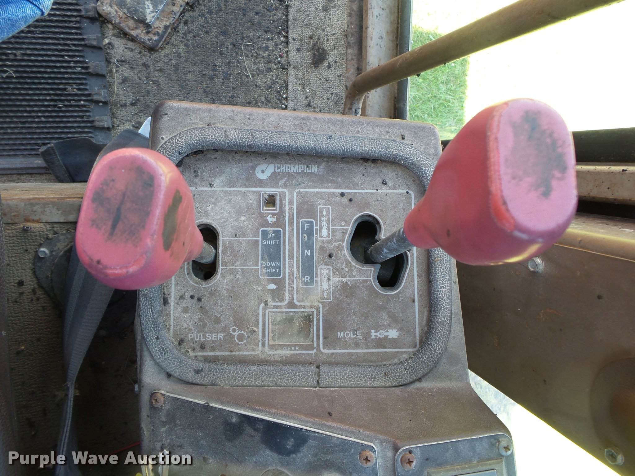 Purple Wave is selling a used Motor Grader in Missouri. This item is a Champion 720A Series III motor grader with the following: 4,569 hours on meter, Six cylinder turbo diesel engine, Powershift transmission, 8F-3R gears, Differential lock, EROPS, Suspension seat, Nine control valves, Front and rear work lights, 14'W moldboard, Right blade extension, Tip control, Side shift, Champion front mounted lift group, 14.00-24 tires, Moldboard cutting edge damaged, Engine oil leaks, Serial 720A-187-1515-23306, MODOT ID G7934