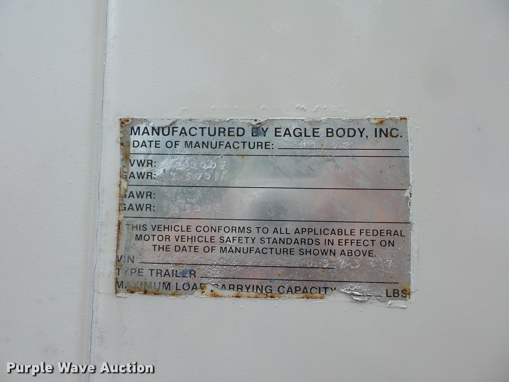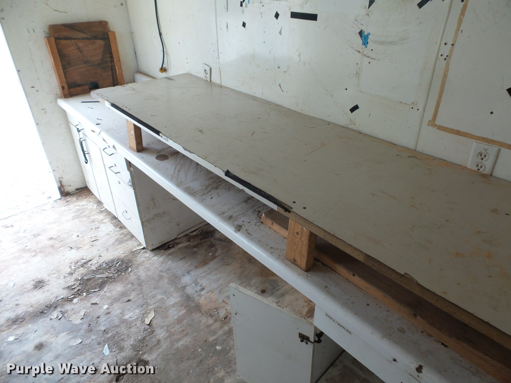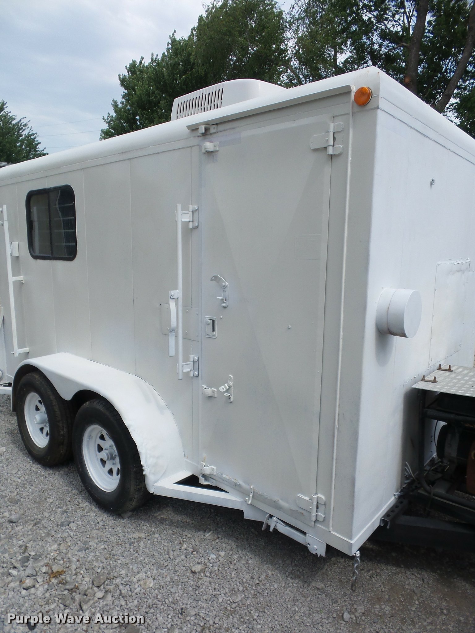 Purple Wave is selling a used Manufactured Home or Office in Missouri. This item is a 1993 Eagle office trailer with the following: 12'L x 6.5'W x 6.5'H, AC, Honeywell generator, Work bench, Shelving, Jack stand, 2 5/16" ball hitch, Tandem axle, 225/75R15 tires