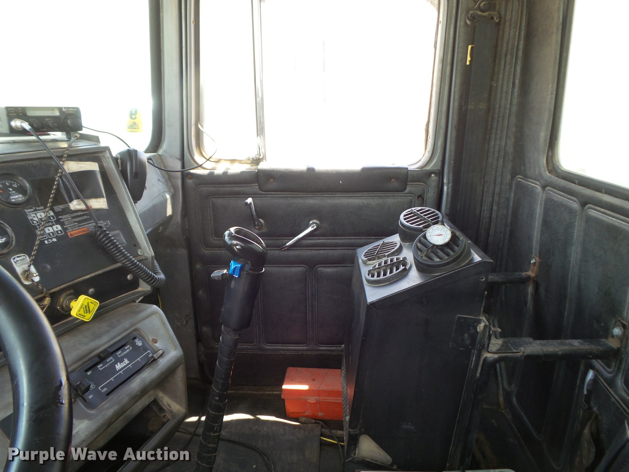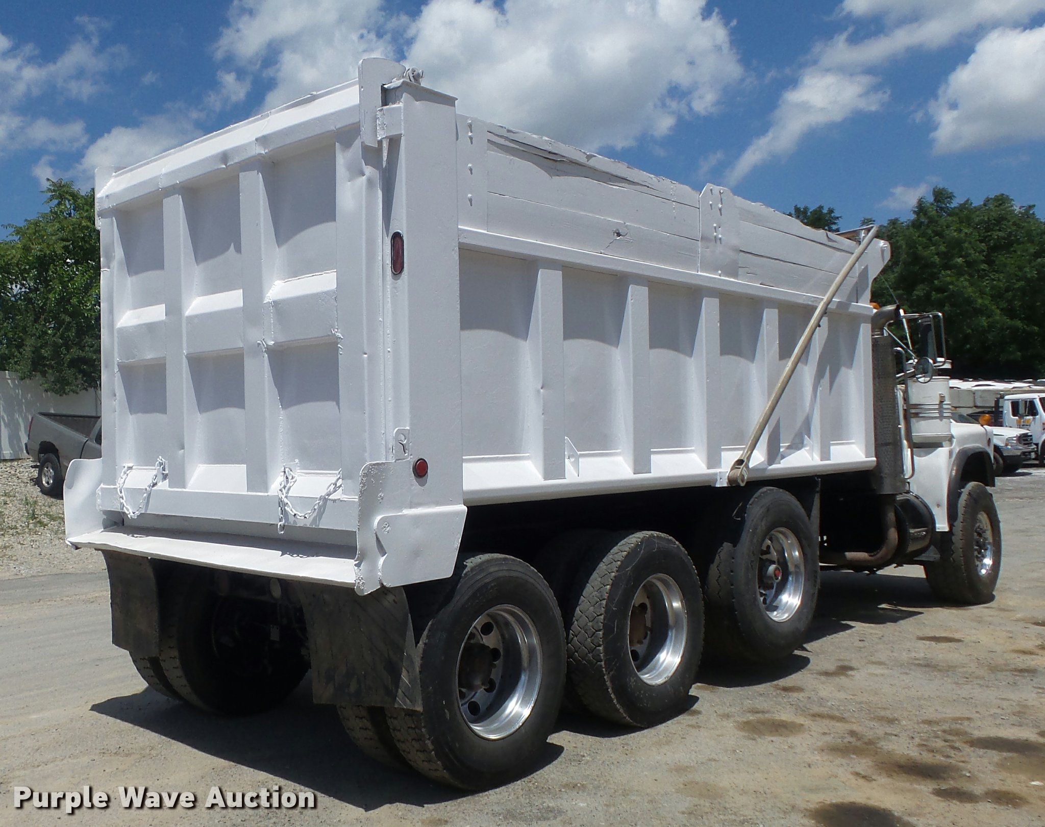 Purple Wave is selling a used Construction Dump Truck in Missouri. This item is a 2000 Mack RB688S dump truck with the following: 619,206 miles on odometer, 27,222 hours on meter, Mack E7 12.0L L6 turbo diesel engine, 400 HP, Serial 9J0938, Eaton Fuller eight speed manual transmission, Lo and Lo-Lo gears, Tandem axle, Inter-axle differential lock, AC and heat, Tilt, Cruise, AM/FM/cassette, CB radio, Air suspension seat, PTO, Backup alarm, Bibean steel dump bed, 17'L, 46" side height, 20" side board height, Single ram hoist, Air operated end gate, Roll tarp, Dual fuel tanks, Double frame, Steerable axle, Camelback suspension, Air brakes, Engine brake, Aluminum wheels, Steel inner wheels, 425/65R22.5 front tires, 11R22.5 rear tires