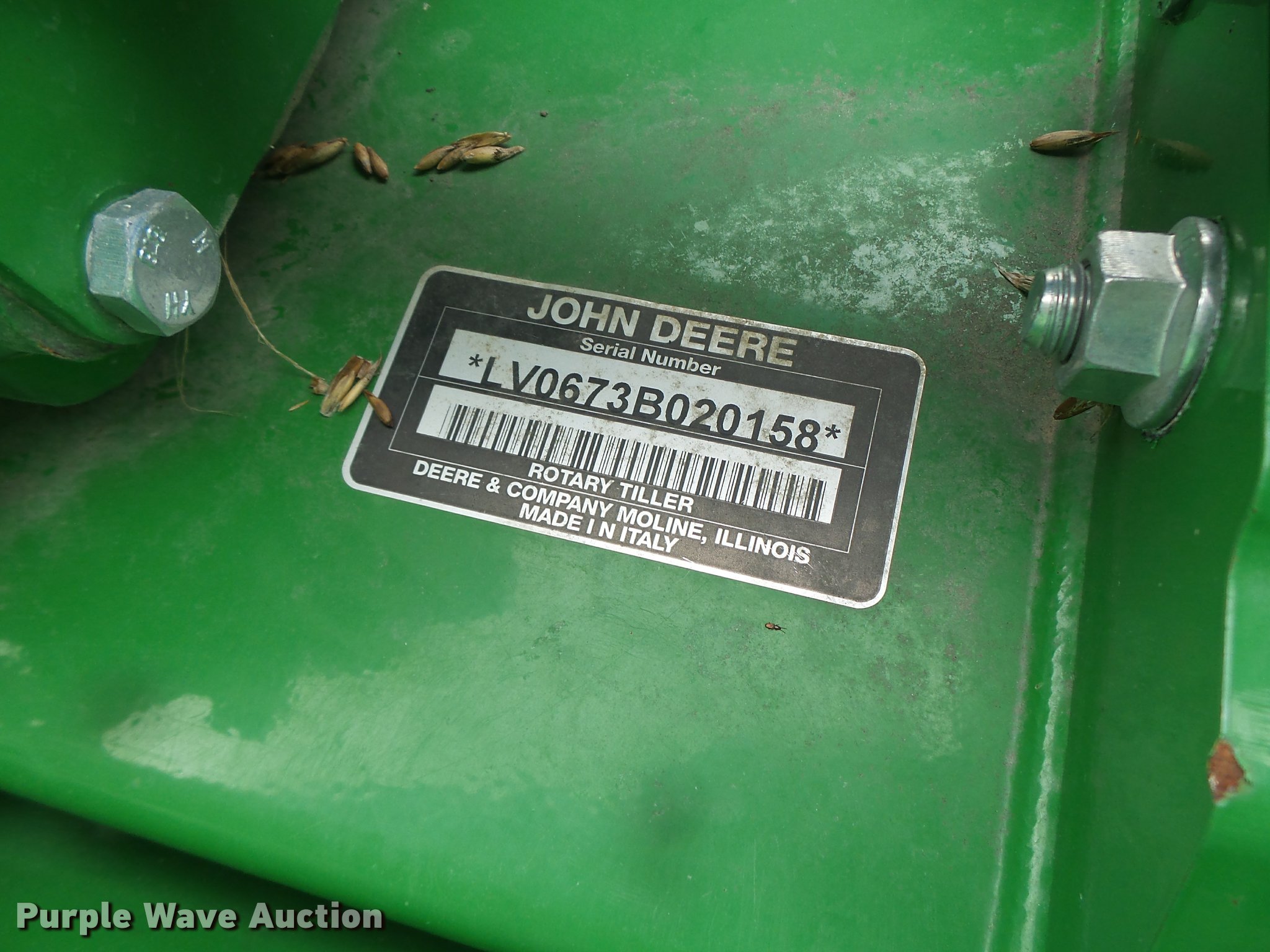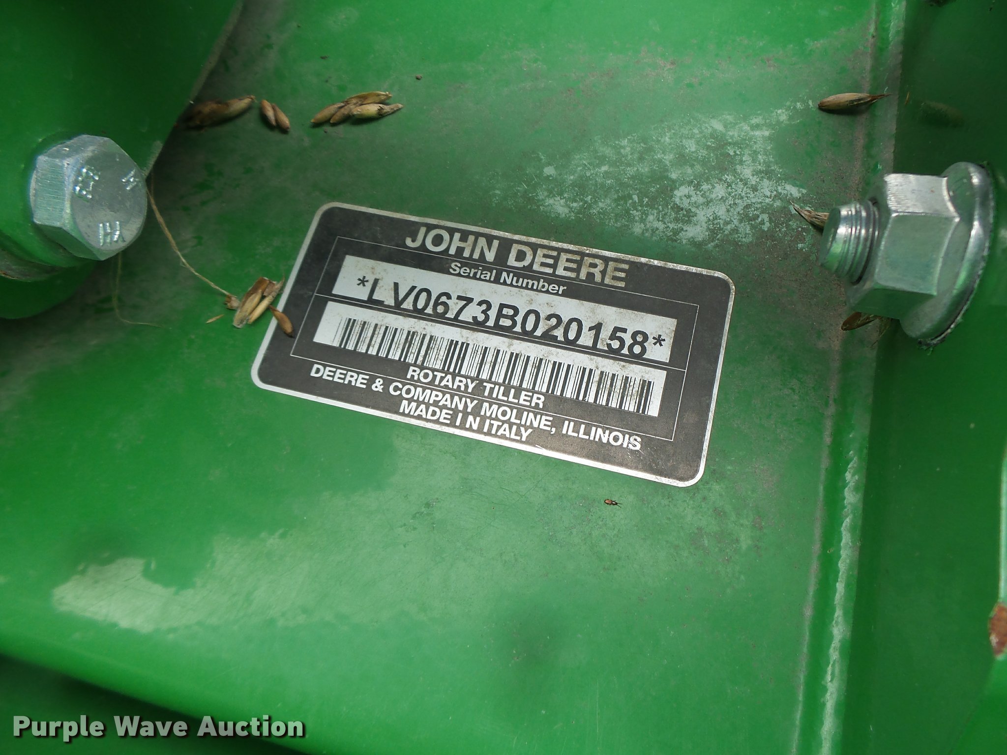 Purple Wave is selling a used Rotary Tillage in Missouri. This item is a John Deere 673 tiller with the following: 6'W, PTO driven, Three point, Serial LV0673B020158