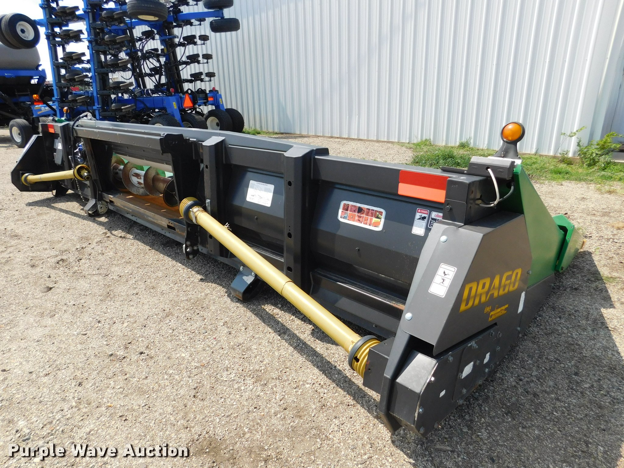 Purple Wave is selling a used Corn or Row Head in Kansas. This item is a 2010 Drago N8 corn head with the following: 20'W, Eight rows, 30" row spacing, Head sight control, Single point copuler, 1000 PTO, Dual drivelines, 2,440 kg weight, Set up for John Deere combine, Serial 250510, Unit# 176186