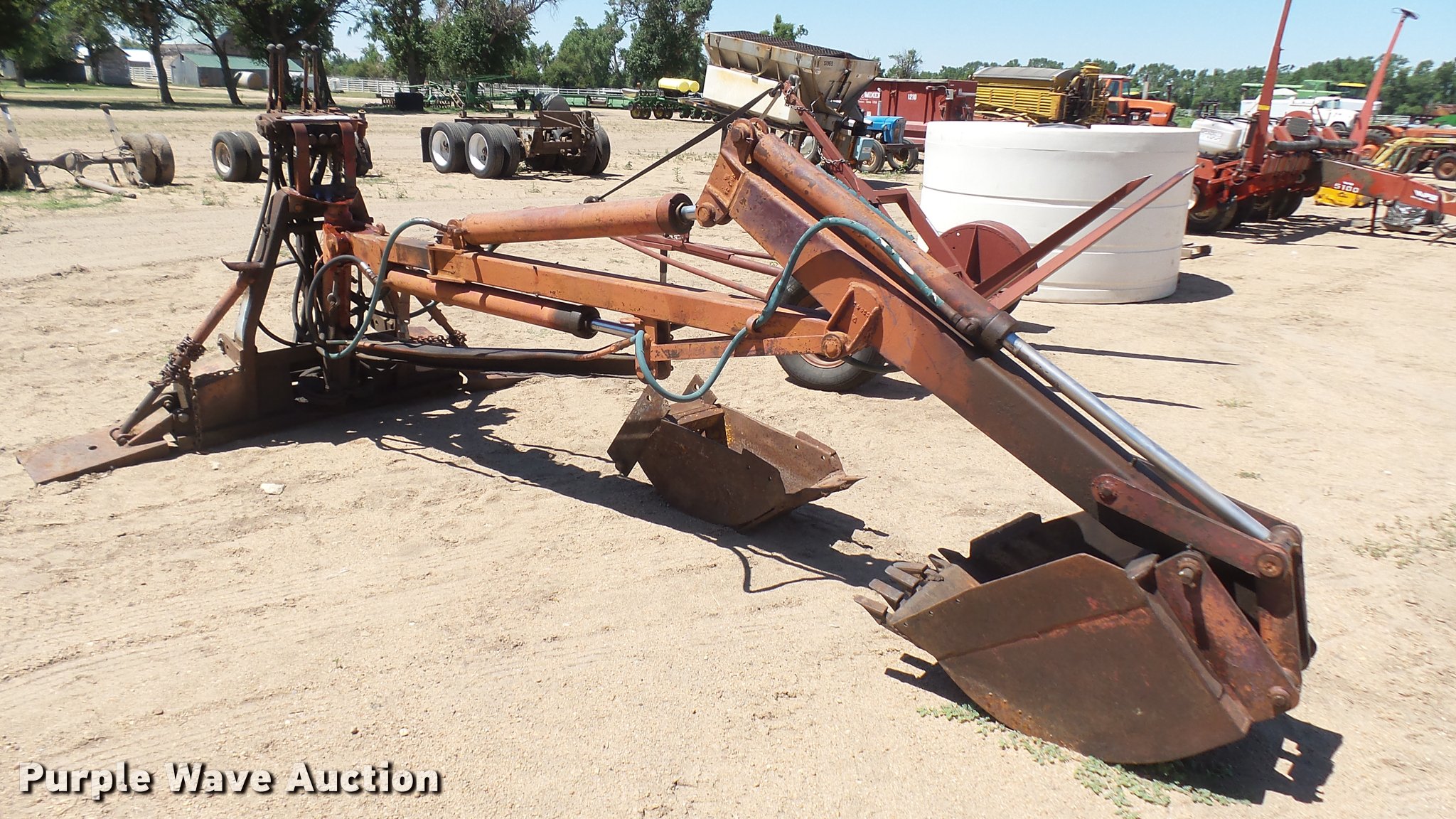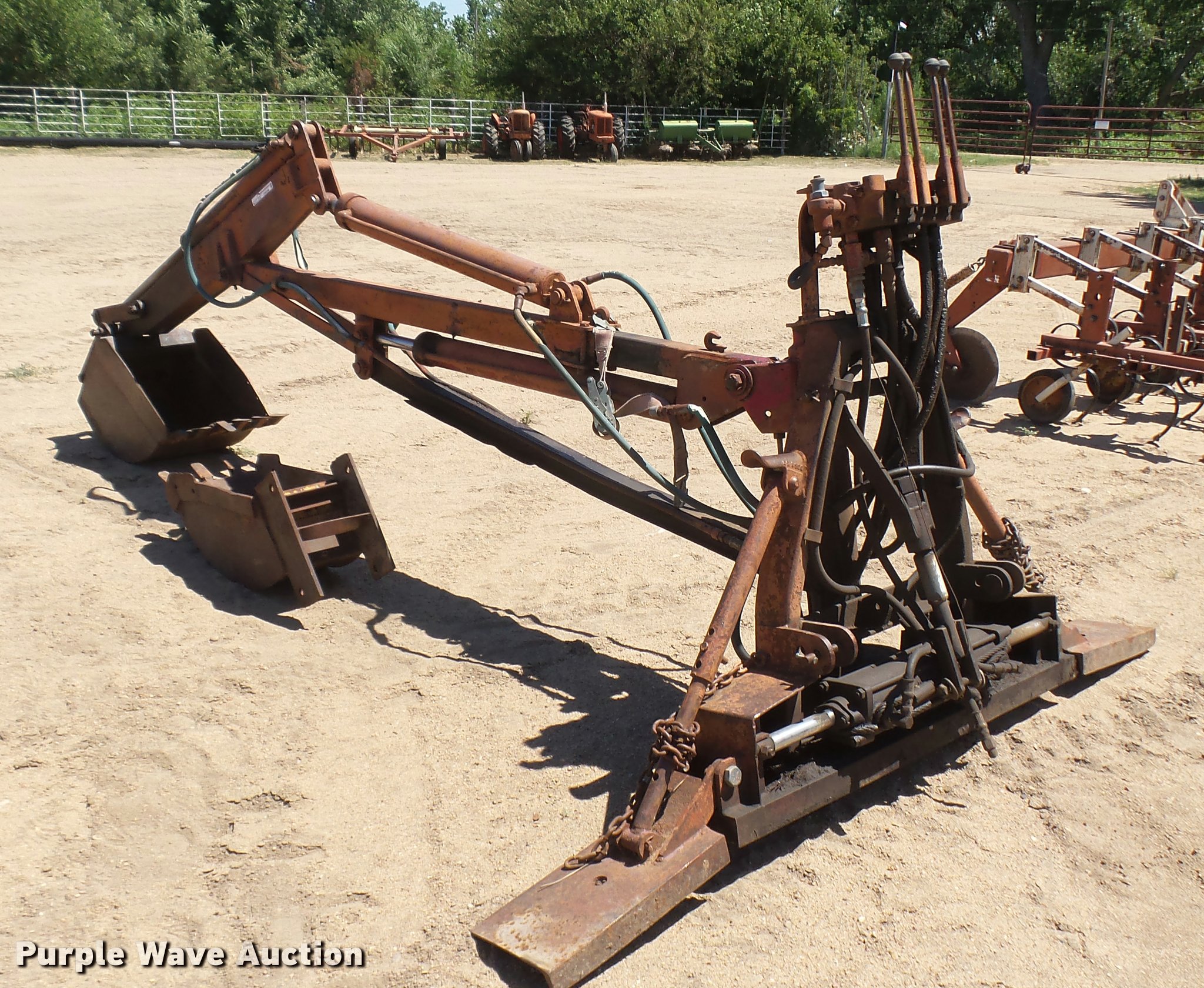 Purple Wave is selling a used Ag Equip. Other in Kansas. This item is a Henry backhoe attachment with the following: Stick controls, 5' stick length, Hydraulics, 20" bucket, 13" bucket