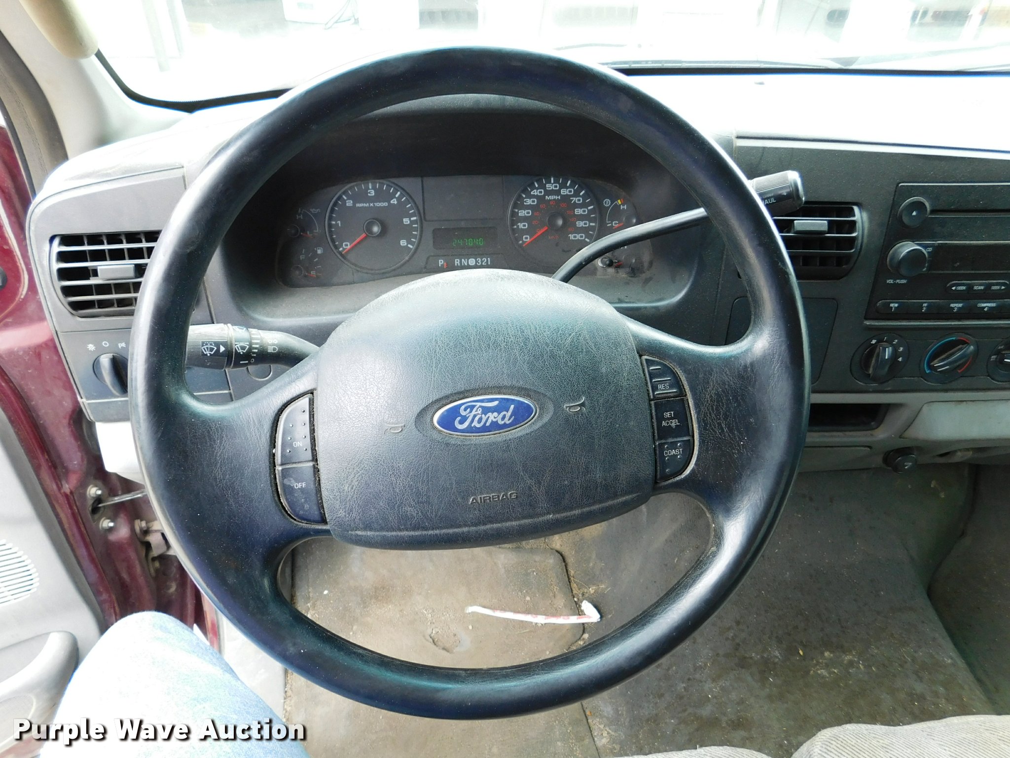 Purple Wave is selling a used 3/4 or 1 Ton Pickup or Van in Kansas. This item is a 2006 Ford F250 Super Duty SuperCab pickup truck with the following: 247,040 miles on odometer, Miles may vary, still in use, 5.4L V8 SOHC 16V gas engine, Automatic transmission, AC and heat, Tilt, Cruise, AM/FM/CD, Power windows, locks, and mirrors, Cloth interior, Front tow hooks, Running boards, Long bed, Ladder rack, 12'L x 66.5"W x 32.5"H, Receiver hitch, Pintle hitch, Trailer wiring, 265/70R17 tires