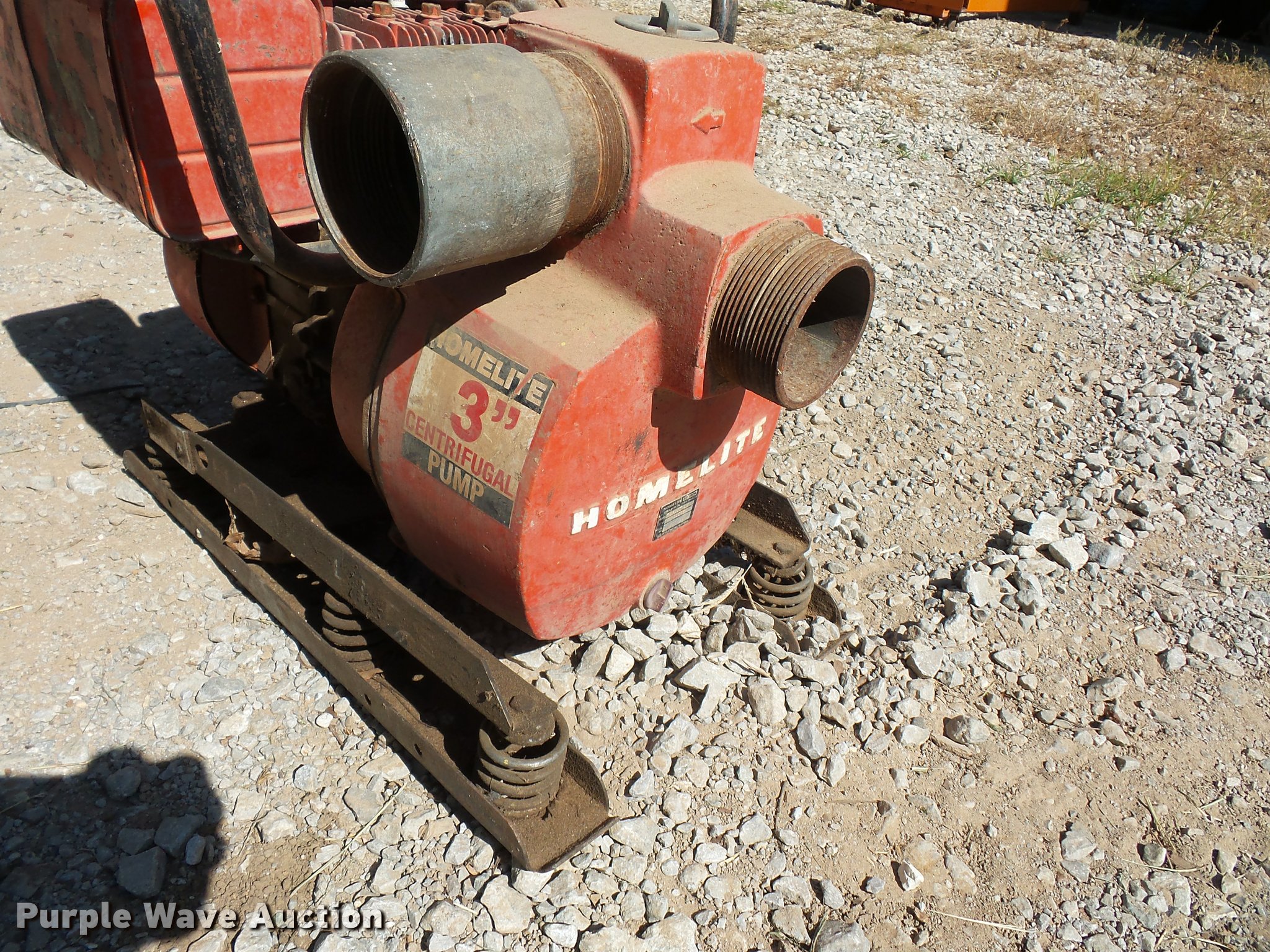 Purple Wave is selling a used Pump in Missouri. This item is a Homelite water pump with the following: Briggs & Stratton gas engine, 3"