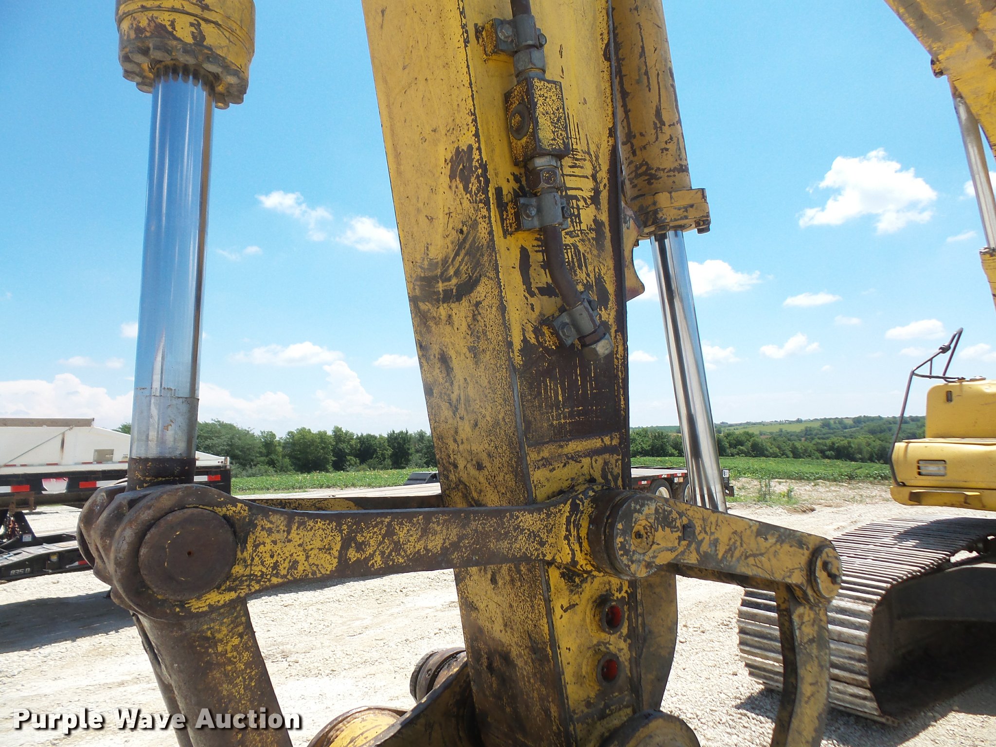 Purple Wave is selling a used Hydraulic Excavator in Kansas. This item is a 1997 Komatsu PC200LC-6LE excavator with the following: 12,433 hours on meter, Komatsu 5.9L six cylinder turbo diesel engine, 133 HP, Hydrostatic transmission, EROPS, Heat, AM/FM, Suspension seat, Standard boom, 9'7" stick length, 36"W bucket, (5) weld-on teeth, Hydraulic thumb, Two way auxiliary hydraulics, 31.75"W steel triple grouser track pads, Non-operational radio, Serial A83447