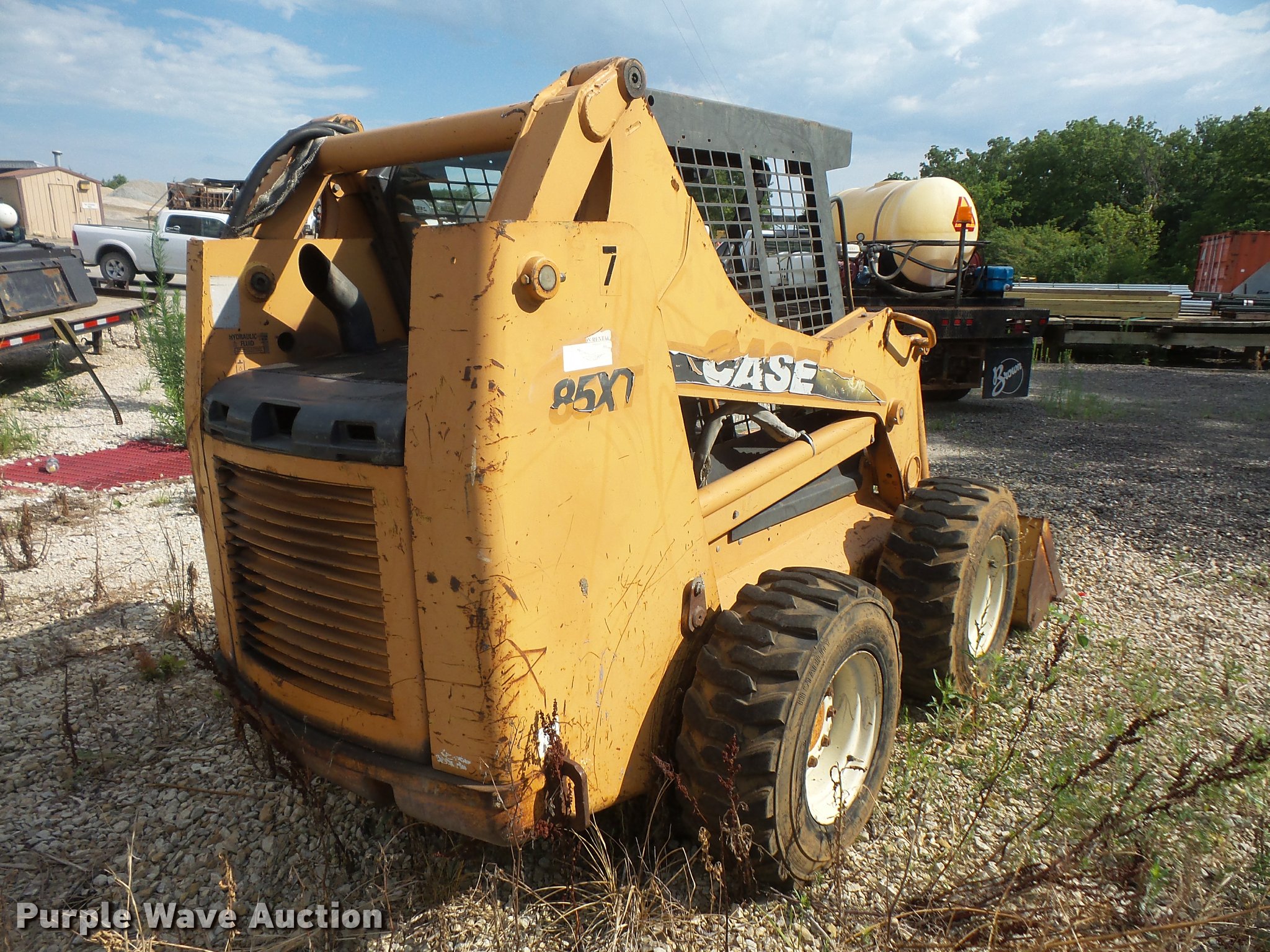 Purple Wave is selling a used Skid Steer Loader in Kansas. This item is a 2002 Case 85XT skid steer with the following: 1,044 hours on meter, Case four cylinder diesel engine, Hydrostatic transmission, Open station/canopy, Joystick controls, Spring suspension seat, 72"W bucket, Tooth bar, Manual quick coupler, Auxiliary hydraulics, 12-16.5 tires, Safety switch issue, operational with a jump wire, Serial JAF0352488