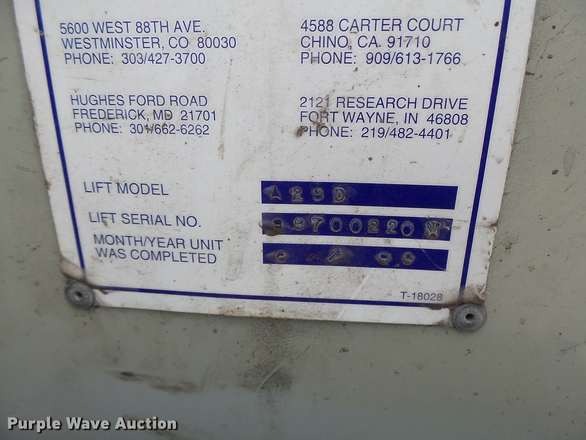 Purple Wave is selling a used Bucket Truck in Missouri. This item is a 1999 Ford F350 Super Duty bucket truck with the following: 73,118 miles on odometer, 6.8L V10 SOHC 20V gas engine, Automatic transmission, Single axle, AC and heat, AM/FM, Suspension seat, Service bed, Shelving, MTI A28D boom, Tecumseh gas engine, 350 lbs maximum lift capacity, 28' maximum lift height, Man basket, Platform controls, Serial 99700220, Single fuel tank, Receiver hitch, Spring suspension, Hydraulic brakes, 235/85R16 tires