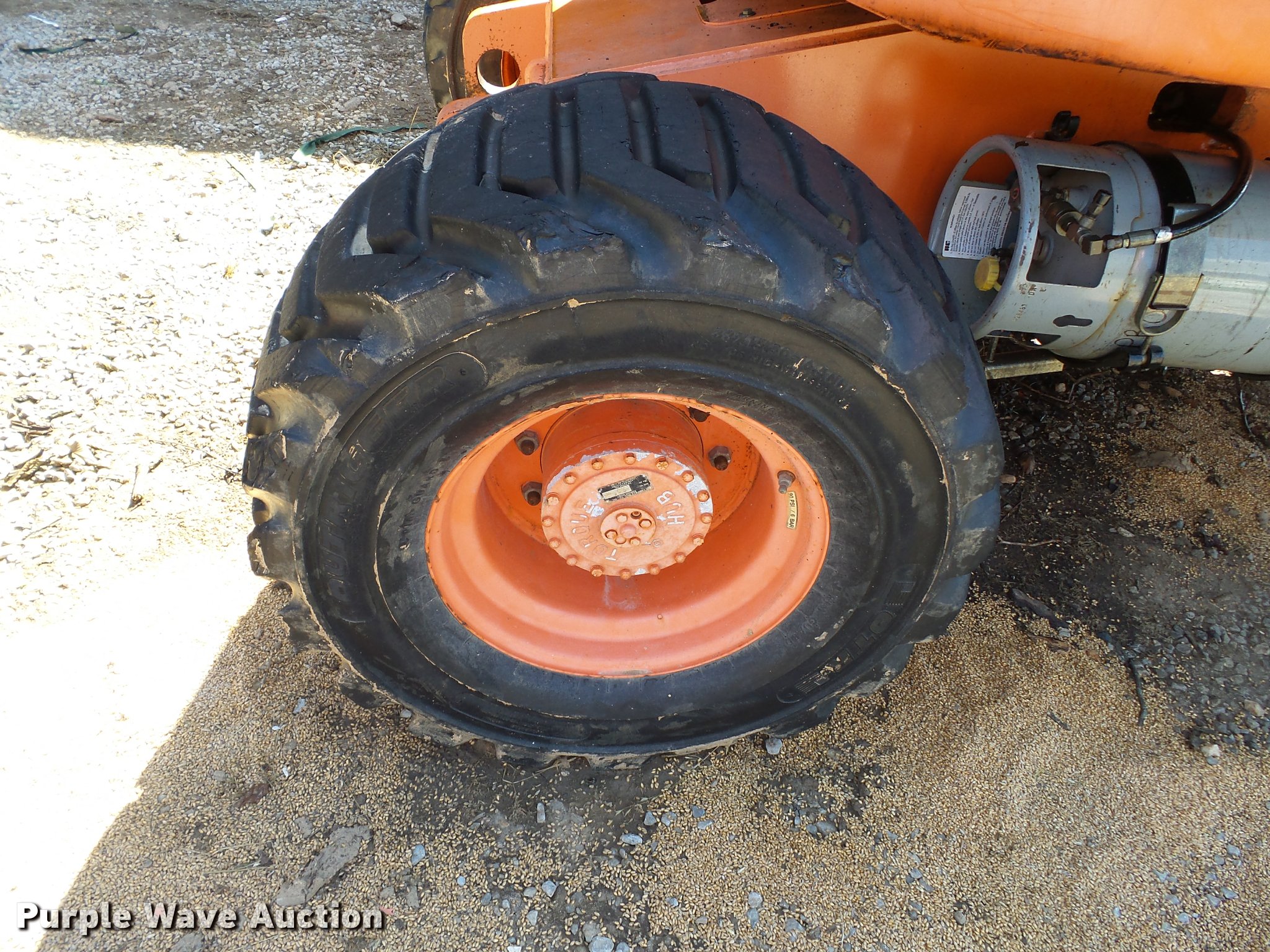 Purple Wave is selling a used Boom Lift in Missouri. This item is a 2000 JLG 450AJ boom lift with the following: 2,588 hours on meter, Hours may vary, unit is still in use, Ford 2.3L four cylinder dual fuel engine, Propane and gas capable, 12V, 500 lbs maximum lift capacity, 24' maximum reach height, 45' maximum lift height, 6'L x 12'W platform, Platform and ground control, 15.5 x 33-16.5 tires, Serial 1326111030005357