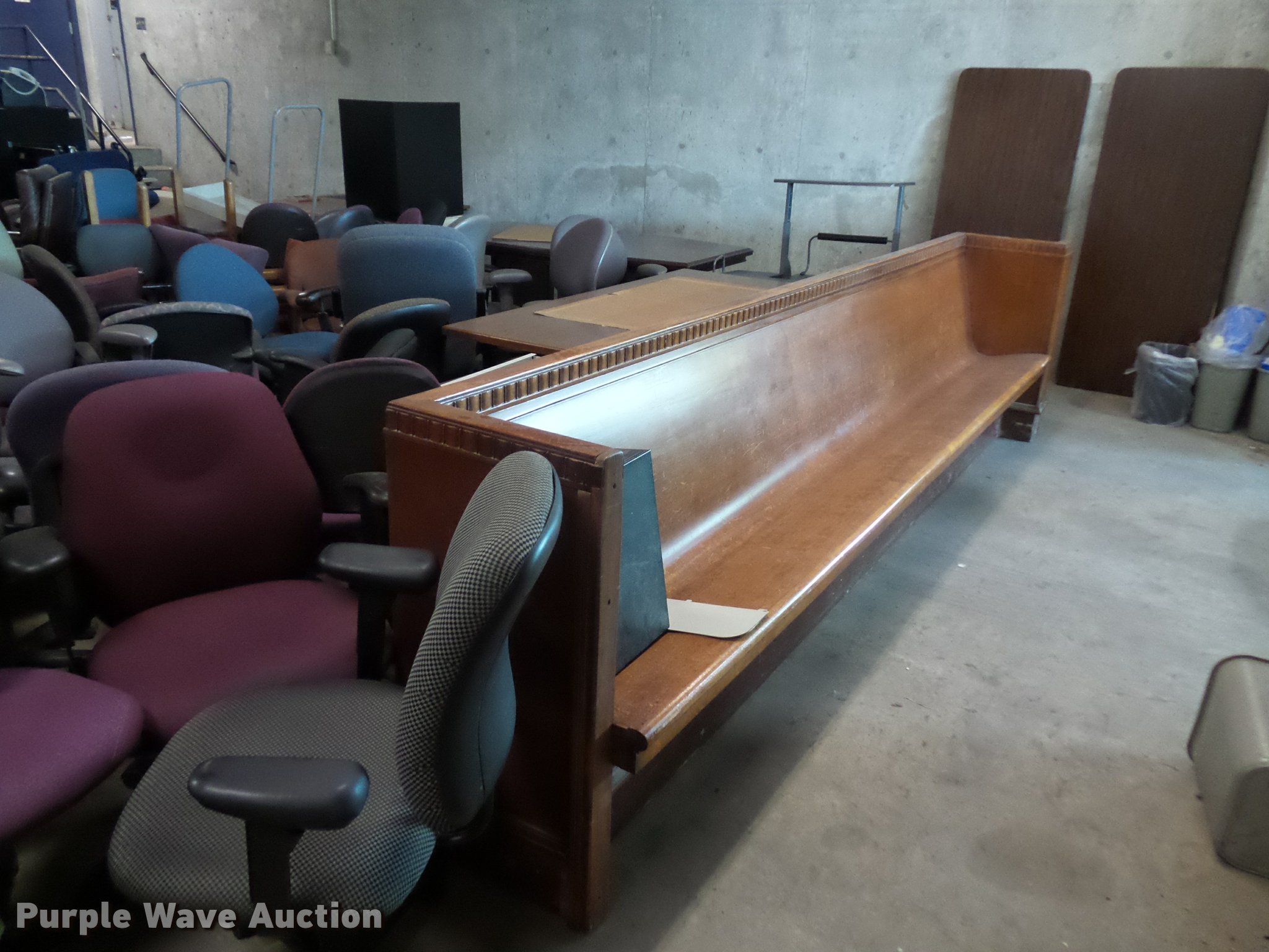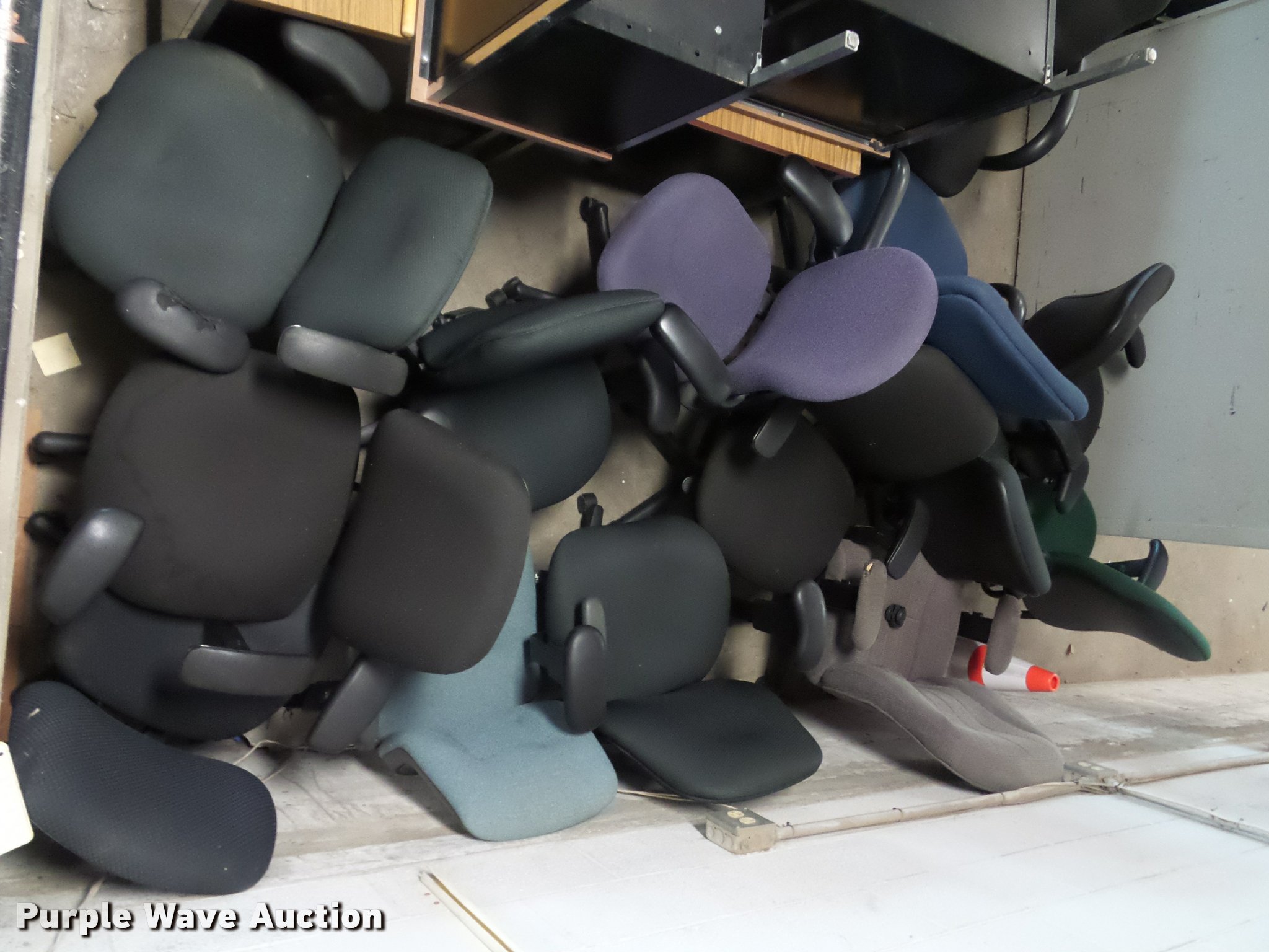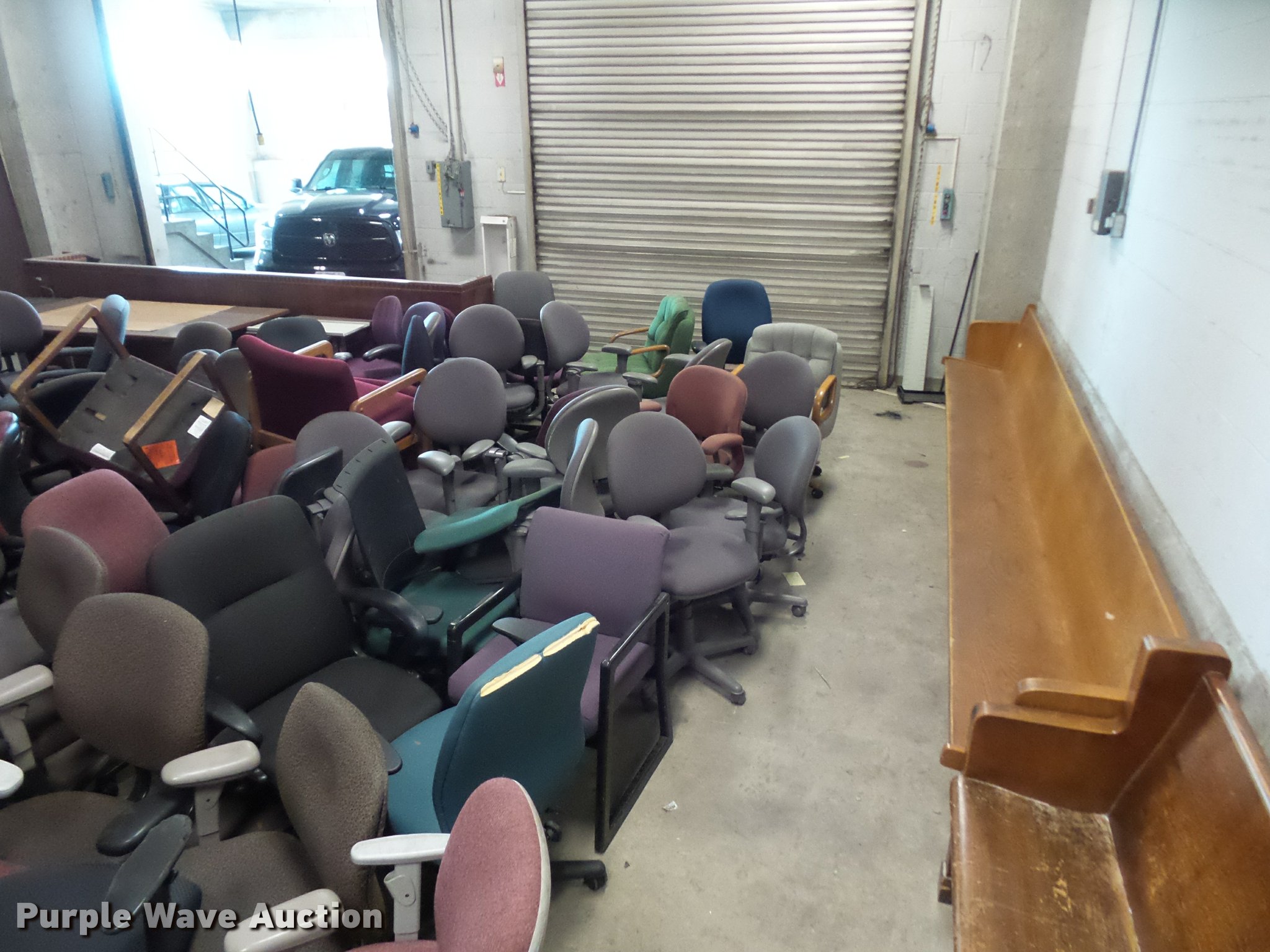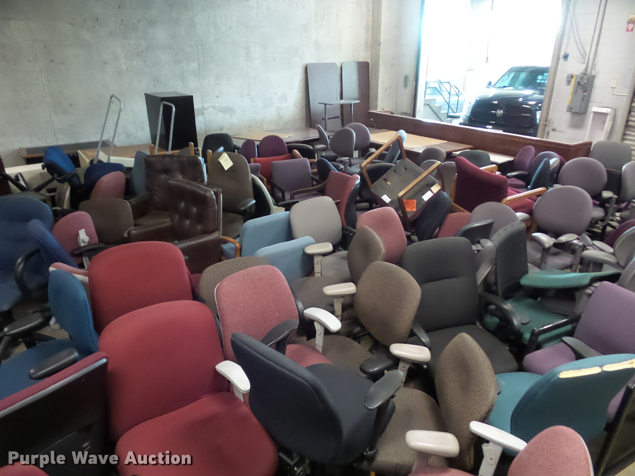 Purple Wave is selling a used Furniture in Missouri. This item is a Office furniture with the following: Benches, Approx. 75 chairs, Desks, File cabinets, Printers and more