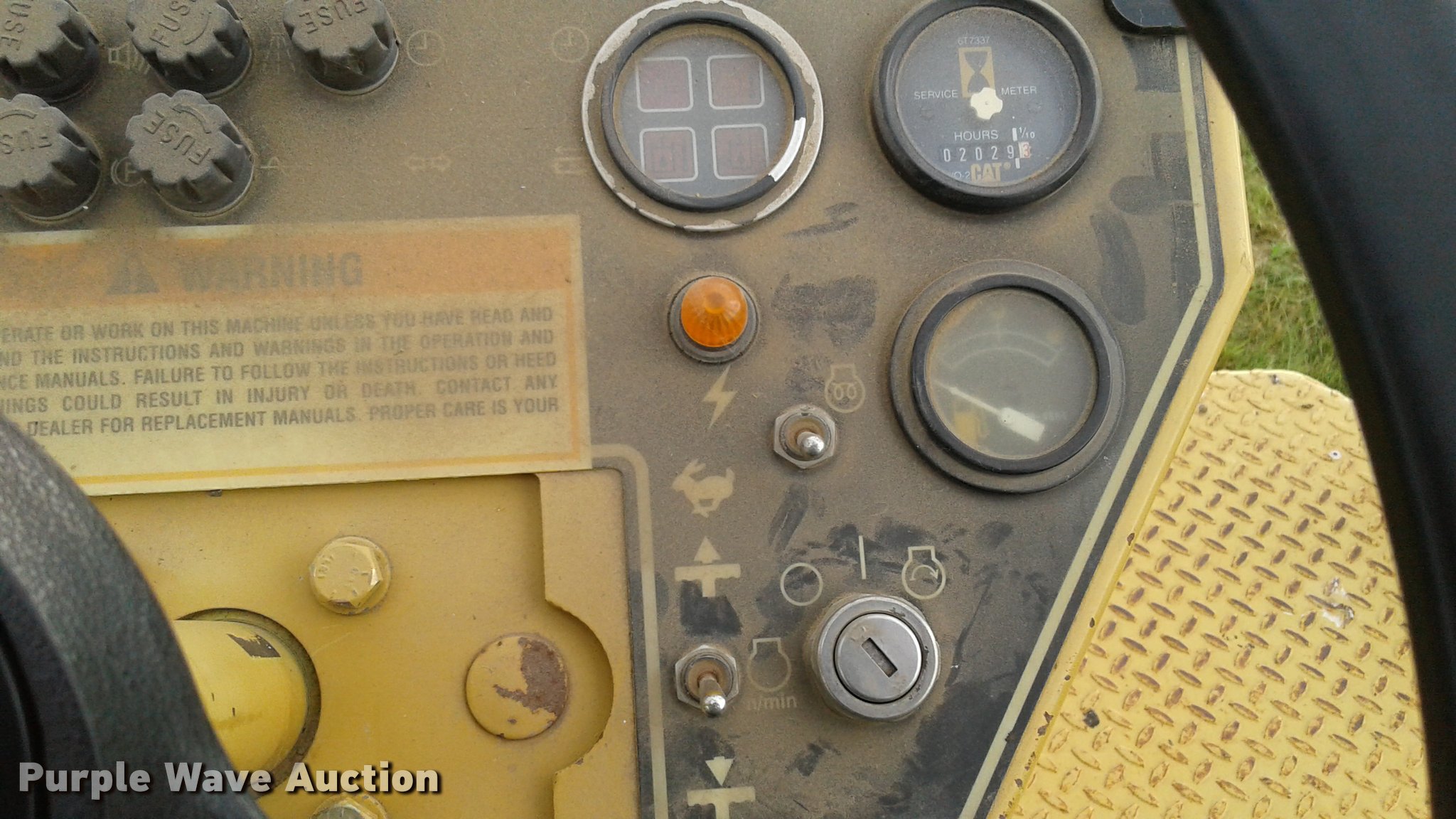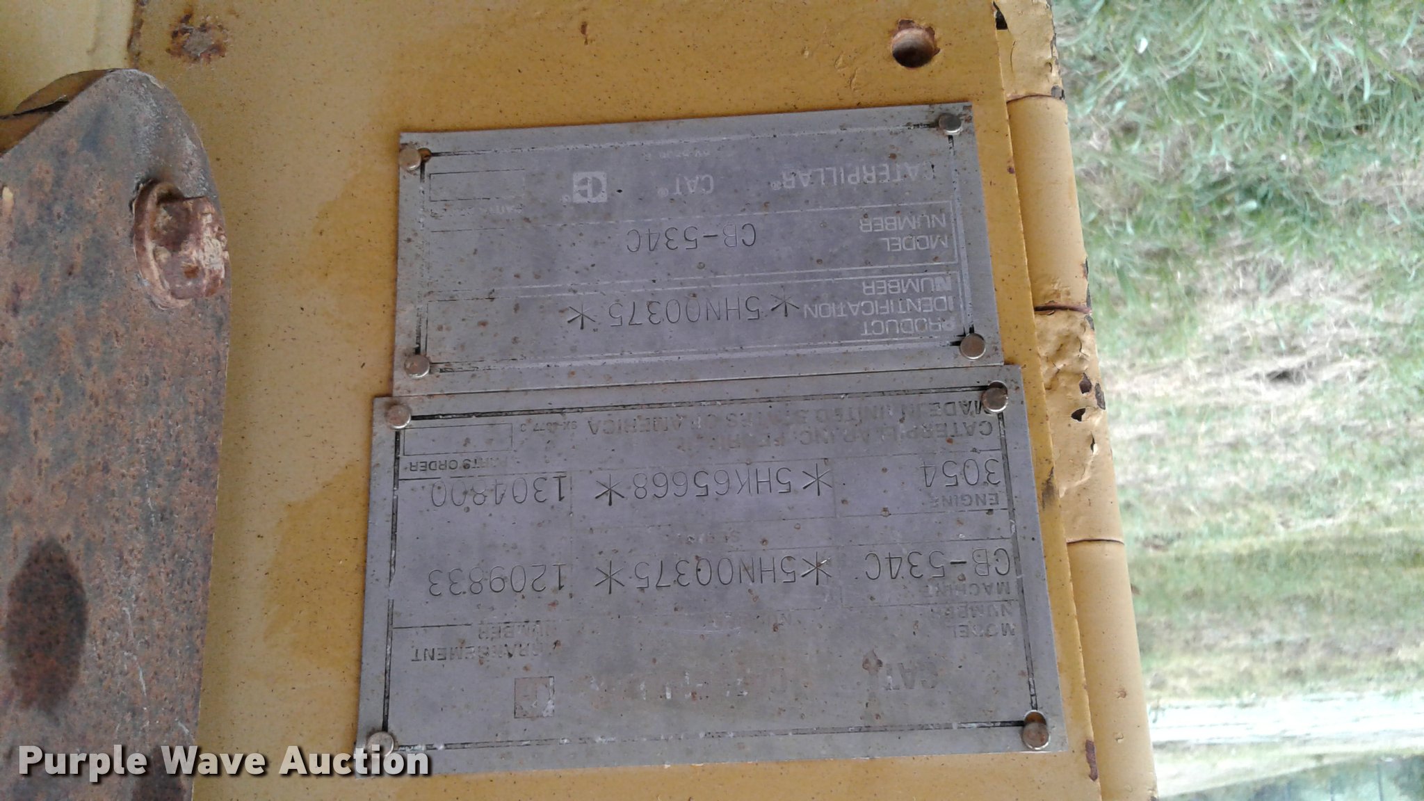 Purple Wave is selling a used Double Drum Roller Compactor in Kansas. This item is a 1998 Caterpillar CB-534C double drum roller with the following: 2,029 hours on meter, Caterpillar 3054 four cylinder diesel engine, Serial 5HK65668, Hydrostatic transmission, Suspension seat, Vandal cover, Double vibratory system, Independent drum controls, 67"W x 50" diameter smooth drums, Front and rear drum scrapers, Front and rear water spray applicator, Serial 5HN00375, Unit# 317