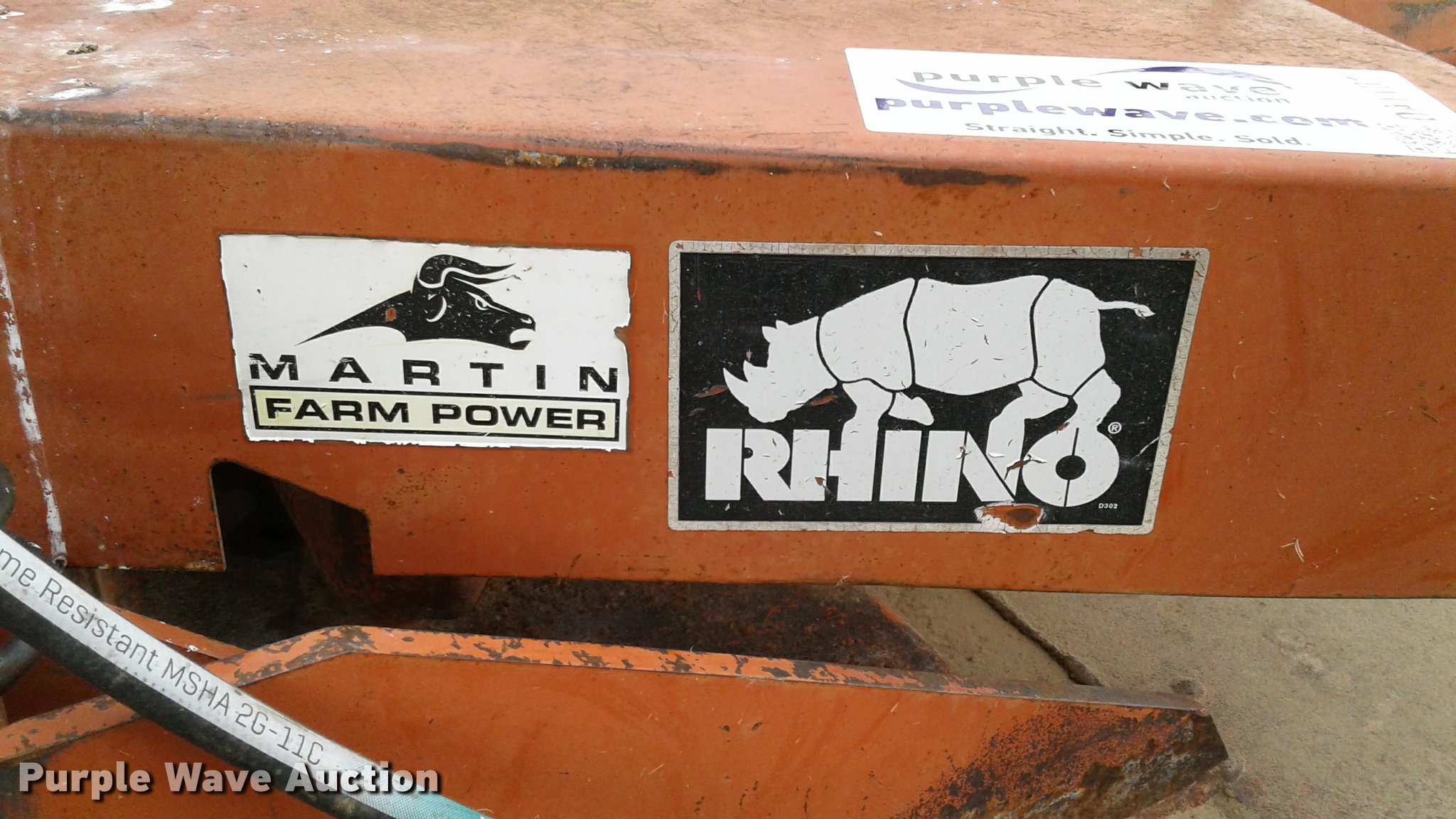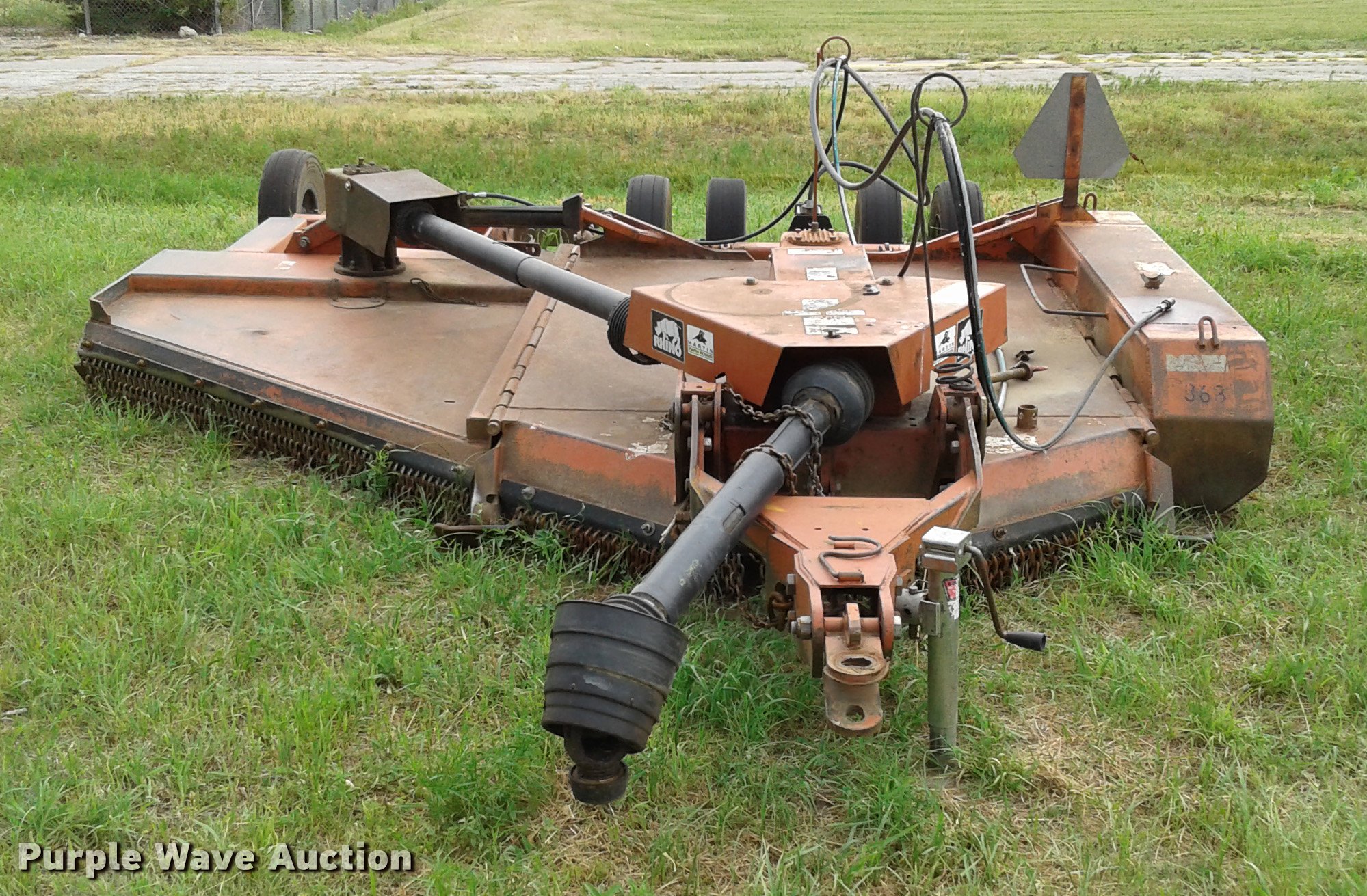 Purple Wave is selling a used Mower, Cutter, Shredder in Kansas. This item is a Rhino SR10M rotary mower with the following: 10'W, Hydraulic lift and fold, 540 PTO, Pin hitch, Single jack stand, 24x7.7 tires, Serial 18638, Unit# 363