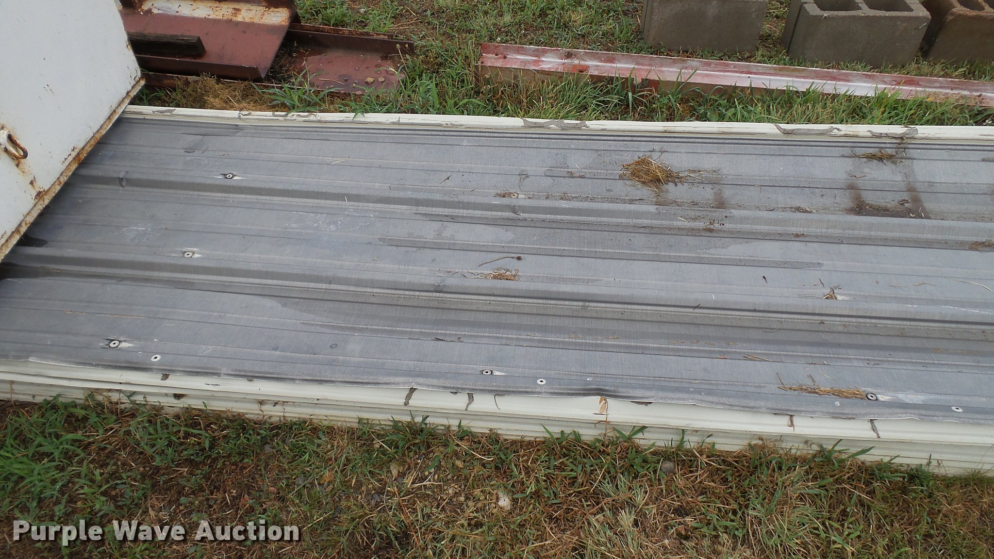 Purple Wave is selling a used Building Materials in Kansas. This item is a Sheet metal siding/roofing with the following: Approx. 15 approx. 30'L, Approx. 10 approx. 12'L, Approx. 5 approx. 11'L