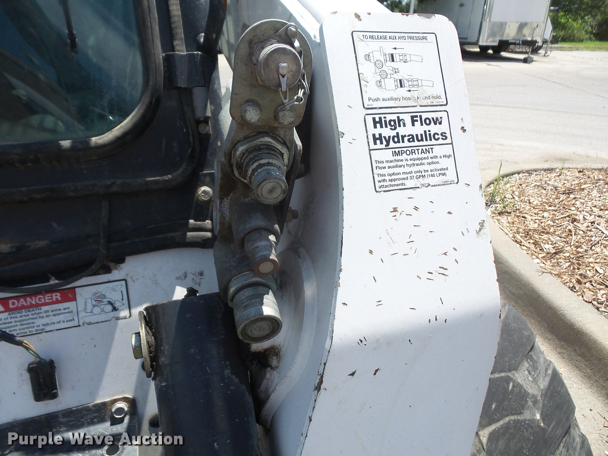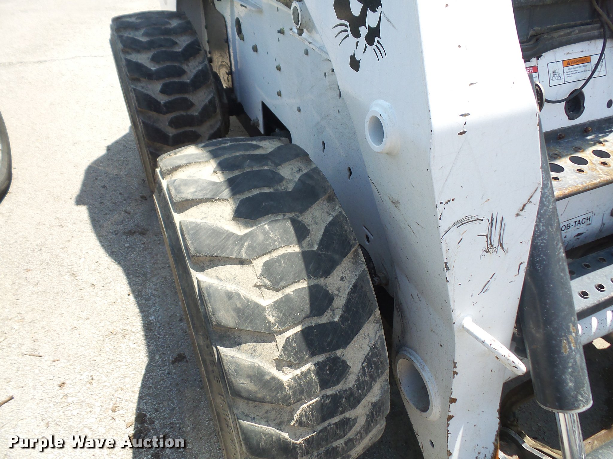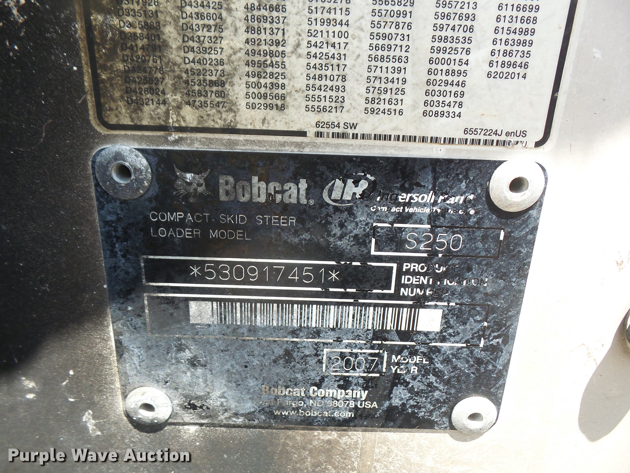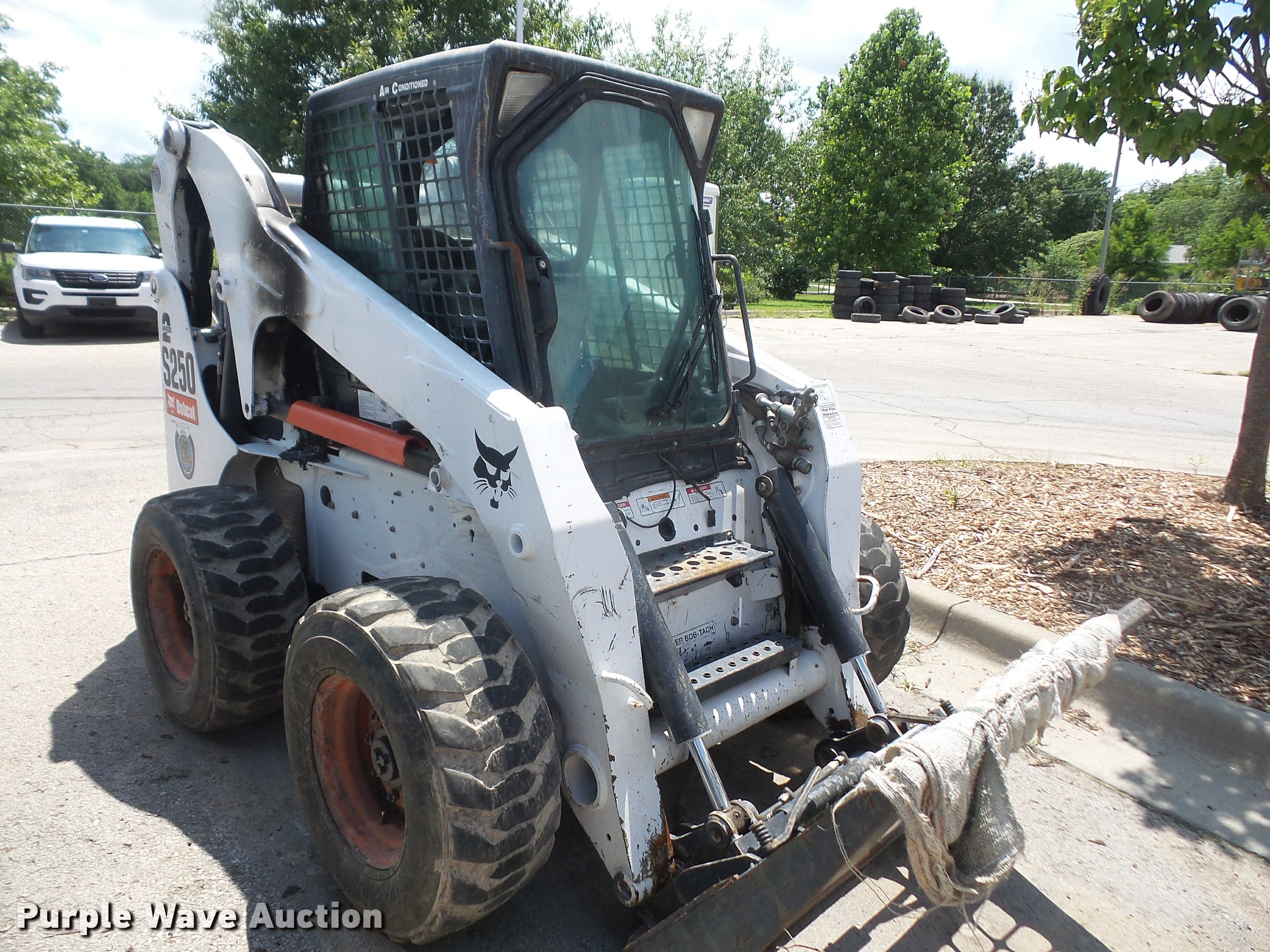 Purple Wave is selling a used Skid Steer Loader in Kansas. This item is a 2007 Bobcat S250 skid steer with the following: Approx. 2,000 hours, Turbo diesel engine, Two speed hydrostatic transmission, Auxiliary hydraulics, Power Bobtach, 12-16.5 tires, Pallet fork mount not included, Turbo locked up, Fire damage, Non-operational unit, parts only, Serial 530917451, Unit# 5141