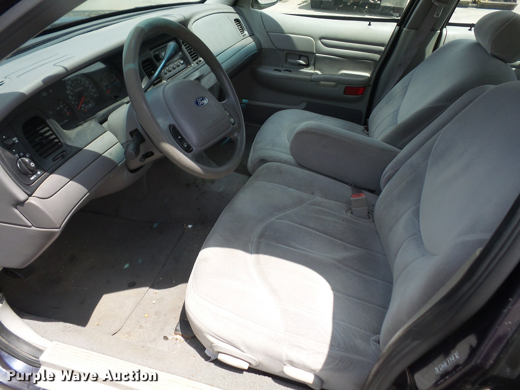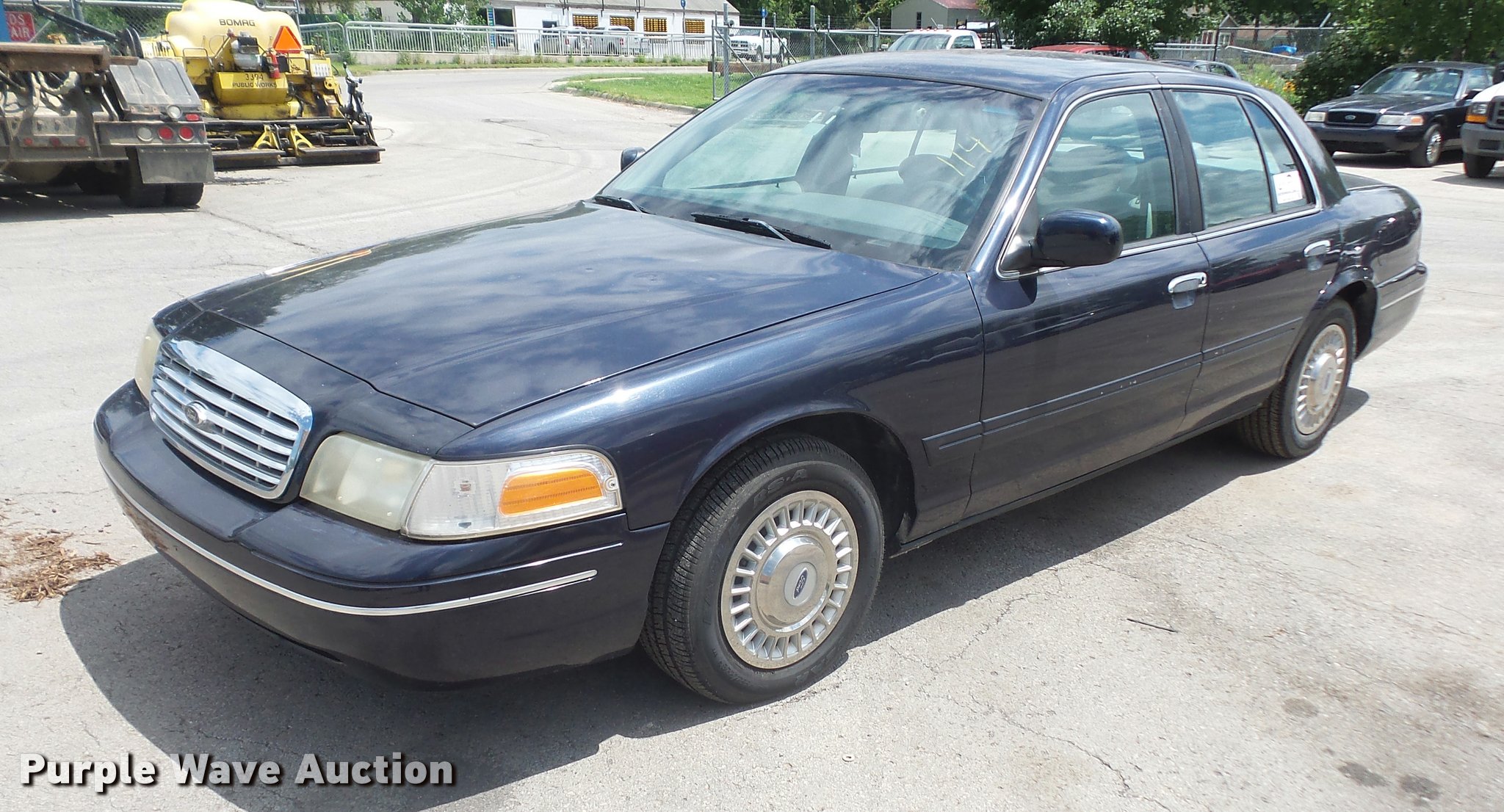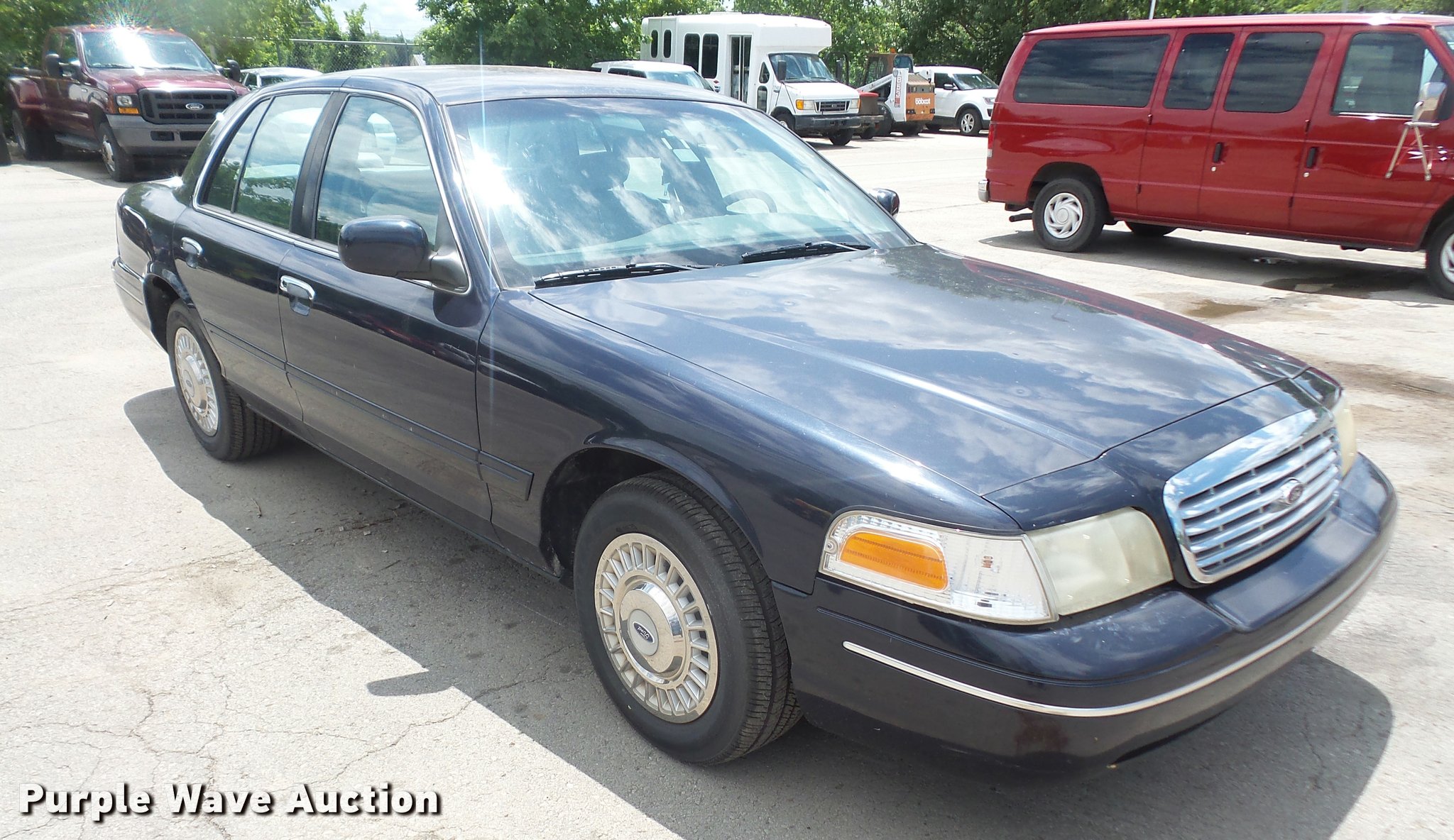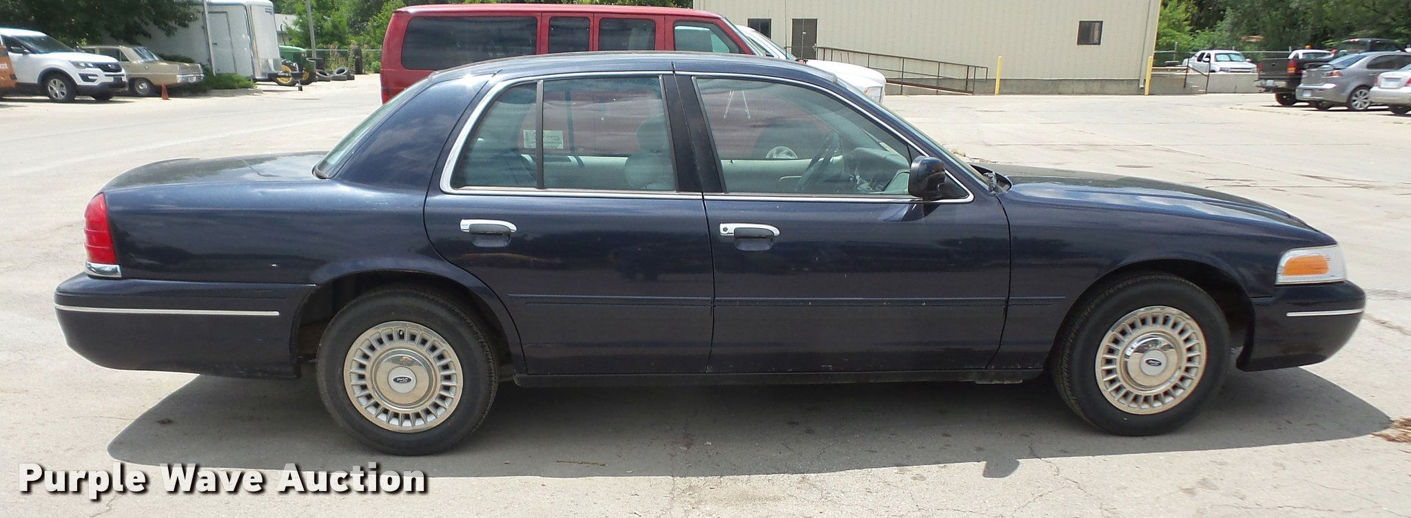 Purple Wave is selling a used Passenger Vehicle in Kansas. This item is a 2002 Ford Crown Victoria Police Interceptor with the following: 102,230 miles on odometer, 4.6L V8 SOHC 16V gas engine, Automatic transmission, AC and heat, Tilt, Cruise, AM/FM, Power windows, locks, mirrors, and seat, Cloth interior, 225/60R16 tires, Hail damage, Intermittently will not start after being driven, Possible rear main seal leak, Unit# 114