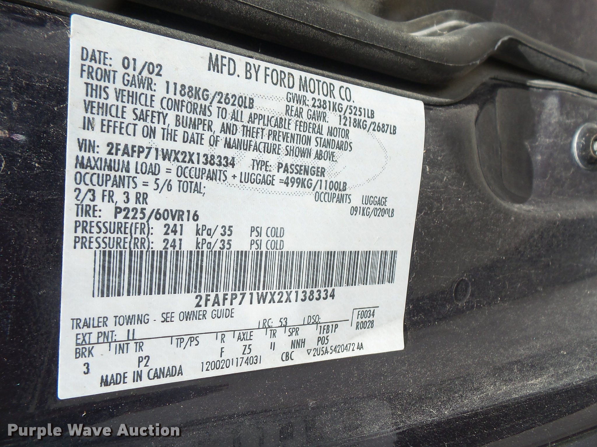 2002 Ford Crown Victoria Police Interceptor. 102,230 miles on odometer, 4.6L V8 SOHC 16V gas engine, Automatic transmission, AC and heat, Tilt, Cruise, AM/FM, Power windows, locks, mirrors, and seat, Cloth interior, 225/60R16 tires, Hail damage, Intermittently will not start after being driven, Possible rear main seal leak, Unit# 114. Kansas title. Seller is a government entity who will be assigning and distributing the title. Please contact the seller for distribution questions. 2FAFP71WX2X138334. City of Lawrence. 1141 Haskell Ave. Lawrence, KS 66044