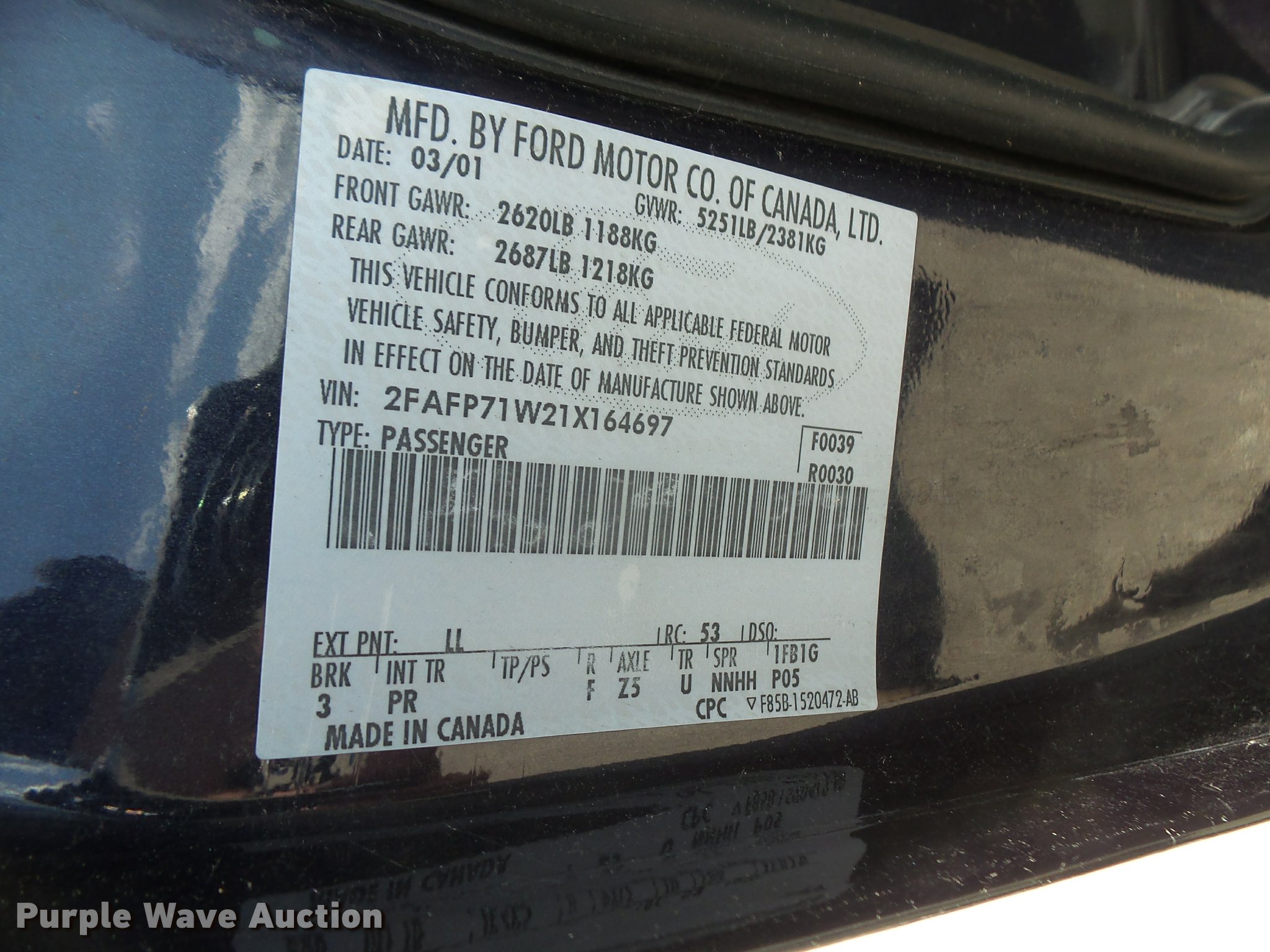 2001 Ford Crown Victoria Police Interceptor. 90,473 miles on odometer, 4.6L V8 SOHC 16V gas engine, Automatic transmission, AC and heat, Tilt, Cruise, AM/FM, Power windows, locks, mirrors, and seat, Cloth interior, 225/60R16 tires, EVAP leak, Unit# 178. Kansas title. Seller is a government entity who will be assigning and distributing the title. Please contact the seller for distribution questions. 2FAFP71W21X164697. City of Lawrence. 1141 Haskell Ave. Lawrence, KS 66044