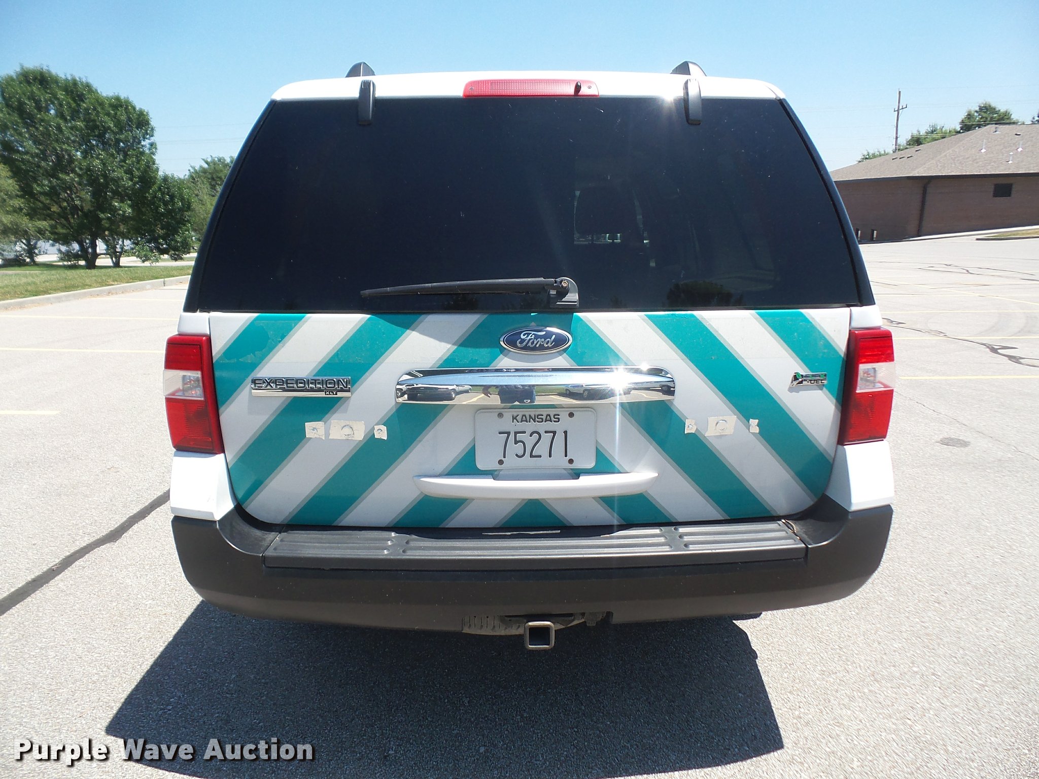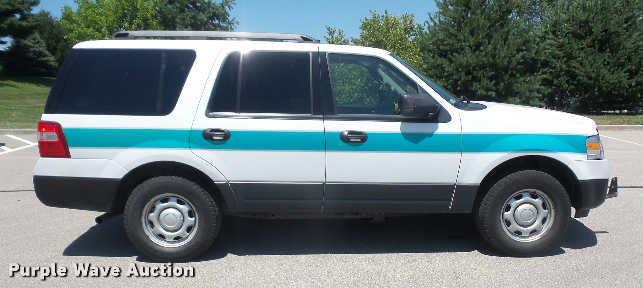2010 Ford Expedition SUV. 175,242 miles on odometer, 5.4L V8 SOHC 16V gas engine, Automatic transmission, AC and heat, Tilt, Cruise, AM/FM/CD, Power windows, locks, mirrors, and seat, Cloth interior, Unattached grill guard included, Cabinet, 265/70R17 tires, AM/FM radio inoperable. Kansas title. 1FMJU1G51AEB67449. Leavenworth County EMS. 500 Eisenhower Rd. Leavenworth, KS 66048