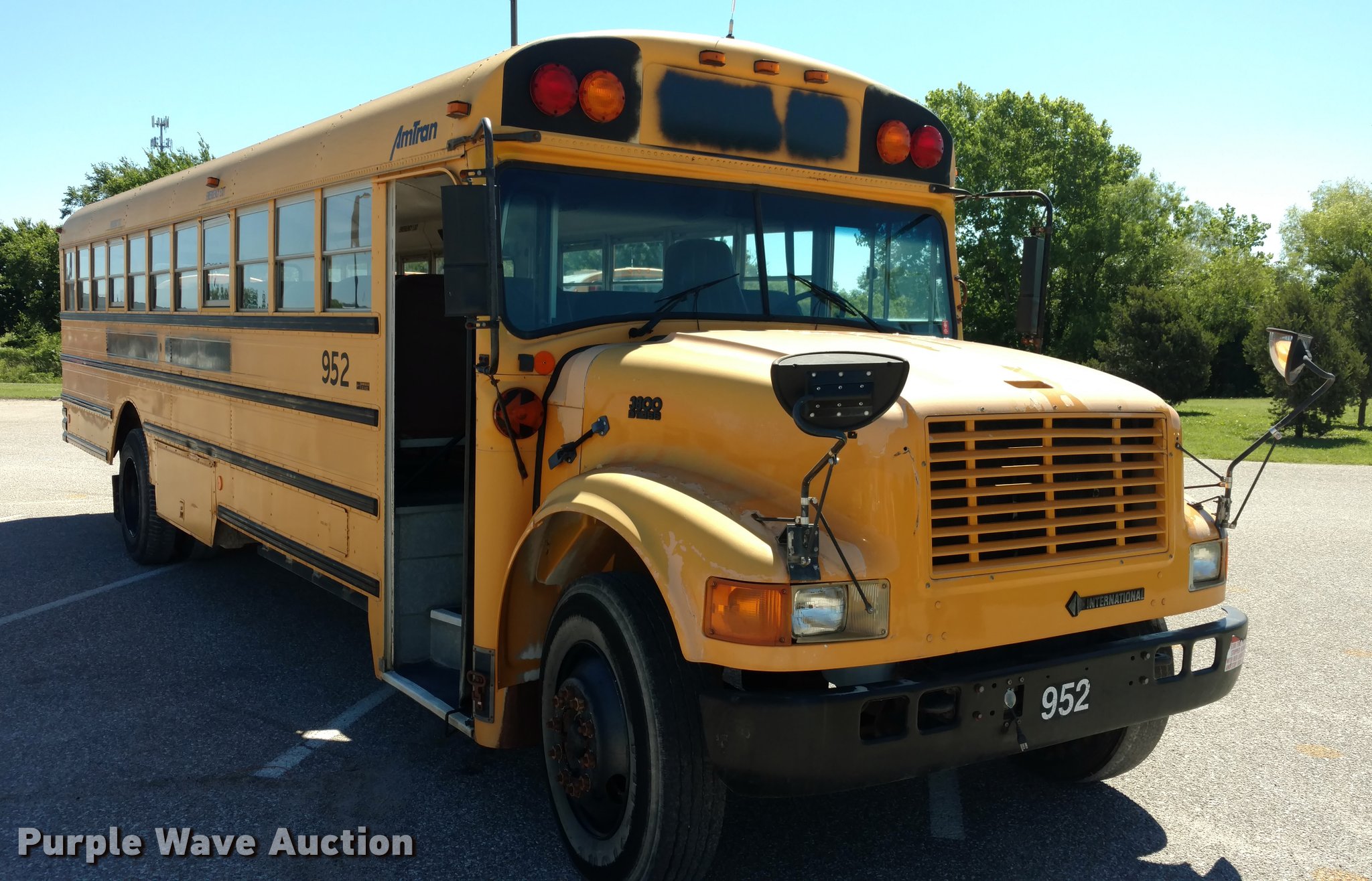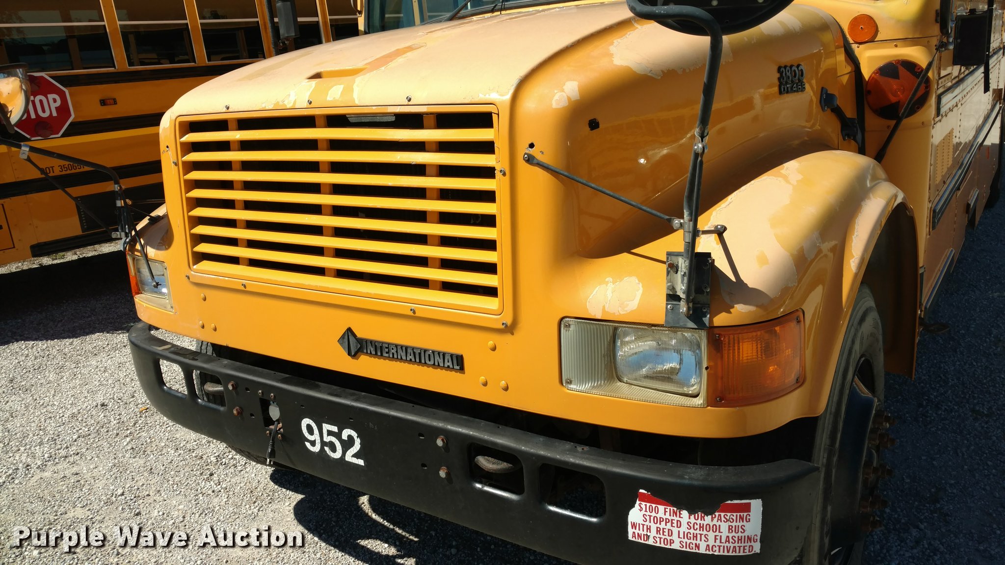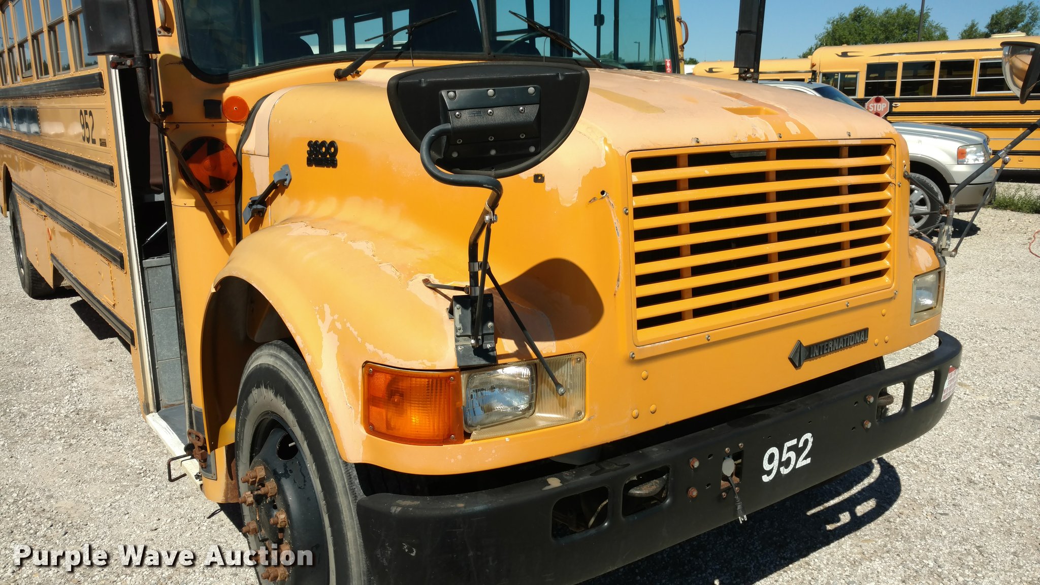 Purple Wave is selling a used Bus in Kansas. This item is a 1996 International 3800 school bus with the following: 302,799 miles on odometer, 9,114 hours on meter, International DT466 7.6L L6 diesel engine, Automatic transmission, Heat, Vinyl interior, Hydraulic brakes, 10R22.5 tires, Vehicle needs battery, Unit# 952