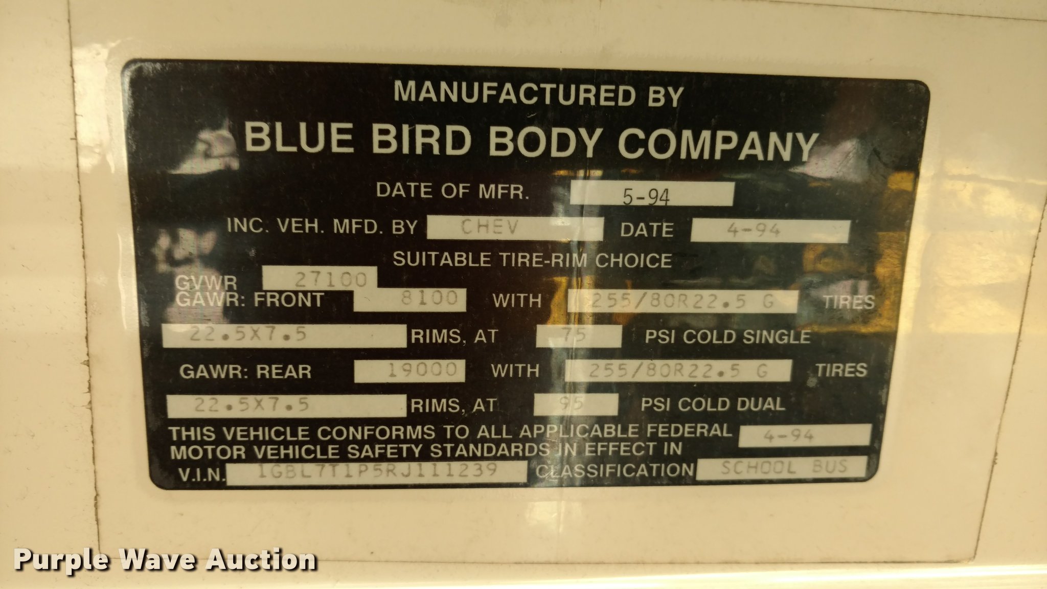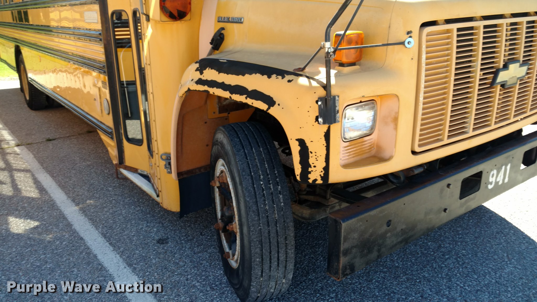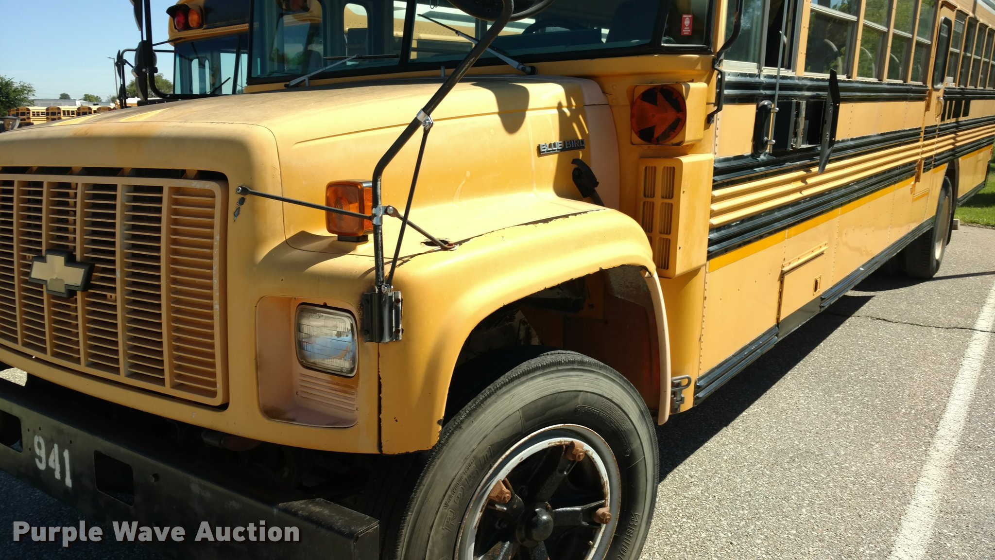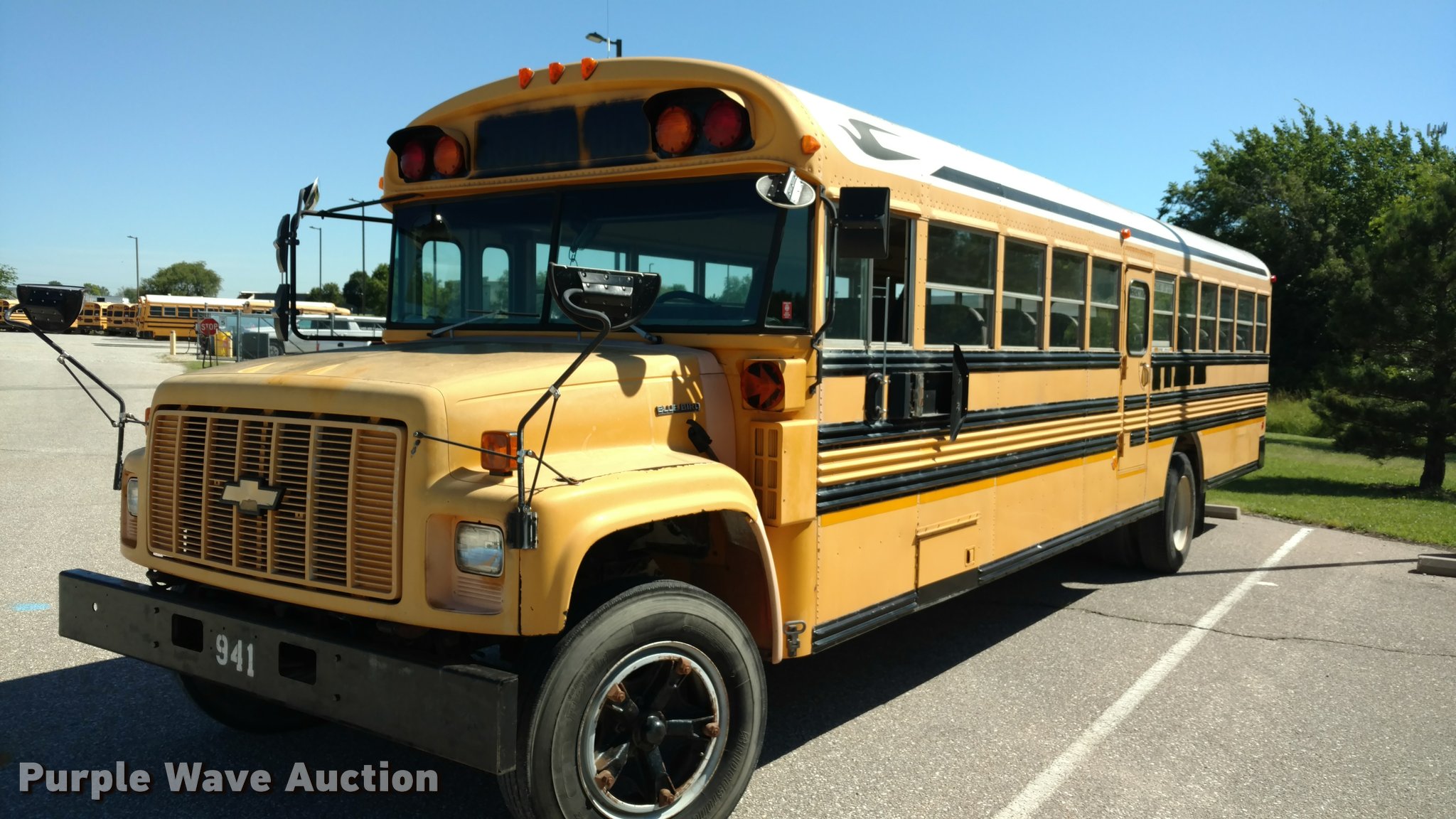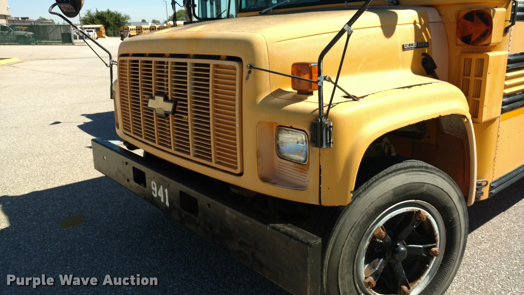 Purple Wave is selling a used Bus in Kansas. This item is a 1995 Chevrolet B7 school bus with the following: 174,047 miles on odometer, 6.0L V8 diesel engine, Automatic transmission, Heat, Vinyl interior, 265/75R22.5 tires, Vehicle needs battery, Unit# 941