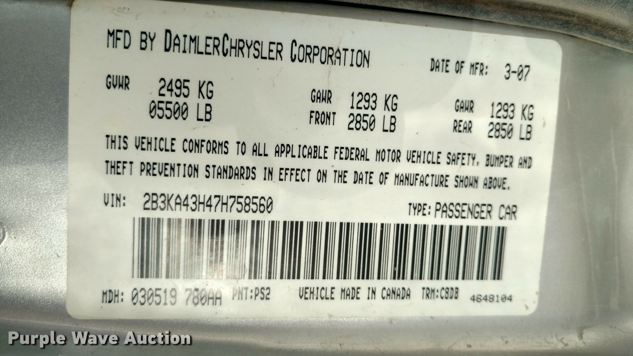 Purple Wave is selling a used Passenger Vehicle in Kansas. This item is a 2007 Dodge Charger Police with the following: 176,801 miles on odometer, 5.7L V8 OHV 16V gas engine, Automatic transmission, AC and heat, Tilt, Cruise, AM/FM/CD, Power windows and locks, Cloth interior, 225/50R18 tires