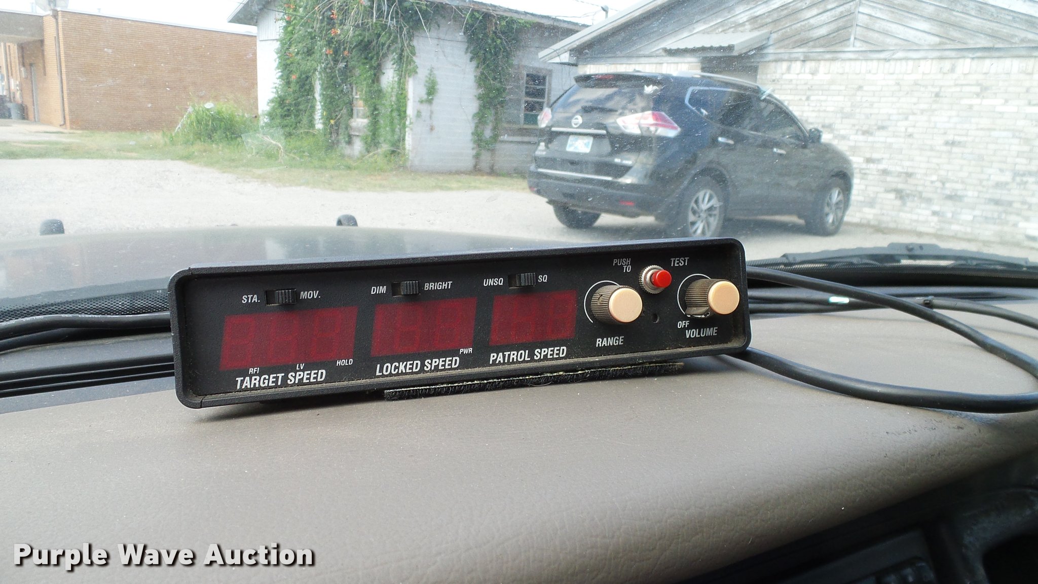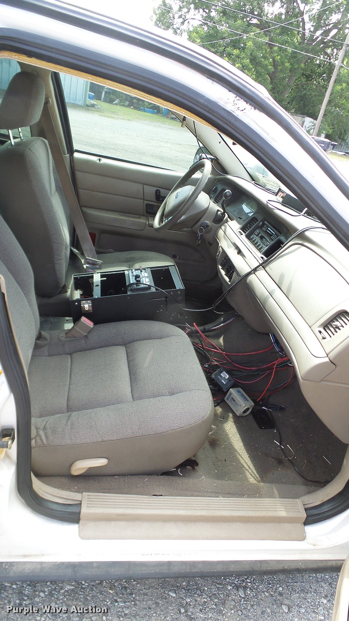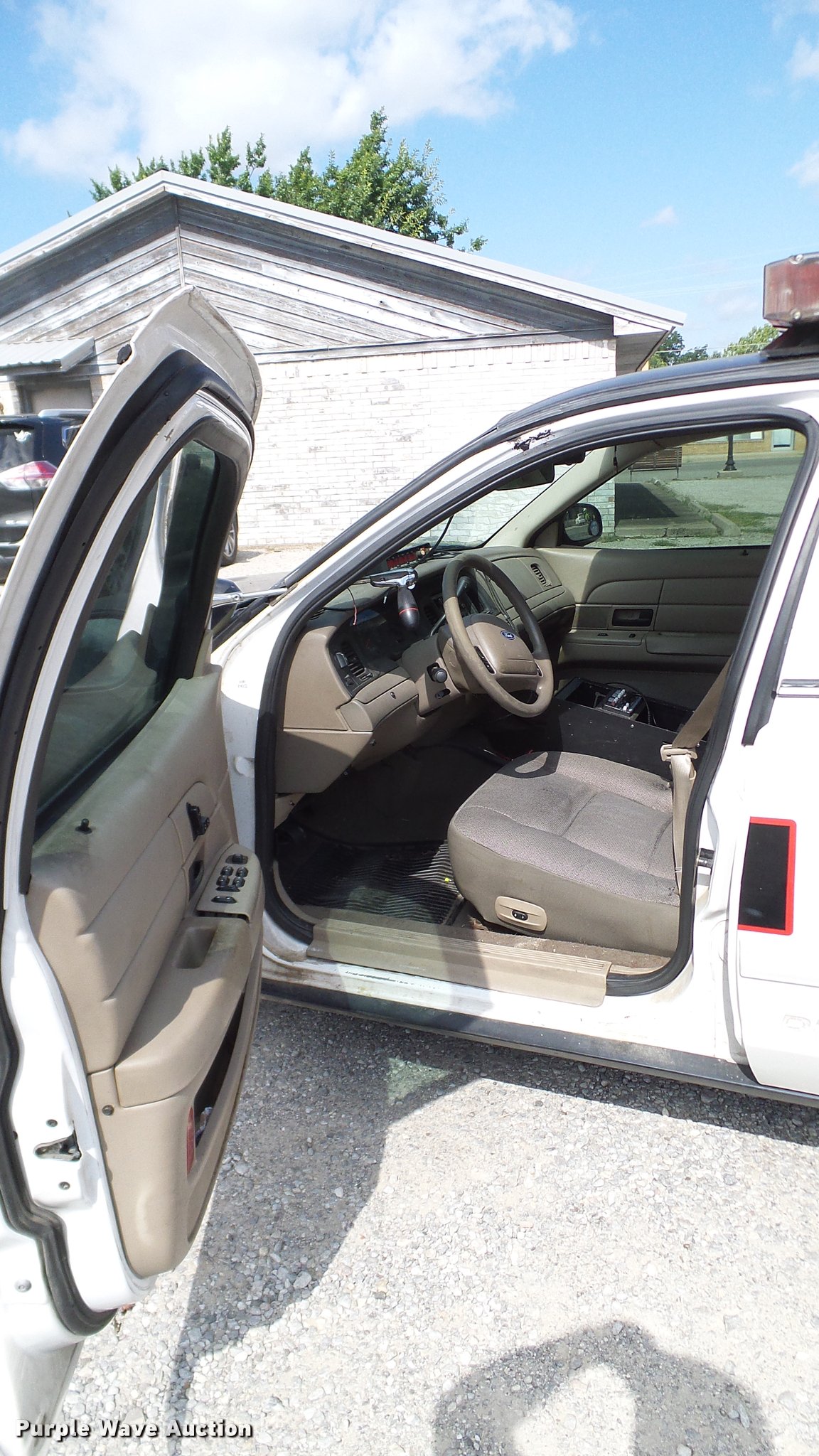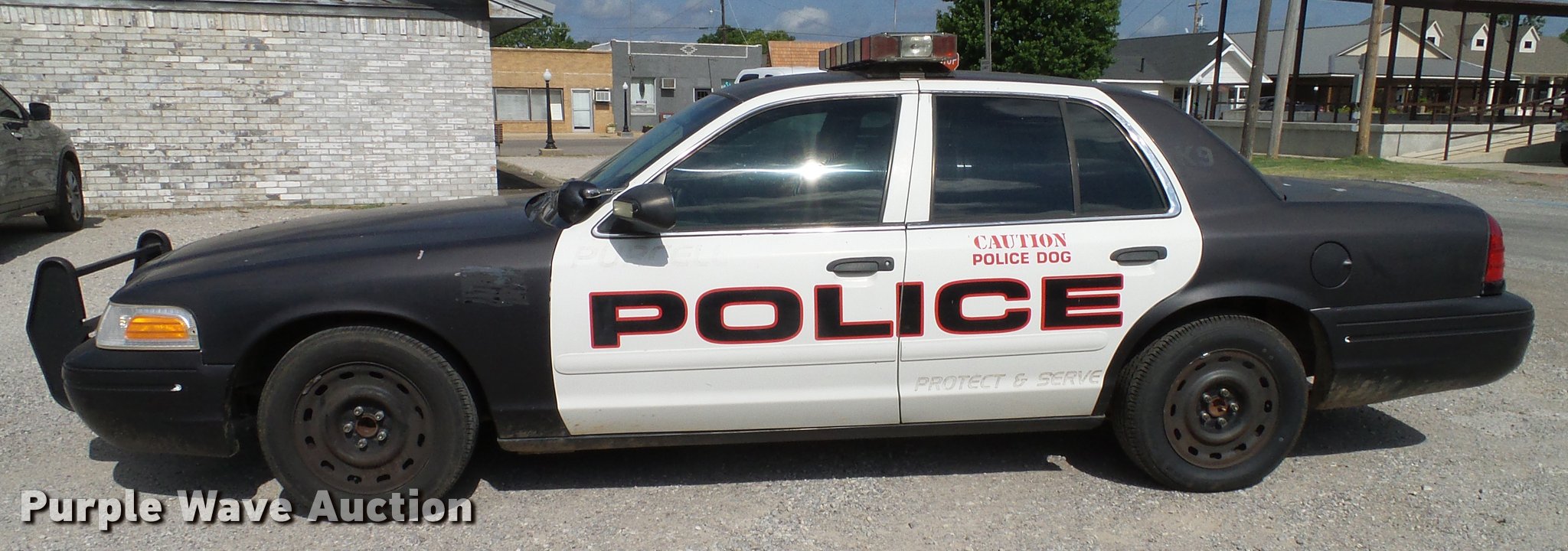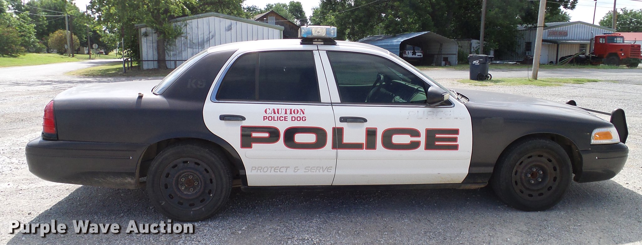 Purple Wave is selling a used Passenger Vehicle in Oklahoma. This item is a 2004 Ford Crown Victoria Police Interceptor with the following: 118,792 miles on odometer, 4.6L V8 SOHC 16V gas engine, Automatic transmission, AC and heat, Tilt, Cruise, AM/FM/cassette, Power windows, locks, mirrors, and seats, Cloth interior, Light and siren control box, Radar, Mobile Vision camera system, Spotlight, Light bar, Grill guard, 225/60R16 tires, Radar not included, Law enforcement equipment will be removed if vehicle is not sold to a government entity, Previously K9 vehicle, Panels missing
