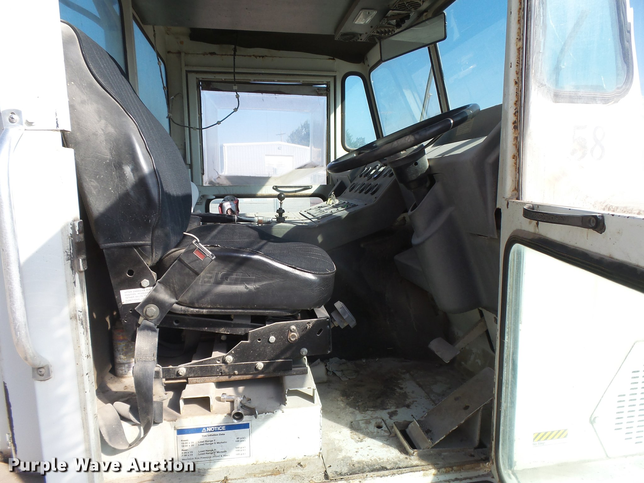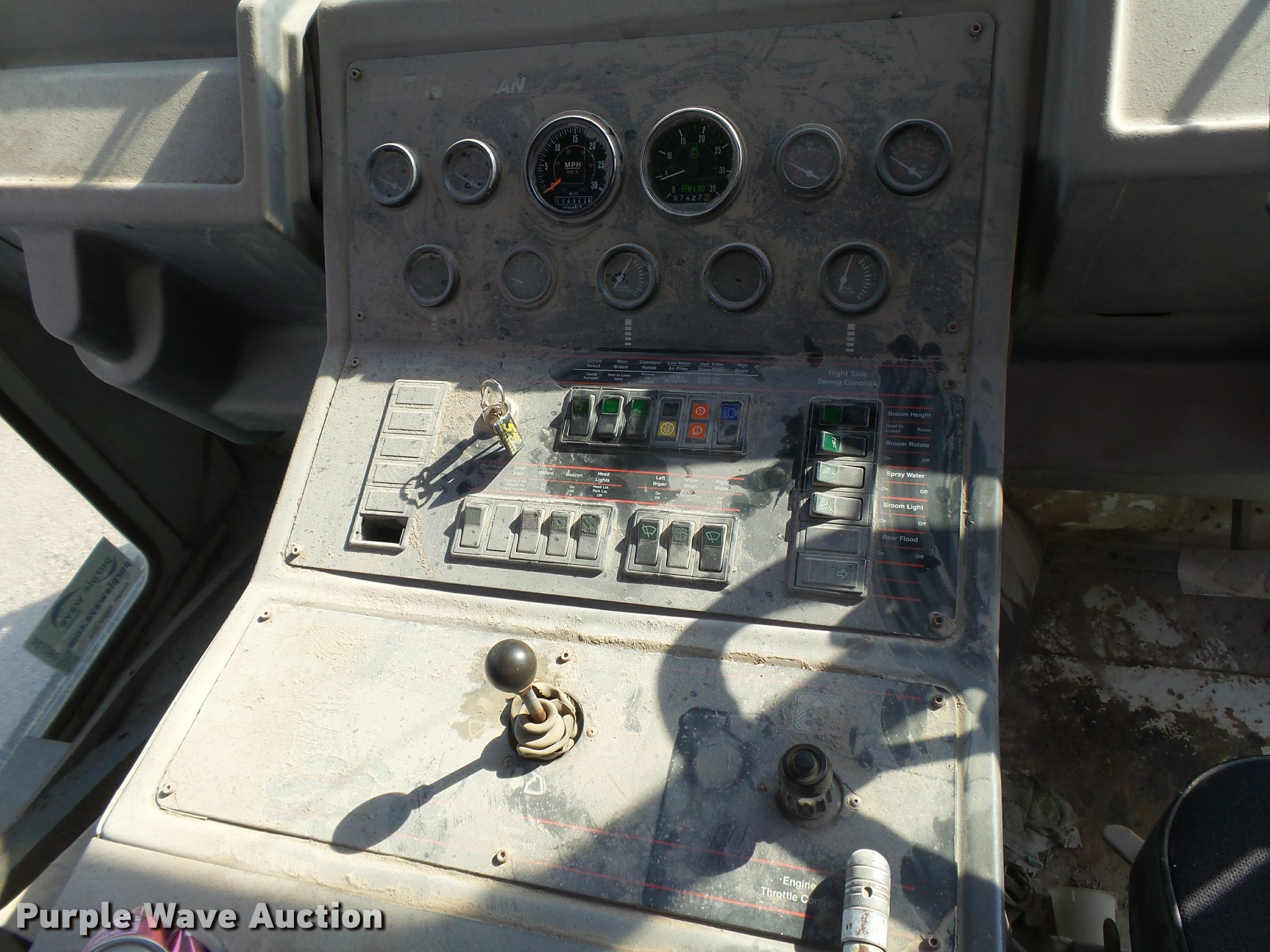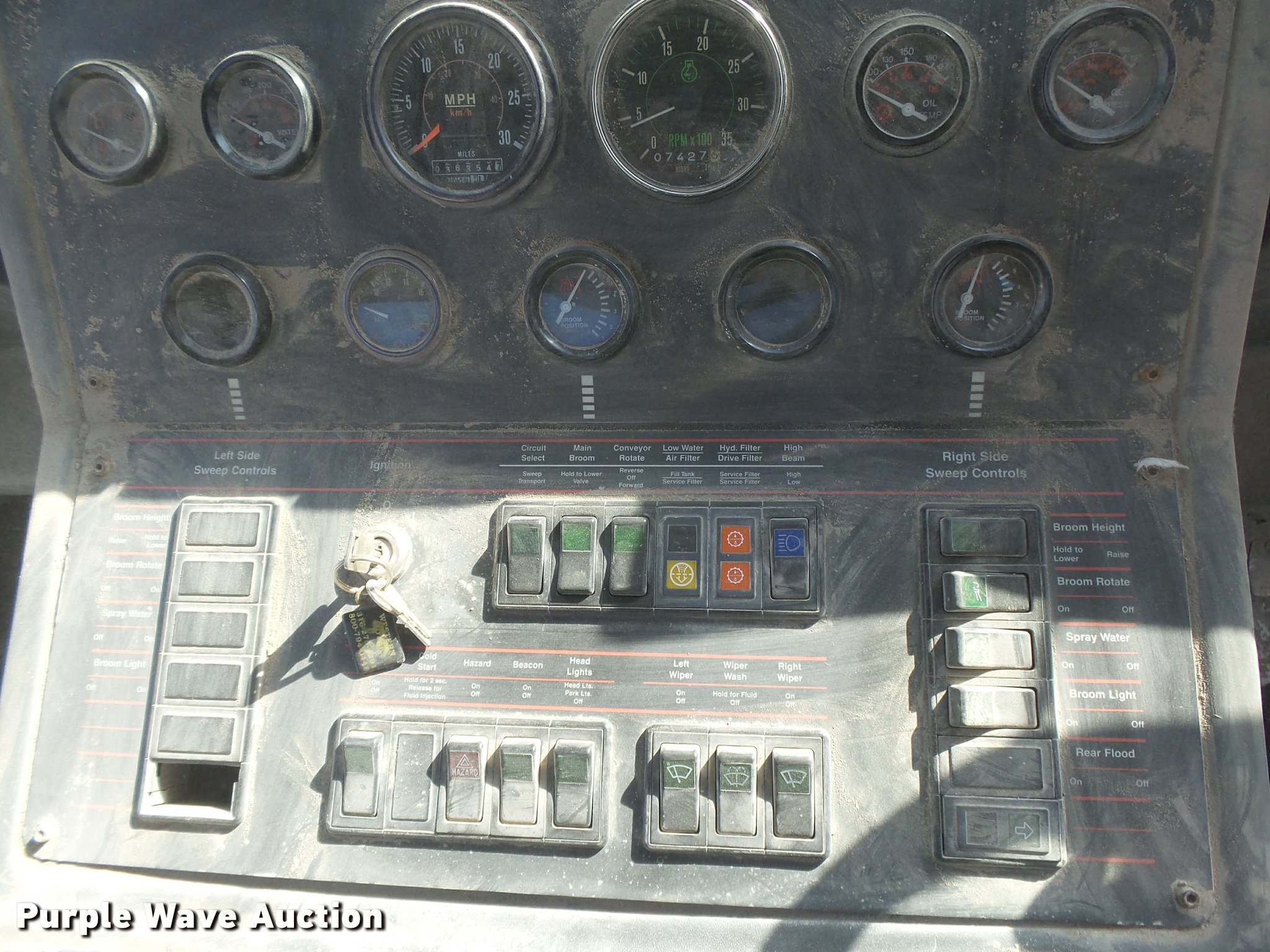 Purple Wave is selling a used Sweeper in Kansas. This item is a 1993 Elgin Pelican Series P street sweeper with the following: 36,355 miles on odometer, 7,428 hours on meter, John Deere 4039TF001 four cylinder turbo diesel engine, Serial T04039T432226, Hydrostatic transmission, Suspension seat, Work lights, Wipers, Beacon light, 64" broom, Broom height and rotate controls, 10.00R20 front tires, 8.25R15 rear tires, Cracked windshield, Serial P15545